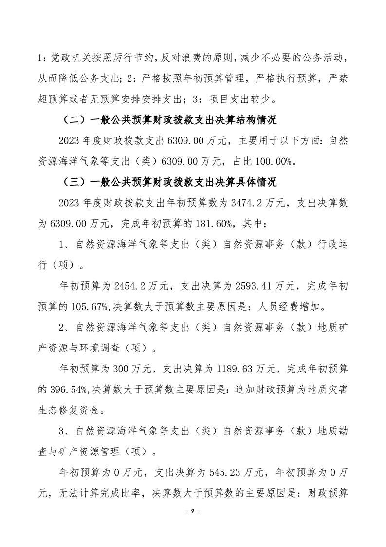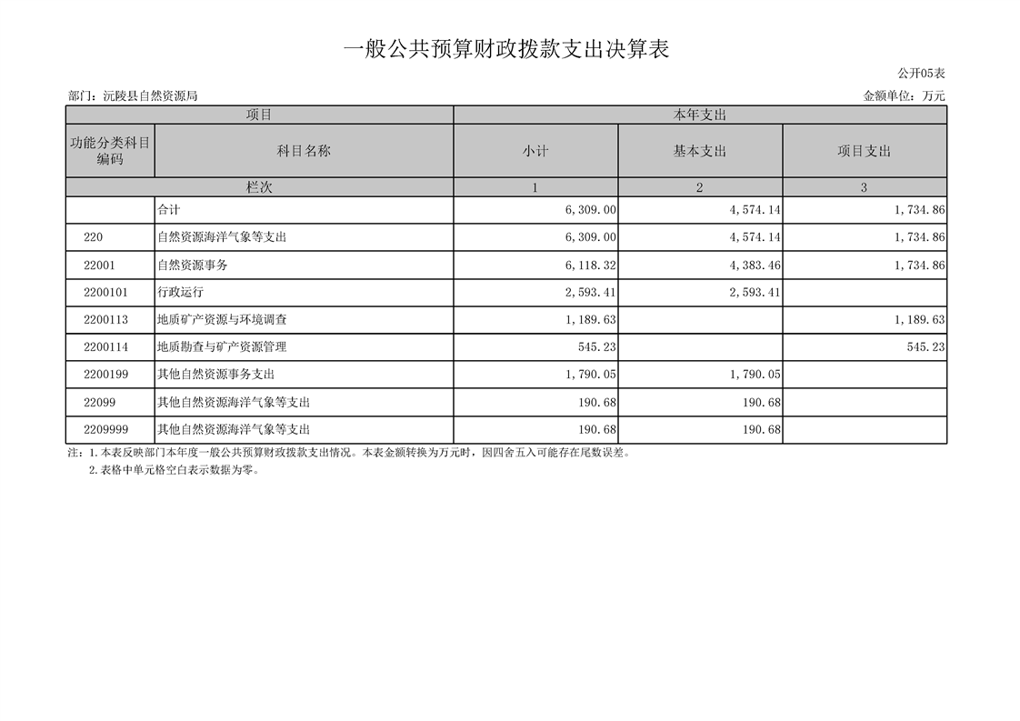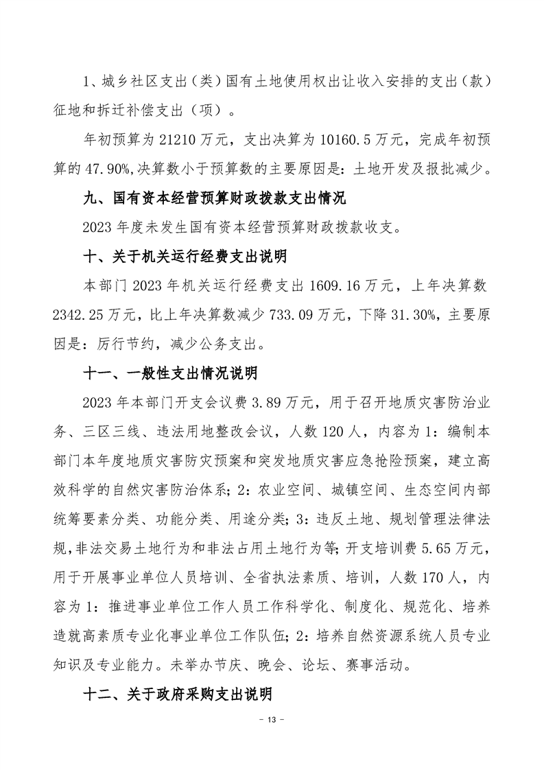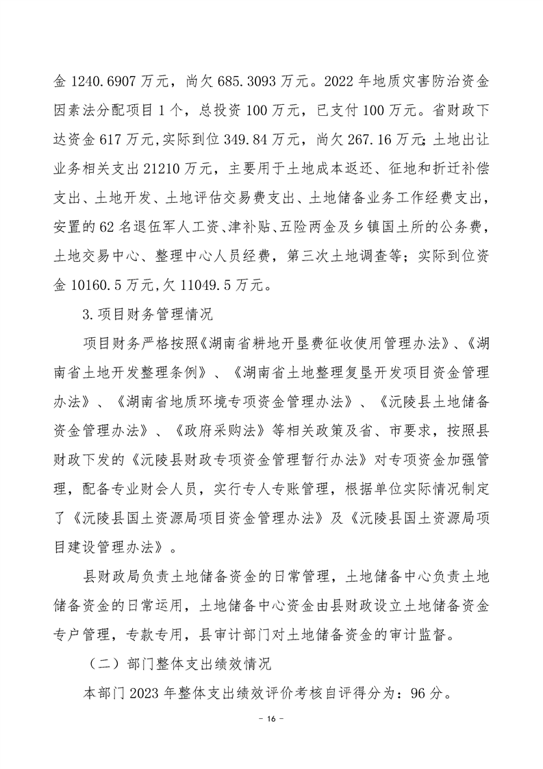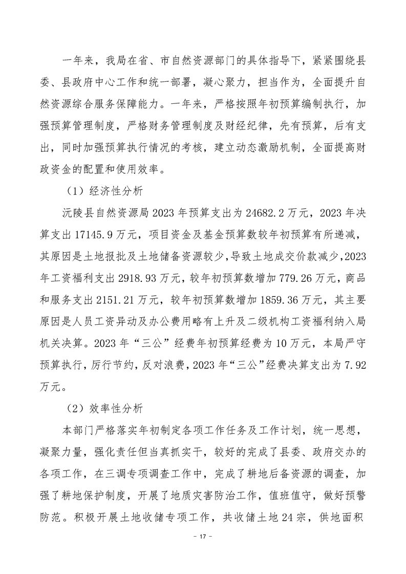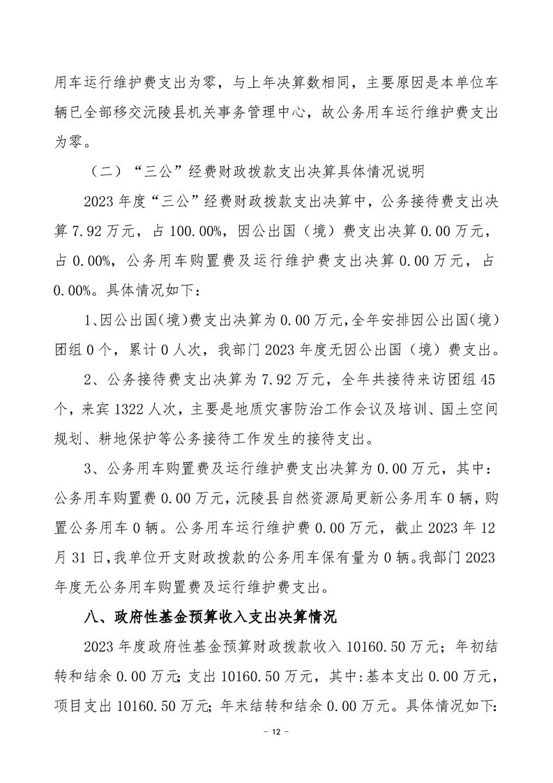 2023年度沅陵县自然资源局部门决算