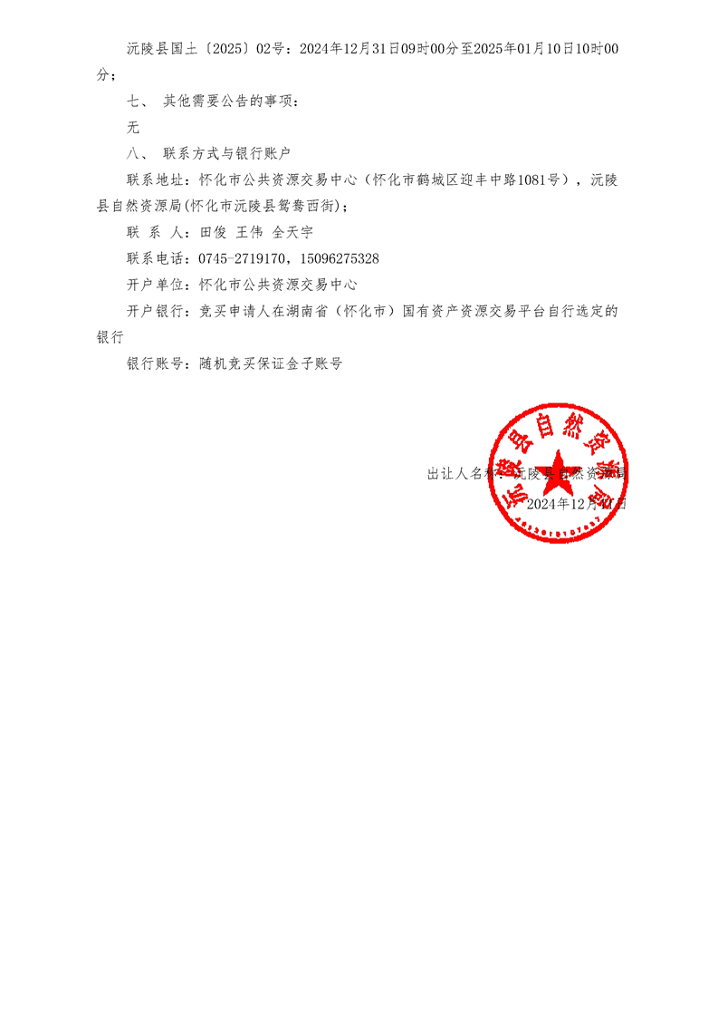 沅陵县自然资源局国有土地使用权挂牌出让公告
