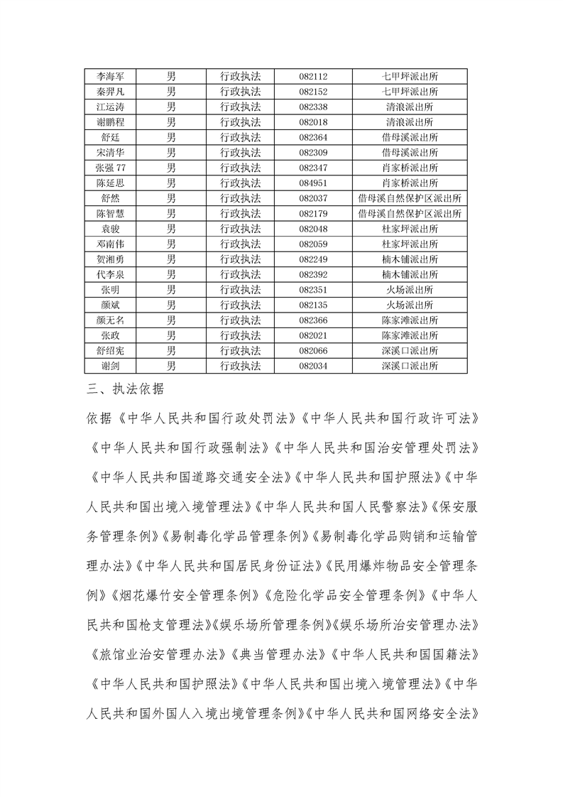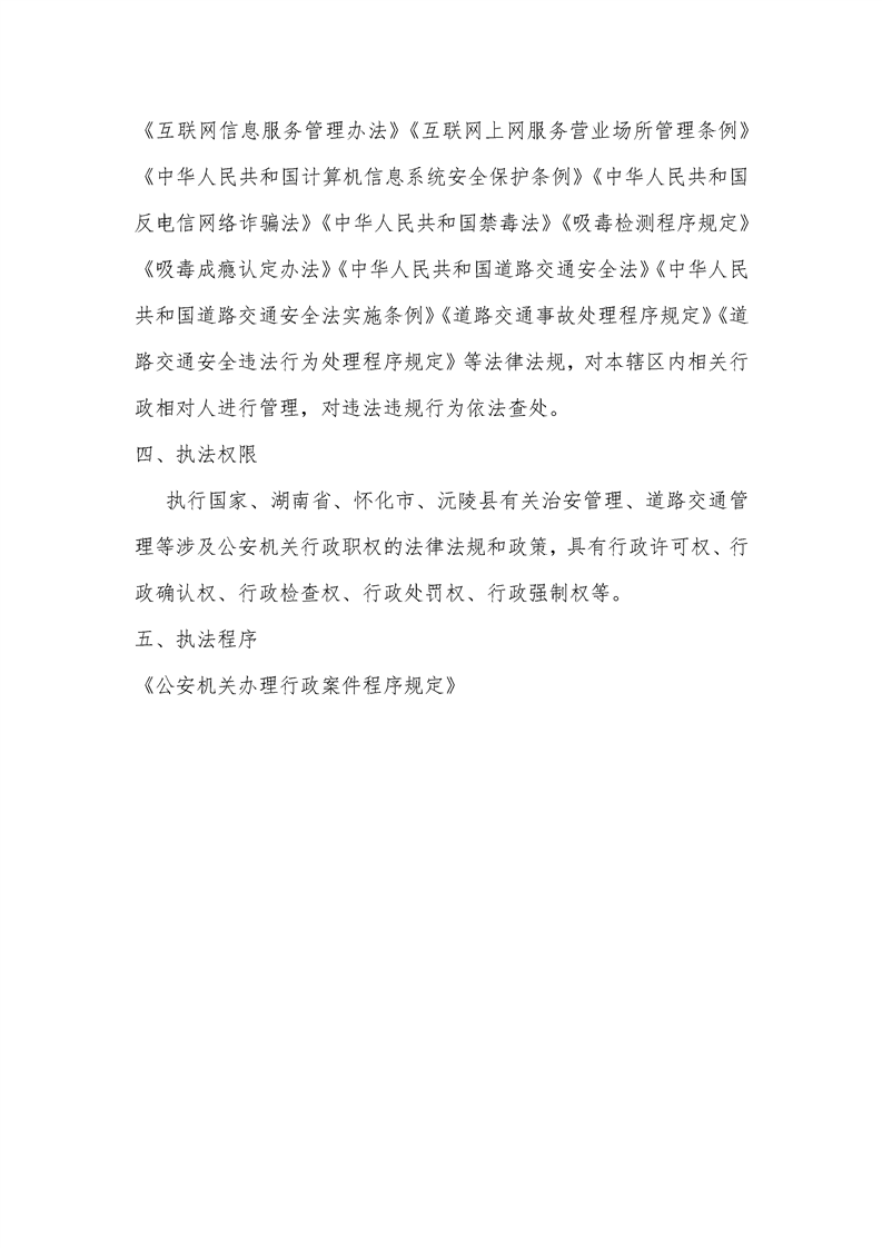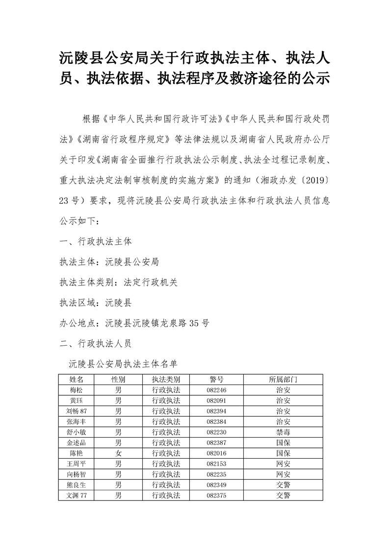 沅陵县公安局关于行政执法主体、执法人员、执法依据、执法程序及救济途径的公示