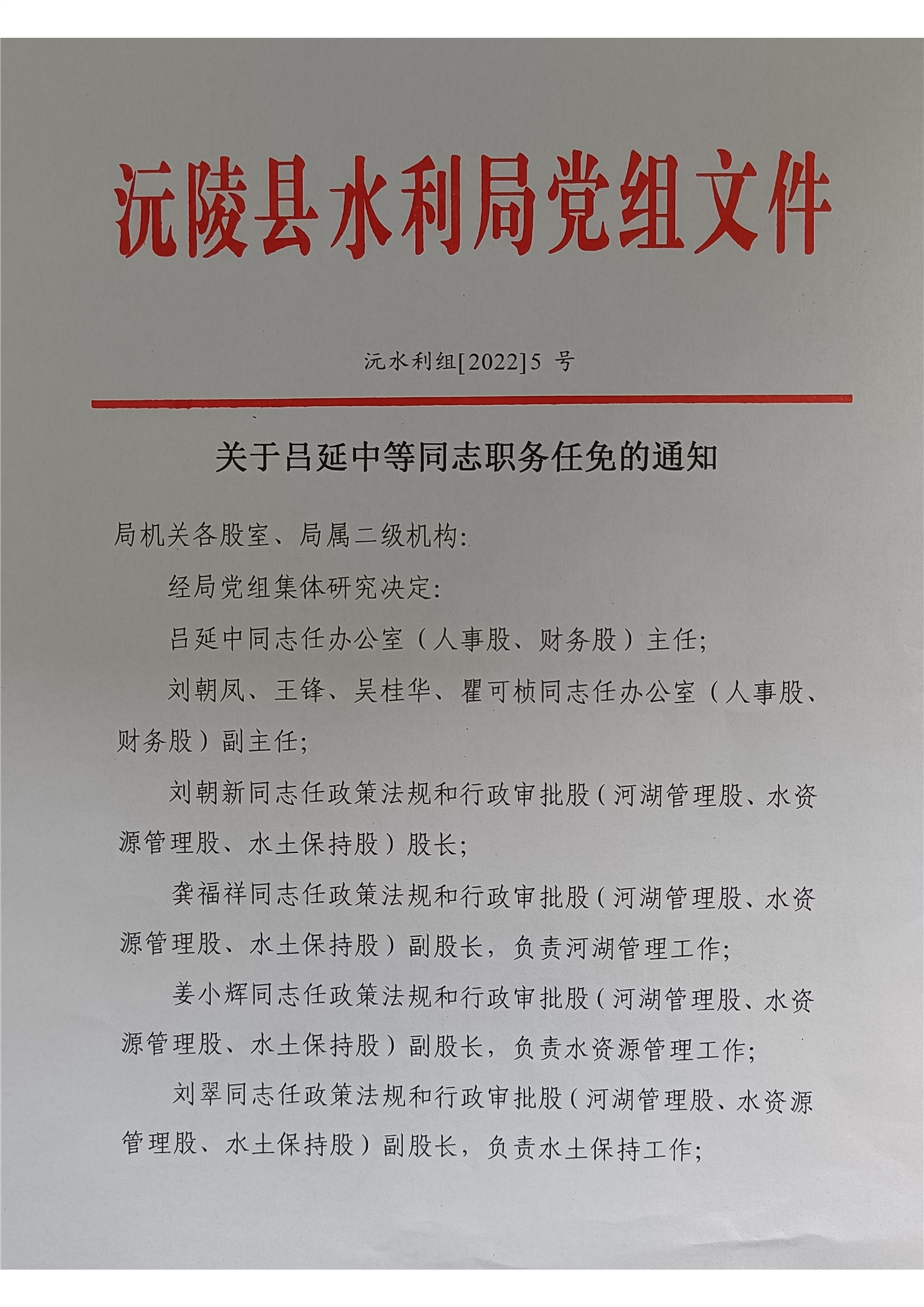 关于吕延中等同志职务任免的通知