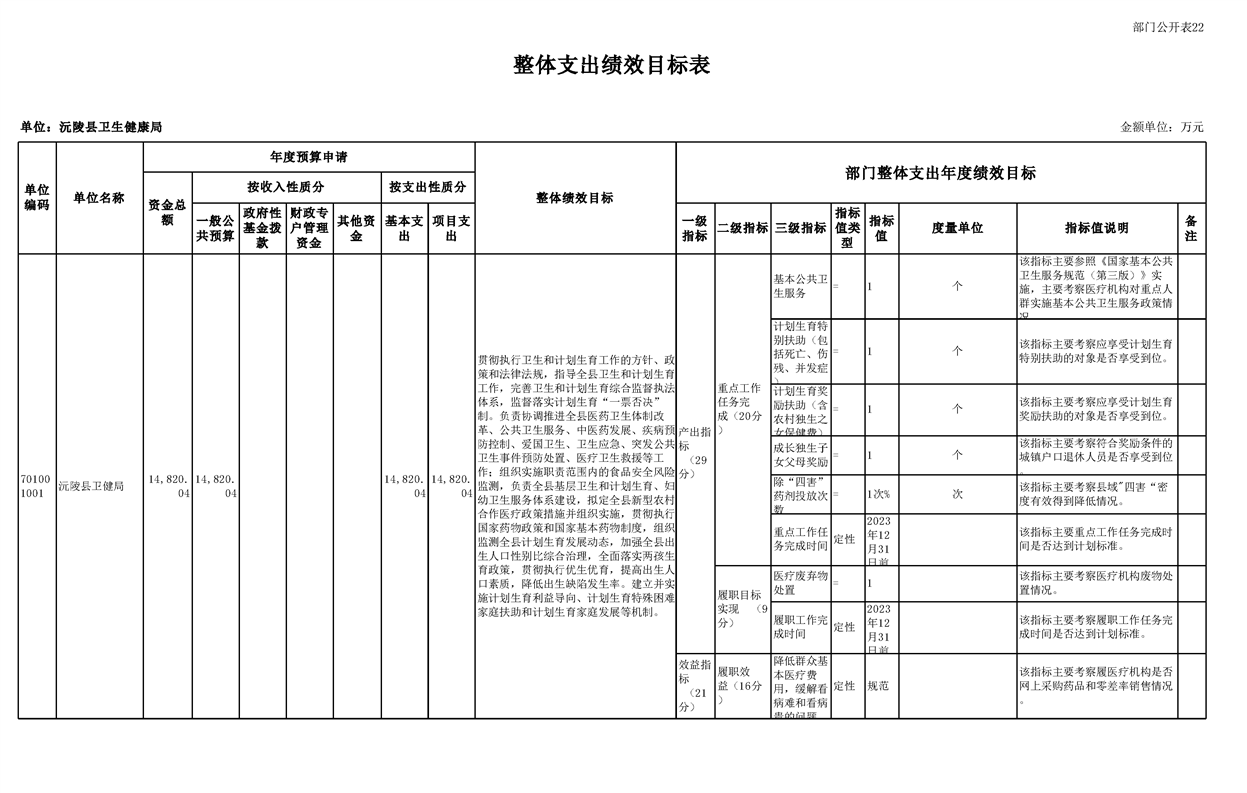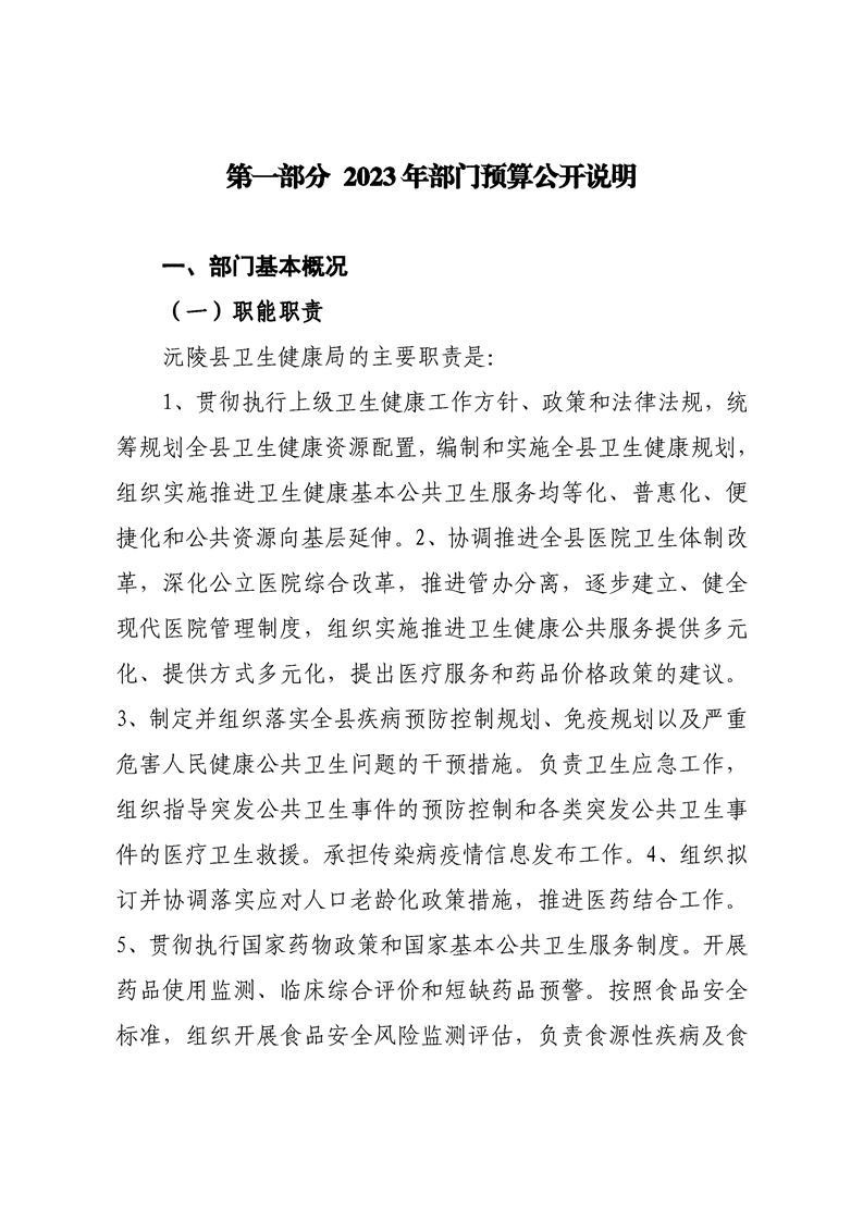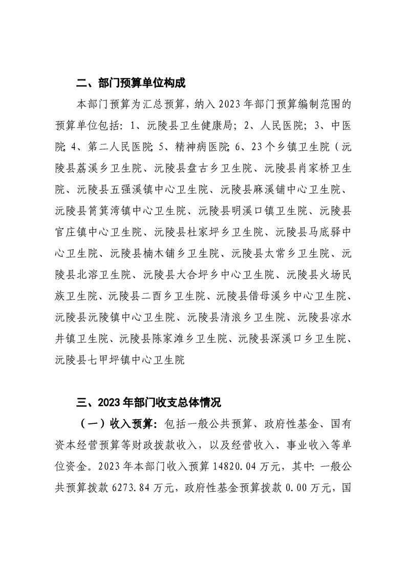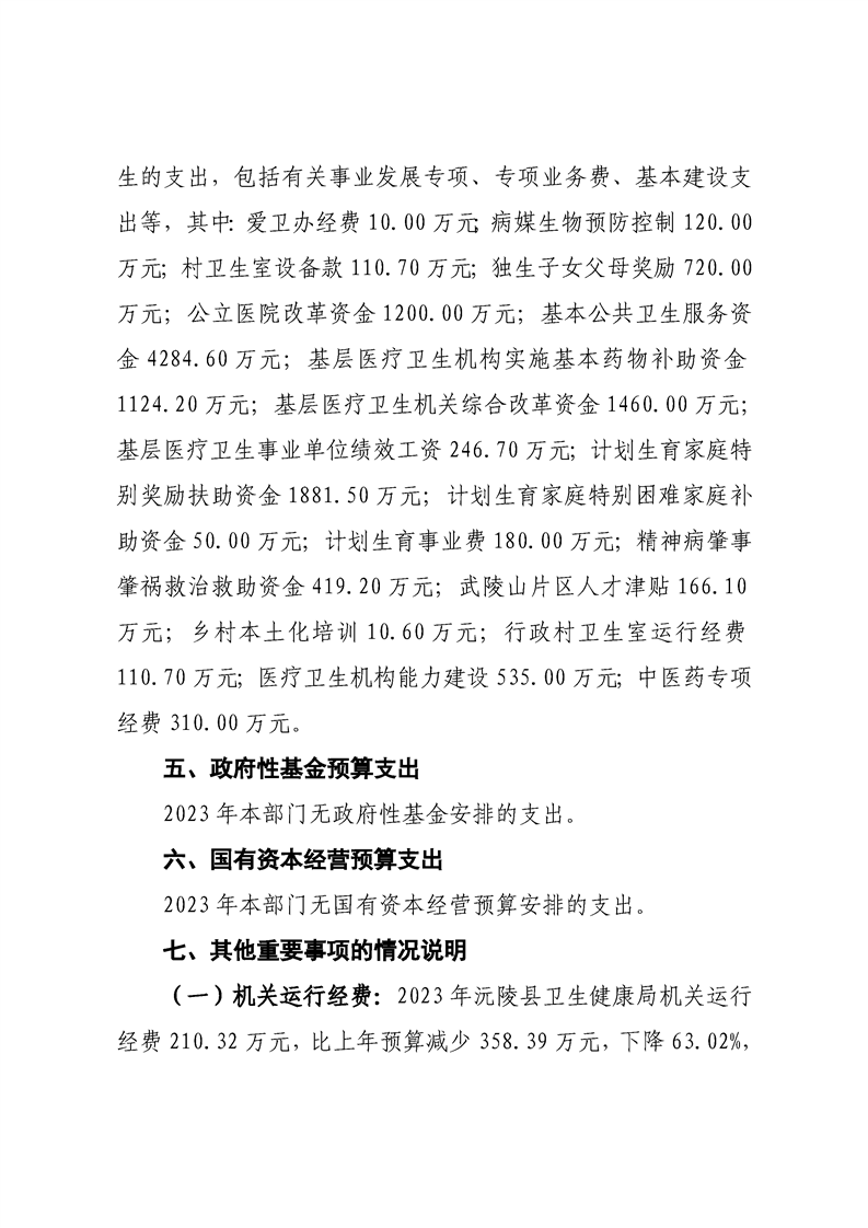 2023年沅陵县卫生健康局预算公开