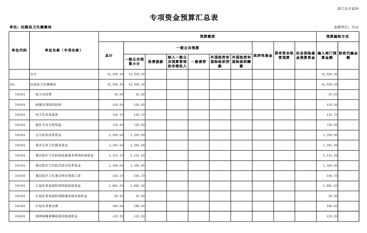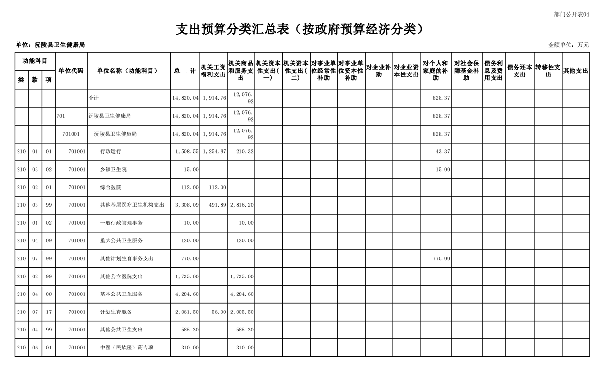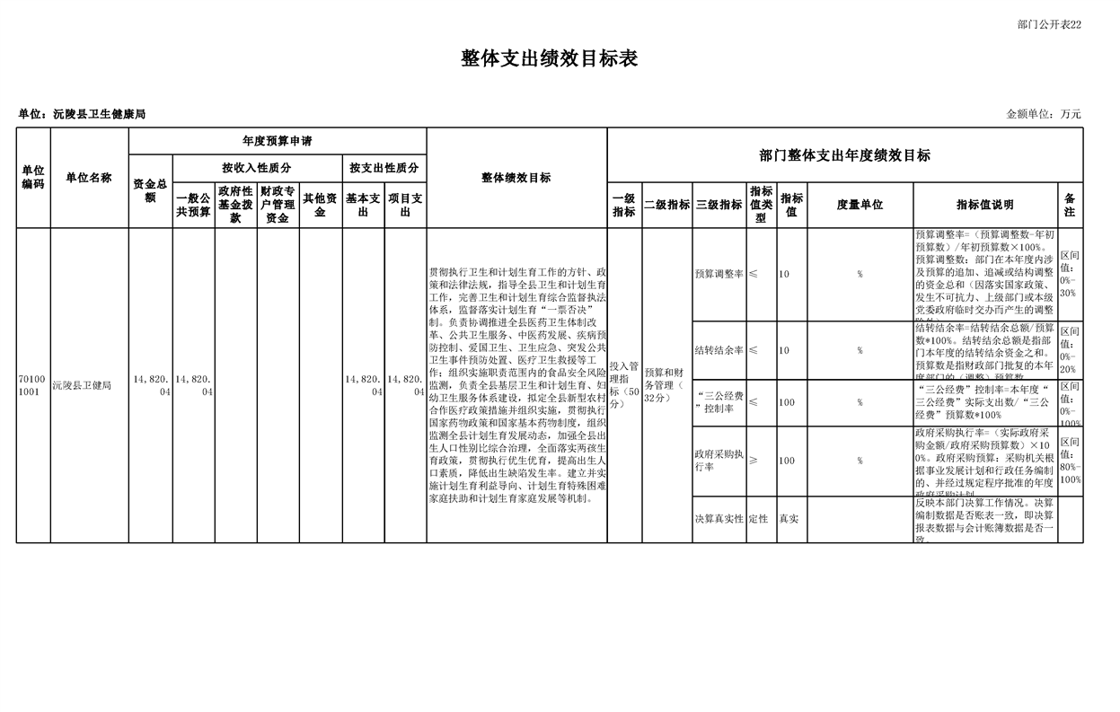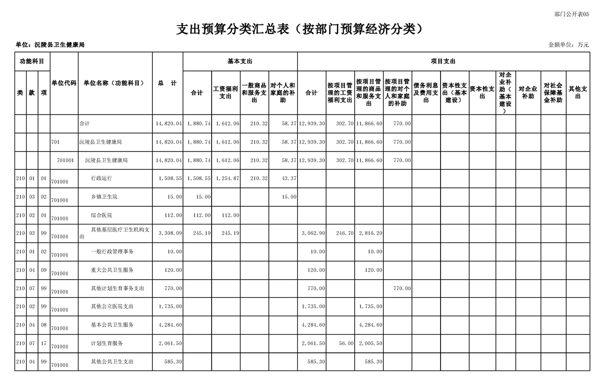 2023年沅陵县卫生健康局预算公开