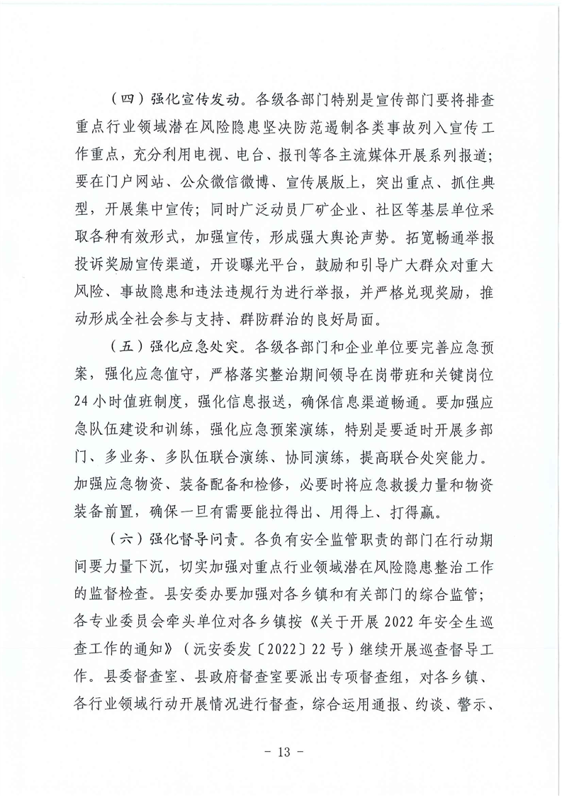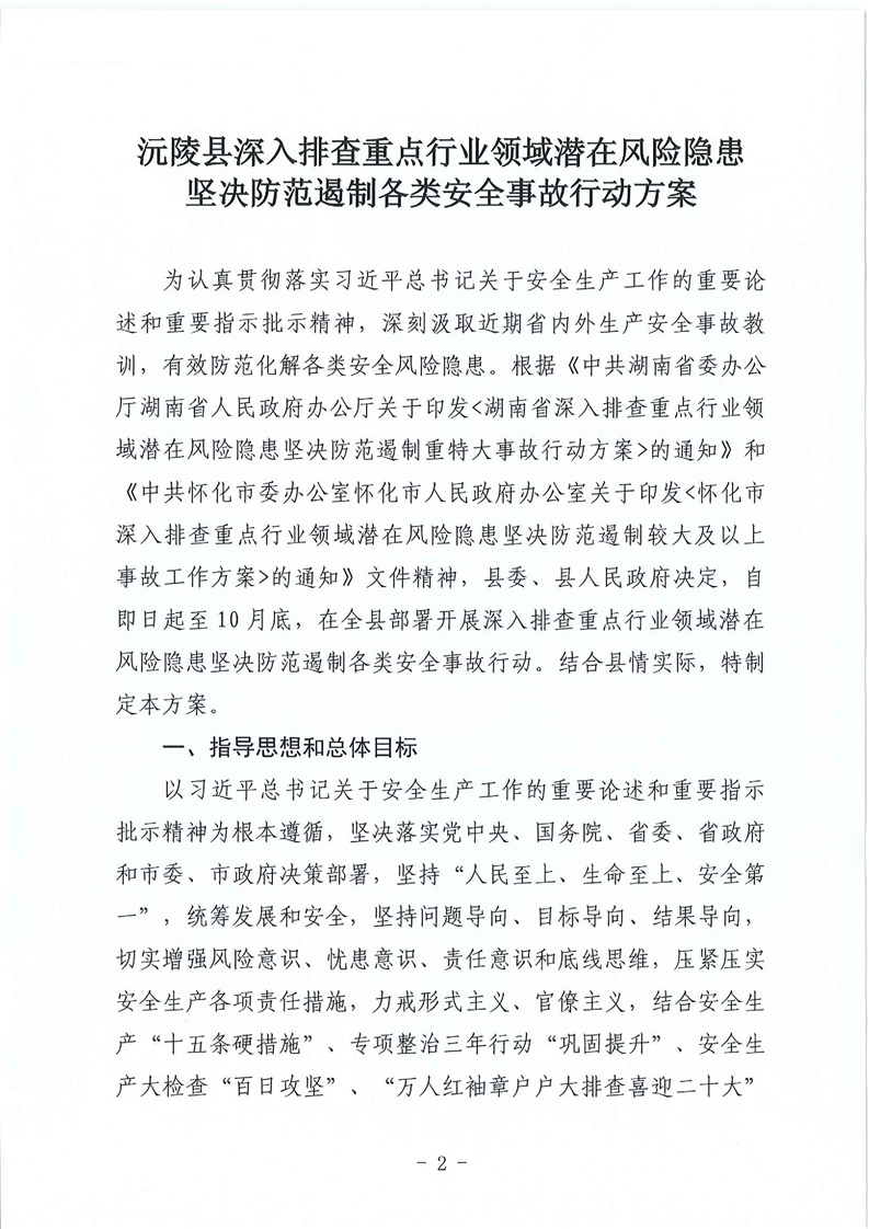 中共沅陵县委办公室沅陵县人民政府办公室关于印发《沅陵县深入排查重点行业领域潜在风险隐患坚决防范遏制各类安全事故行动方案》的通知