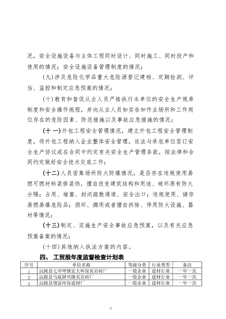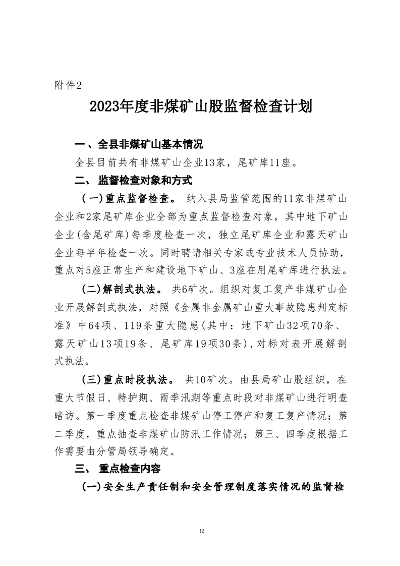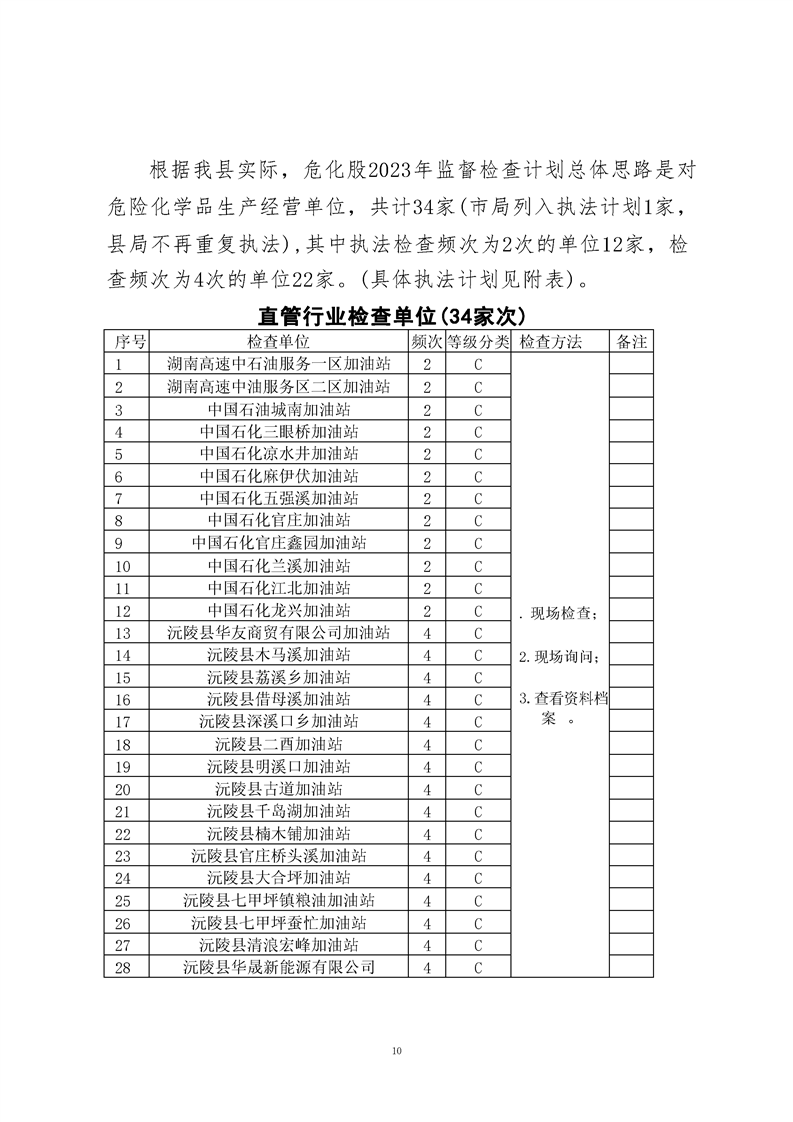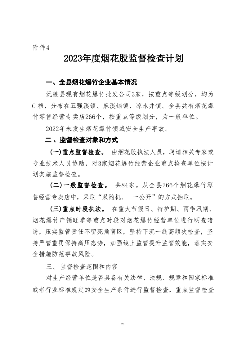 沅陵县应急管理局关于印发《2023年度安全生产监督检查计划》的通知