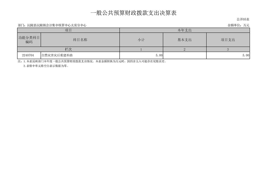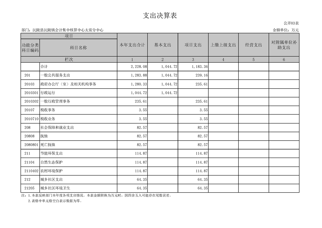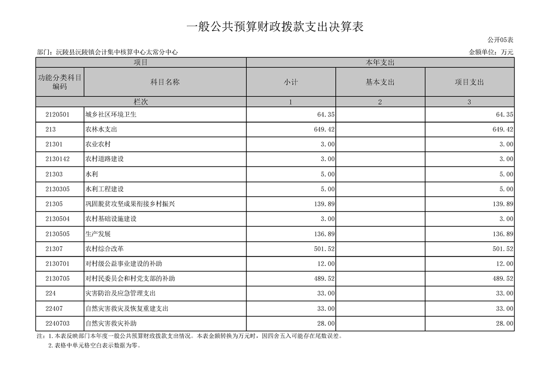 2023年度沅陵县沅陵镇会计集中核算中心太常分中心部门决算