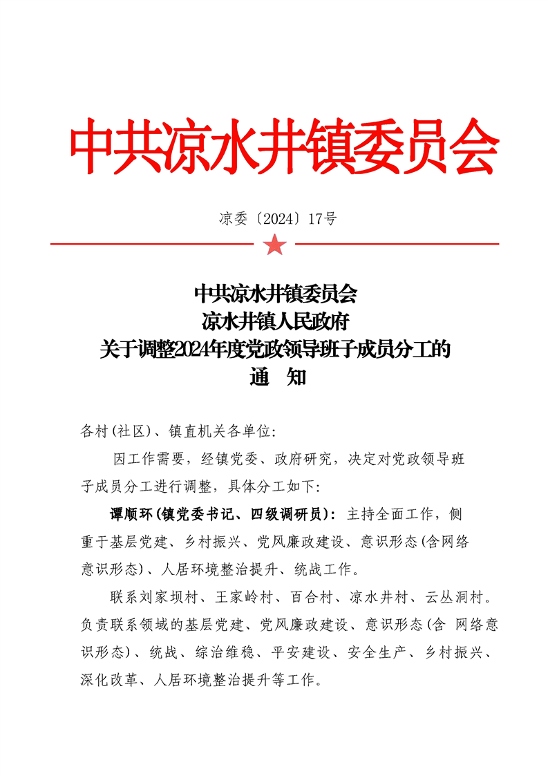 关于调整2024年度党政领导班子成员分工的通知