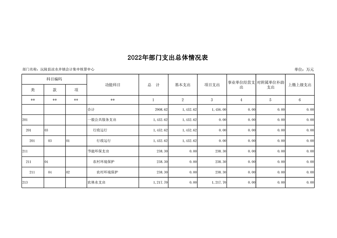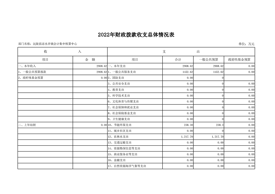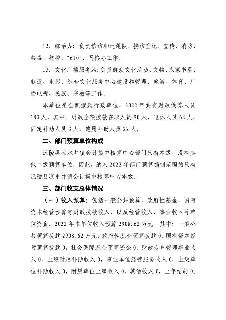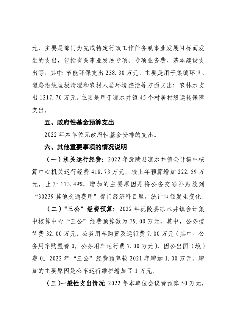 2022年沅陵县凉水井镇会计集中核算中心预算公开