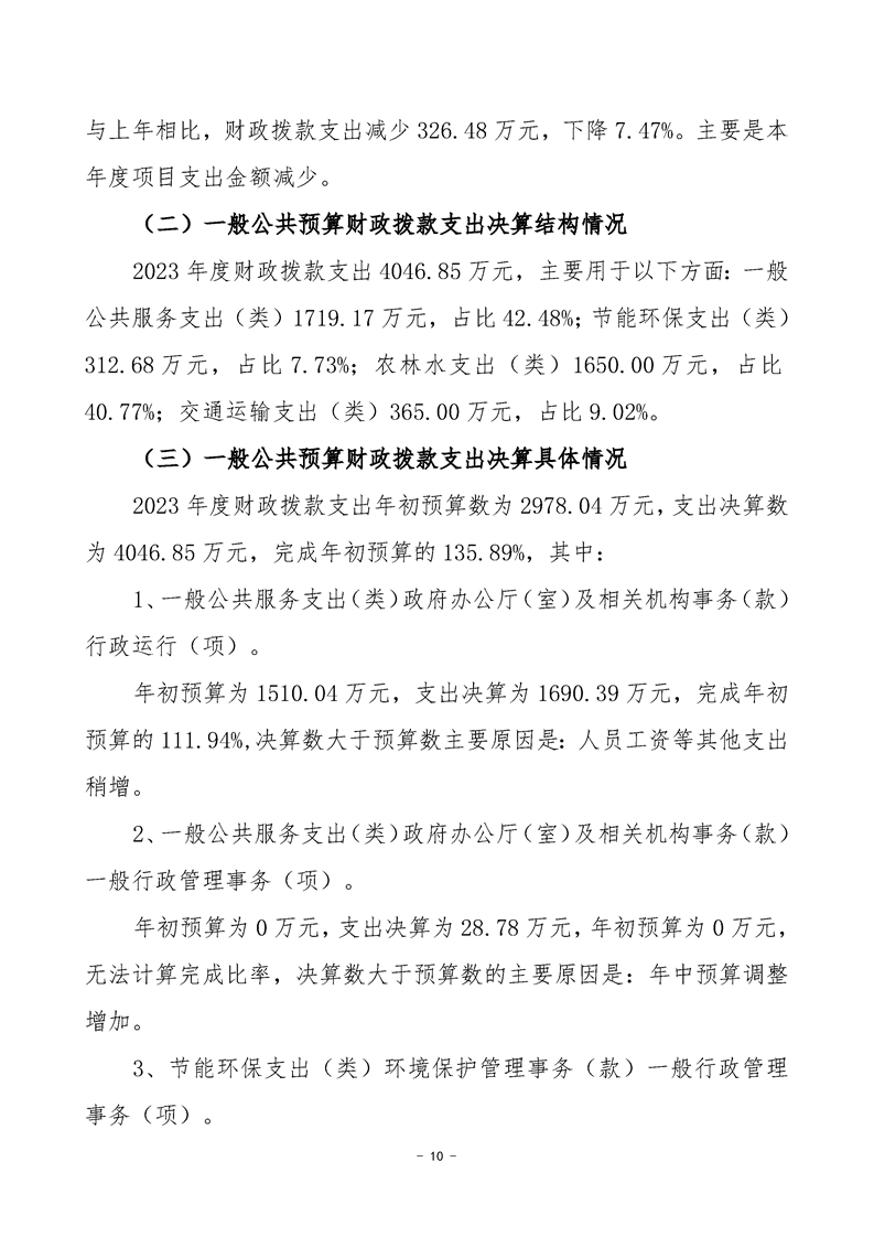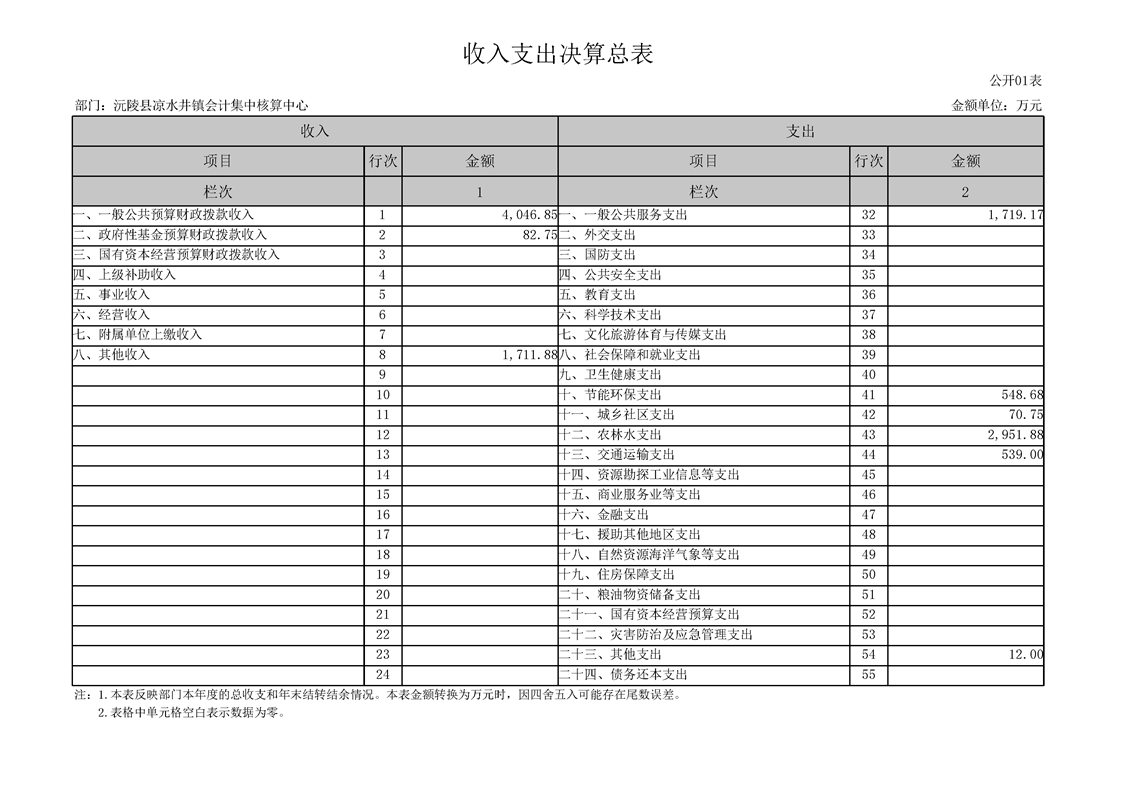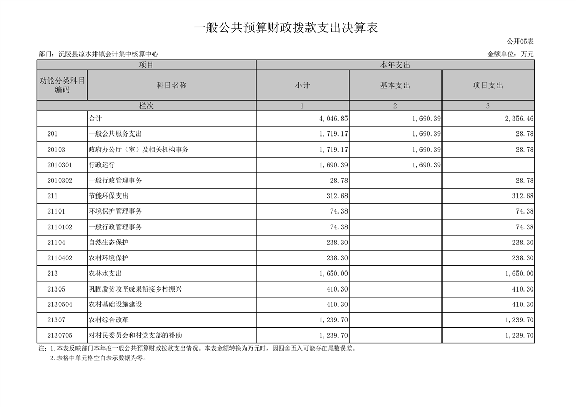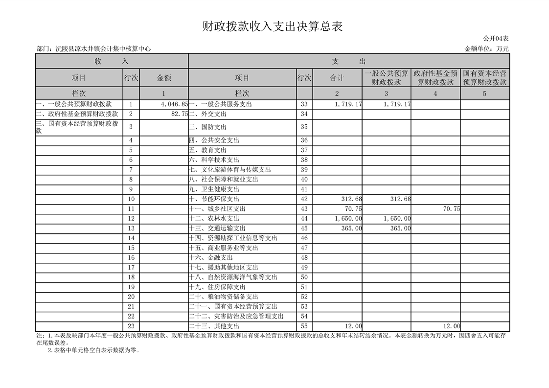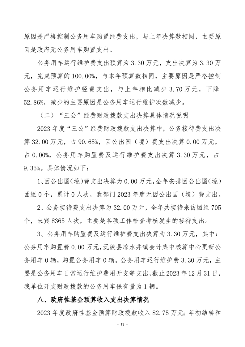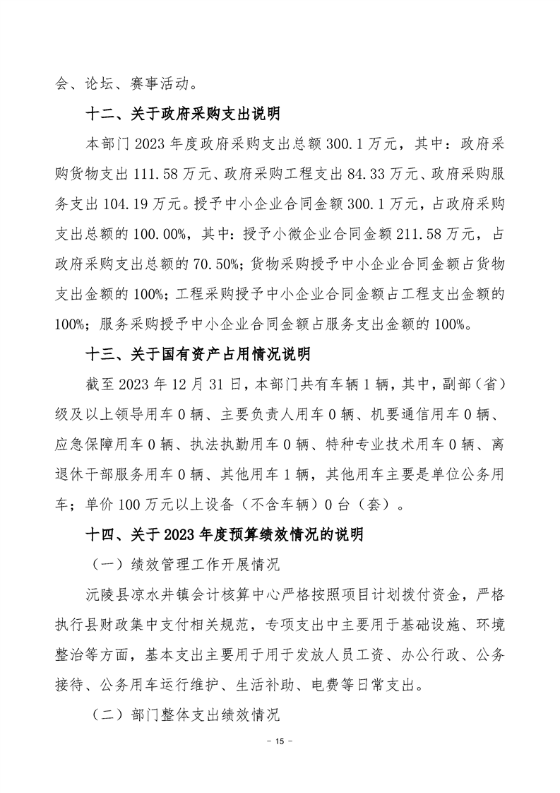 2023年度沅陵县凉水井镇会计集中核算中心部门决算