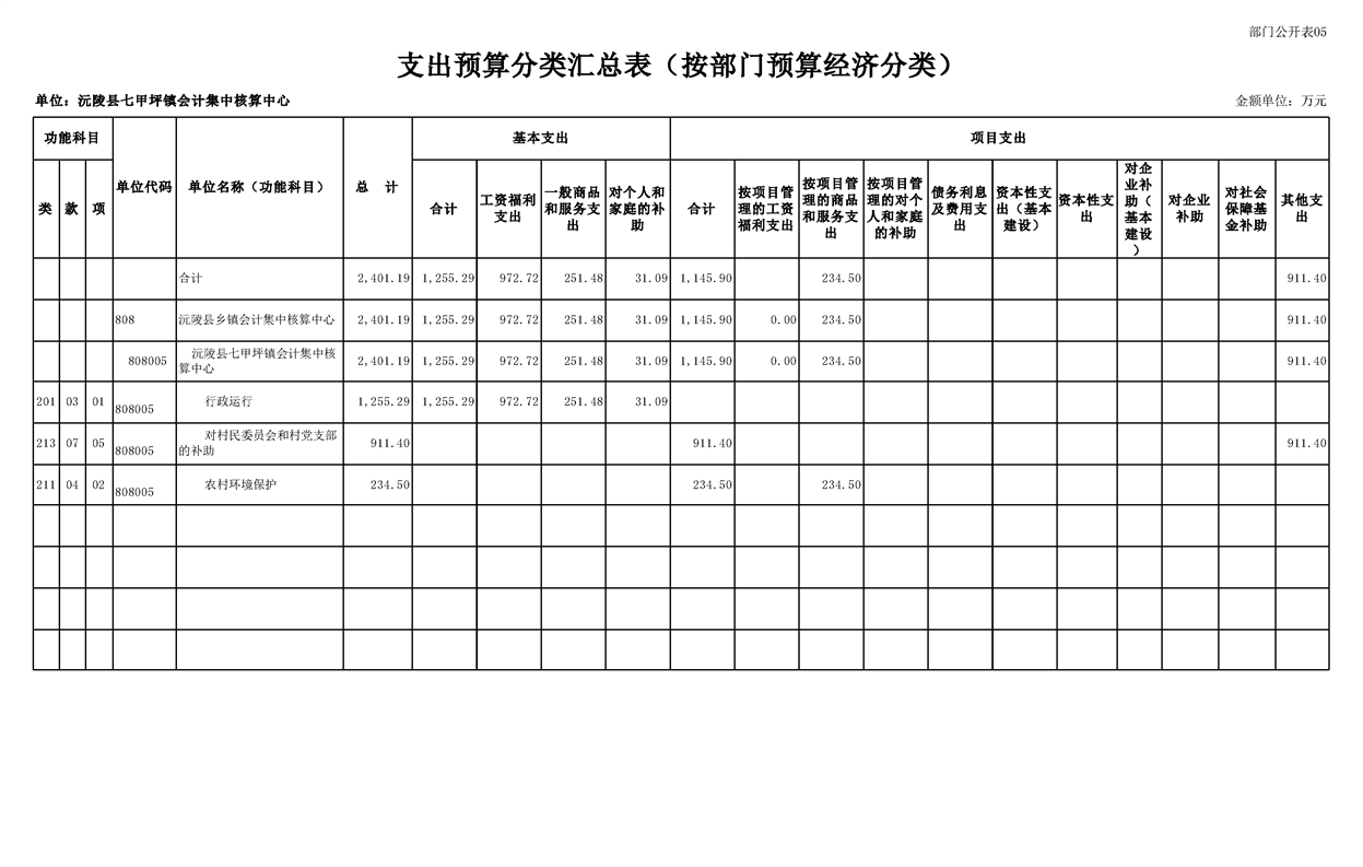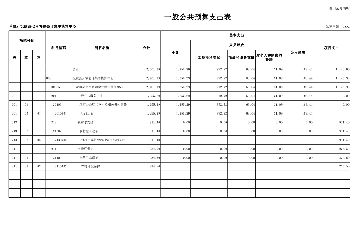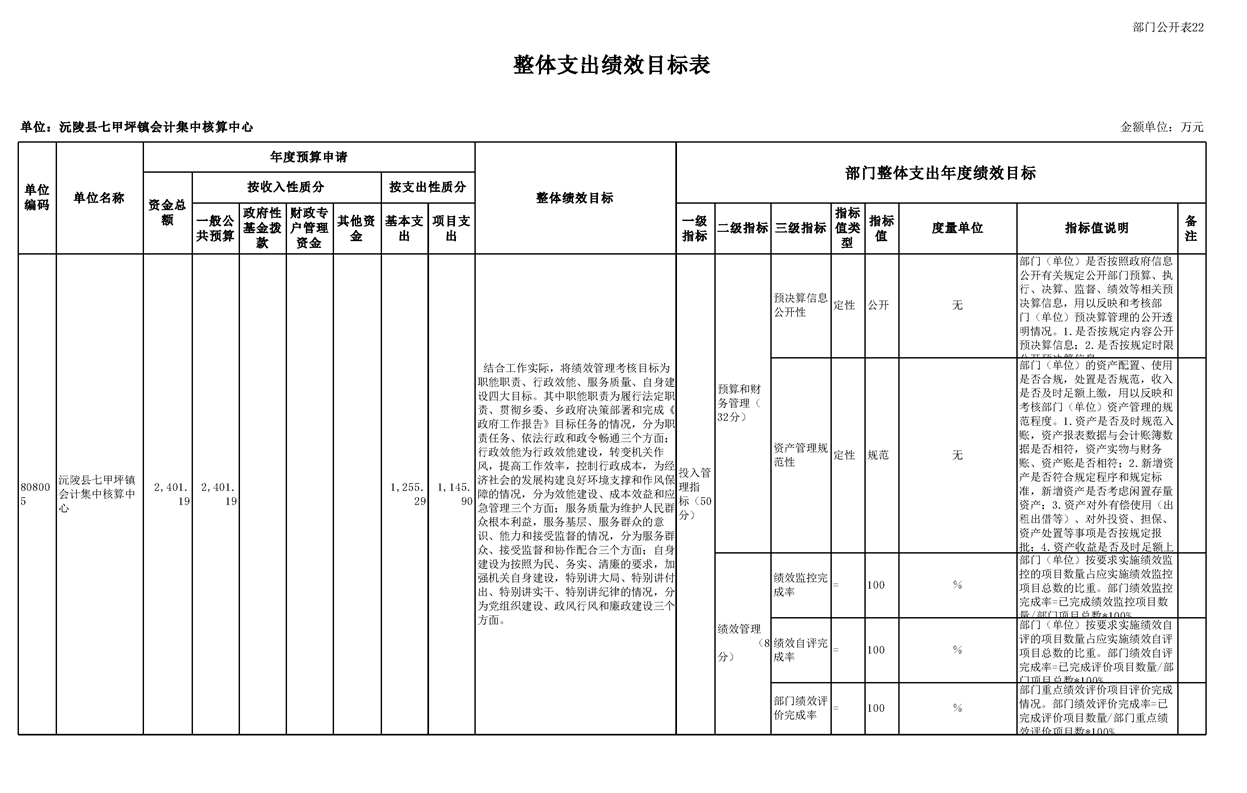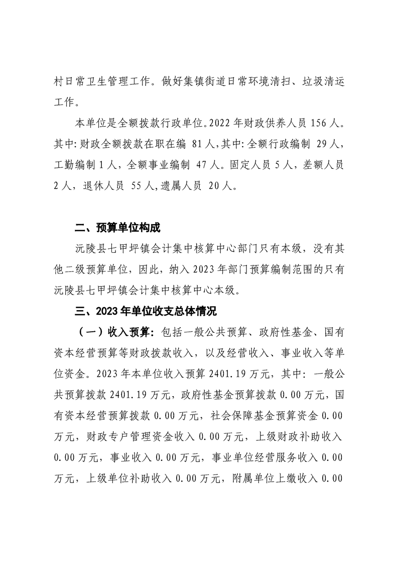 2023年沅陵县七甲坪镇会计集中核算中心预算公开