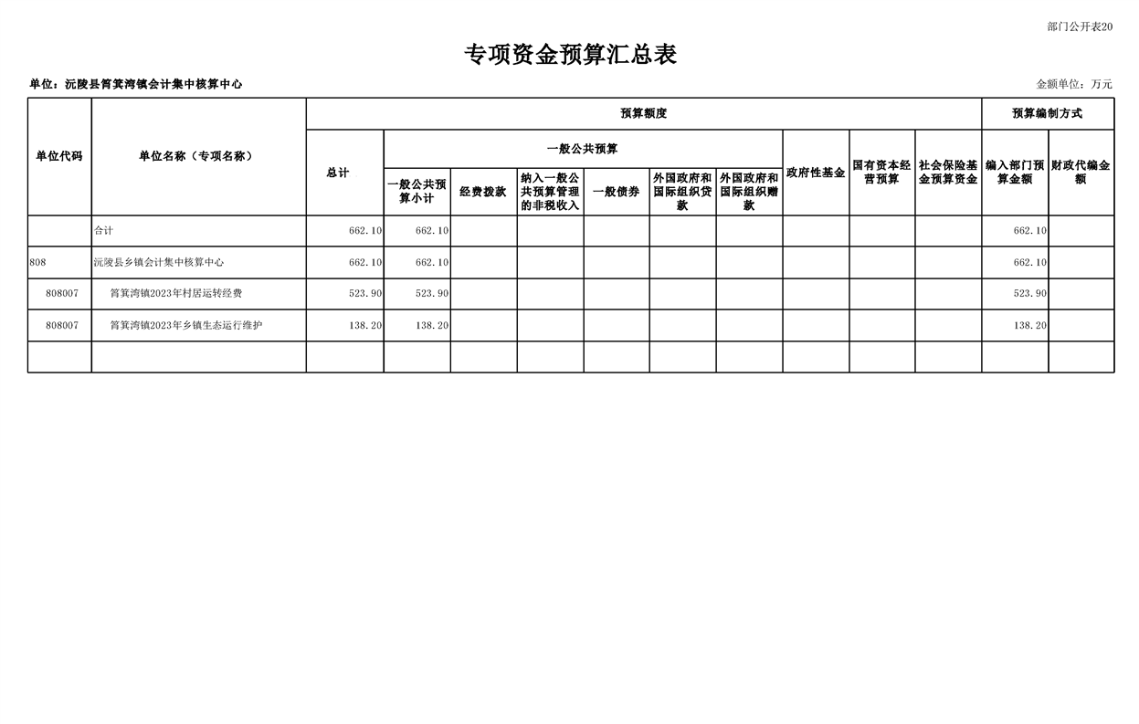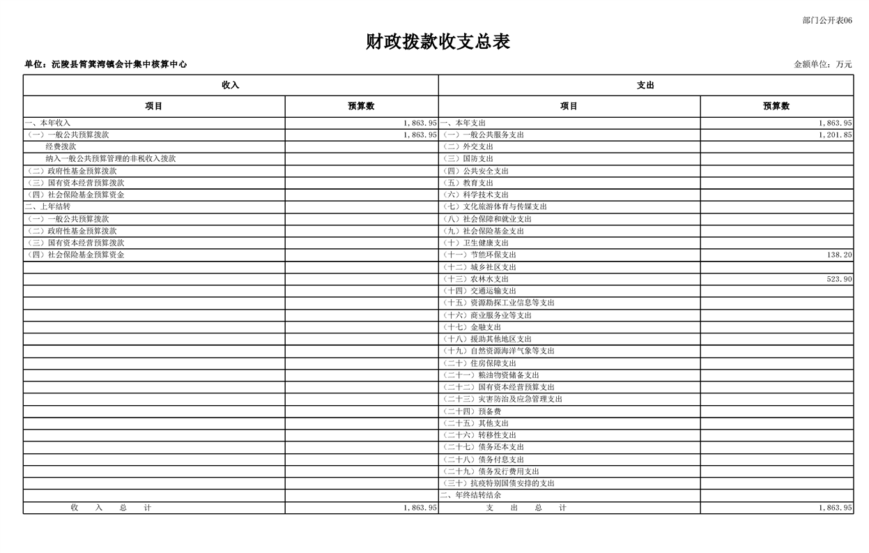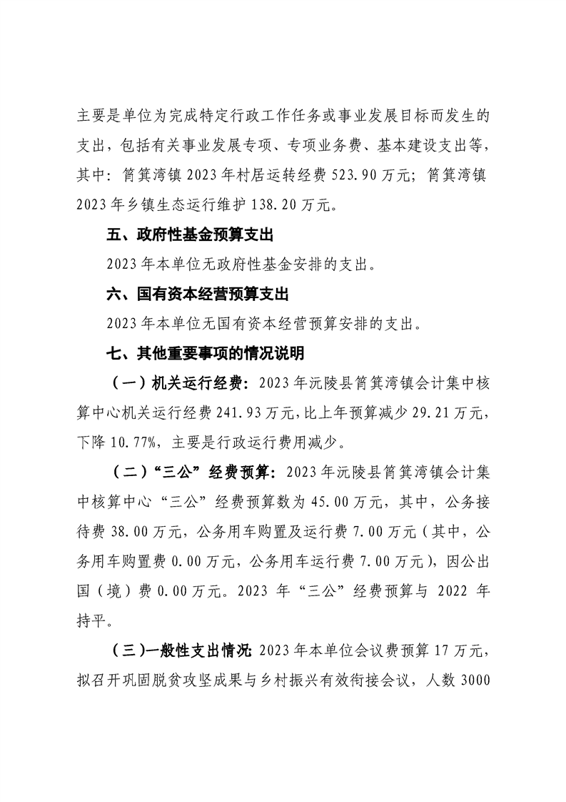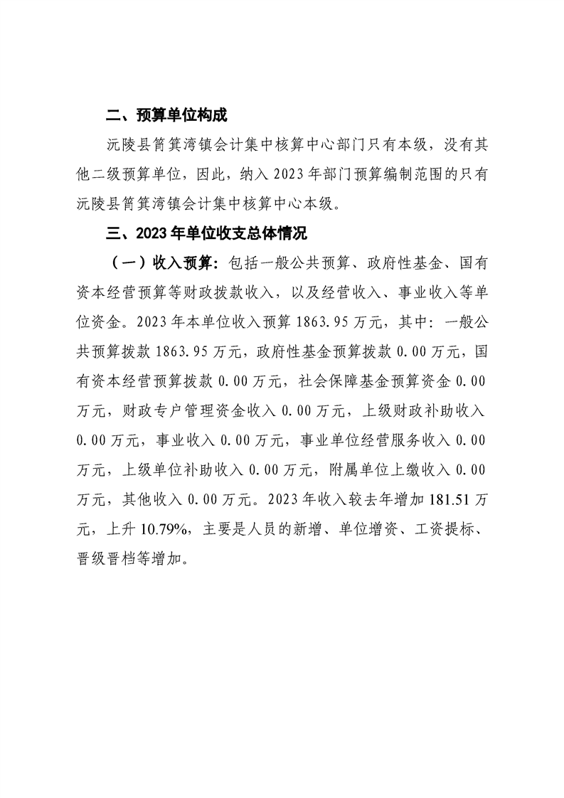 2023年沅陵县筲箕湾镇会计集中核算中心预算公开