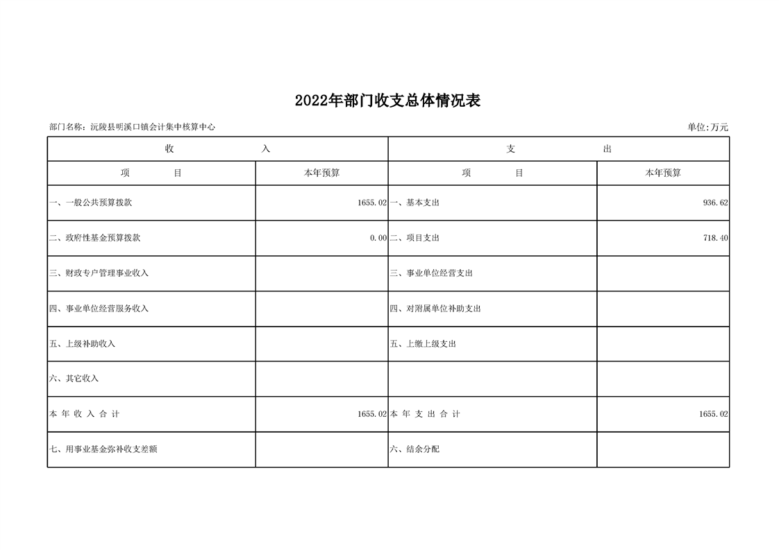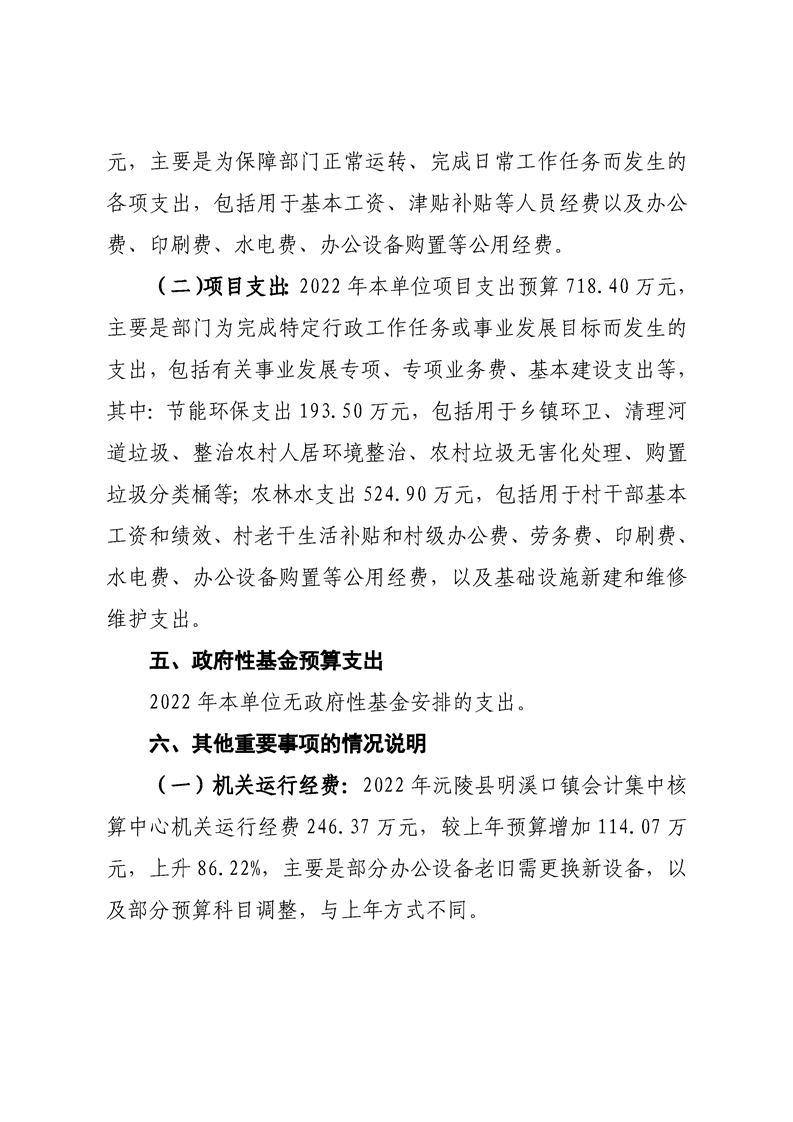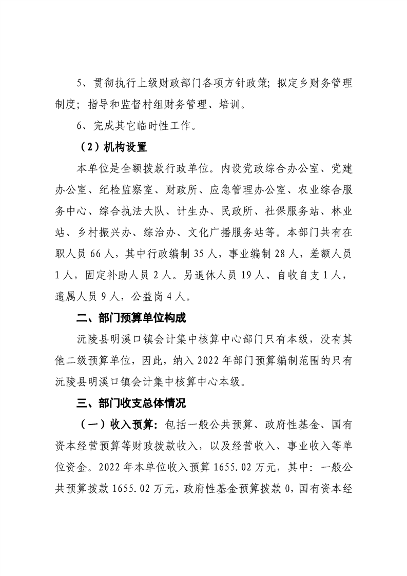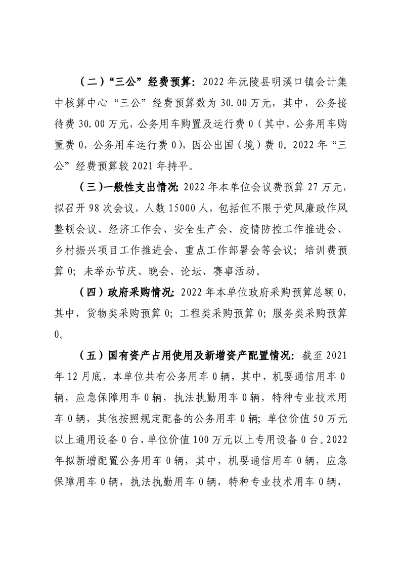 2022年沅陵县明溪口镇会计集中核算中心预算公开