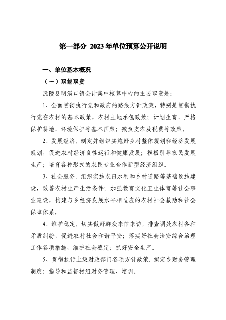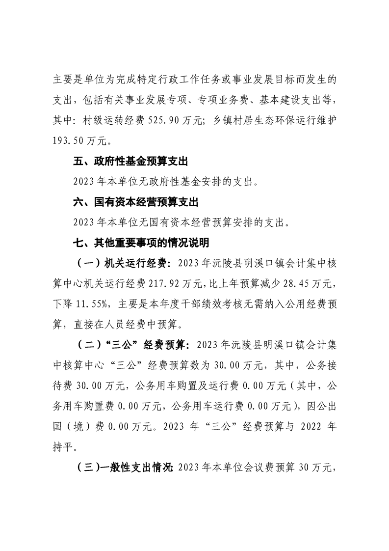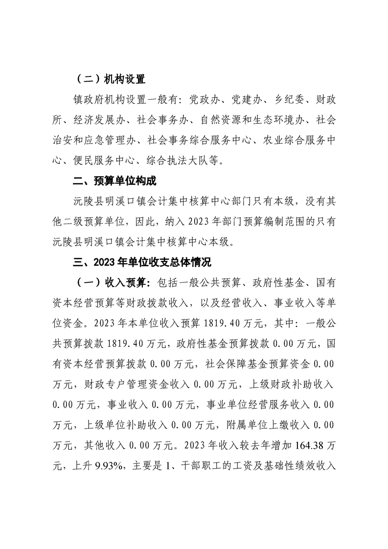 2023年沅陵县明溪口镇会计集中核算中心预算公开