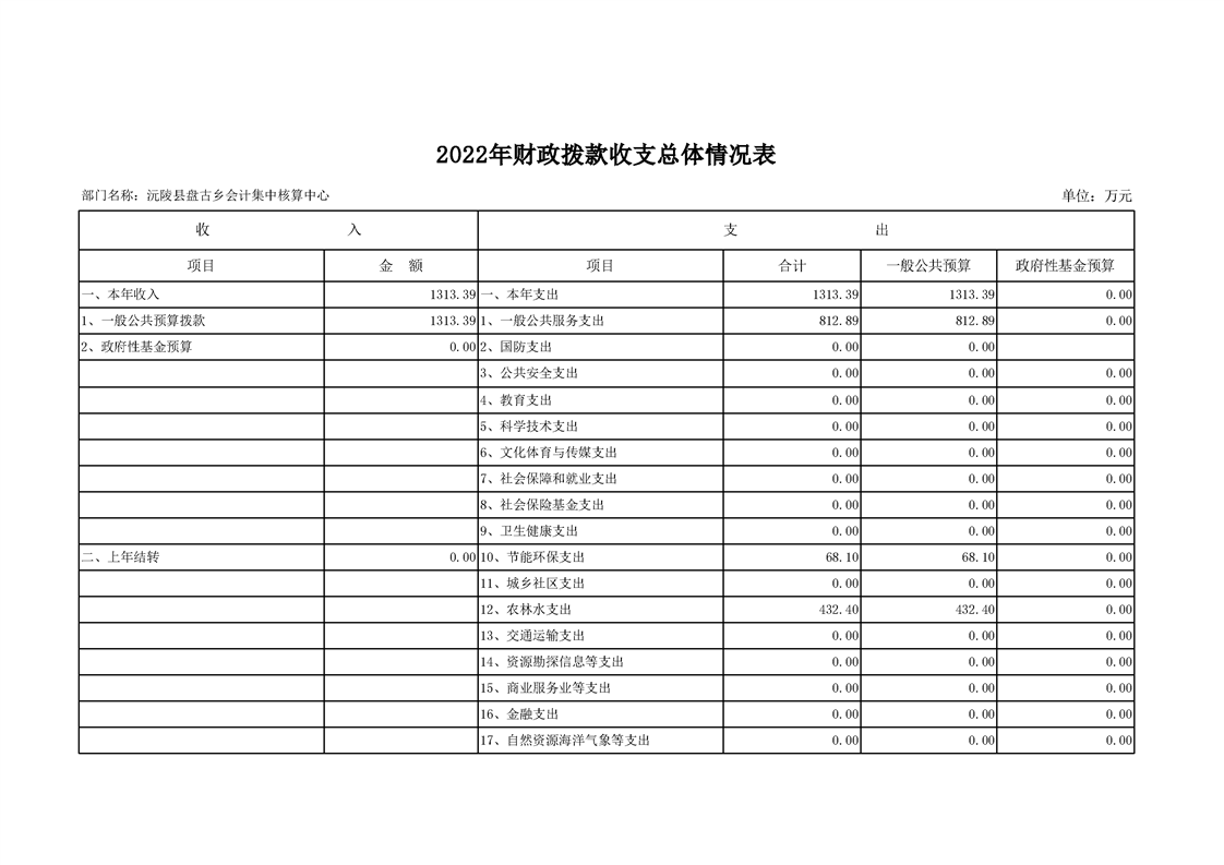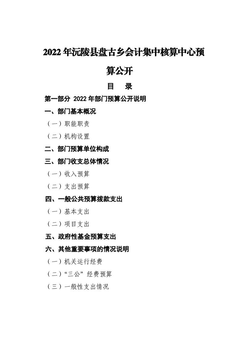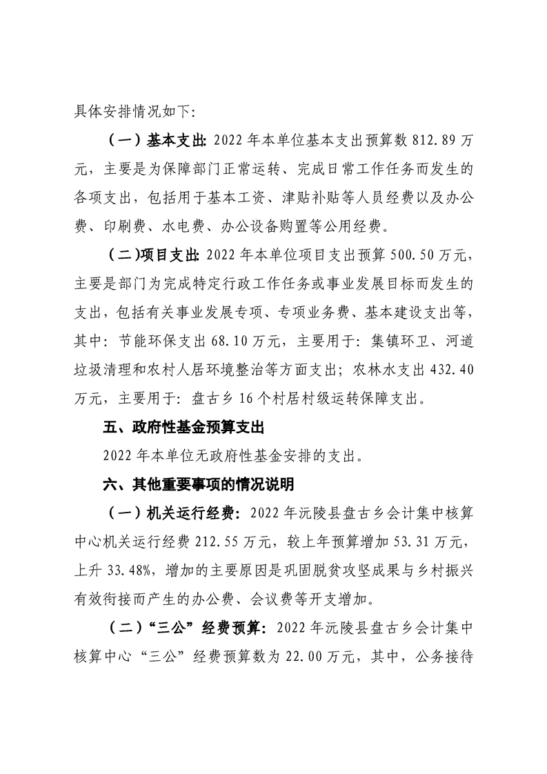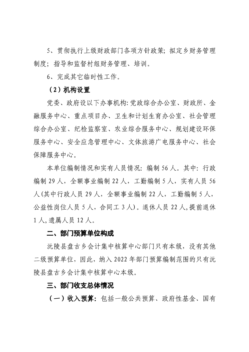 2022年沅陵县盘古乡会计集中核算中心预算公开