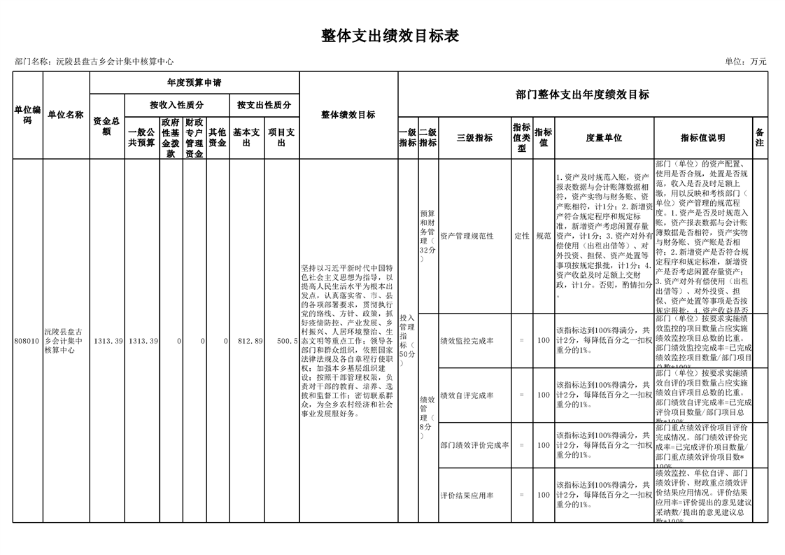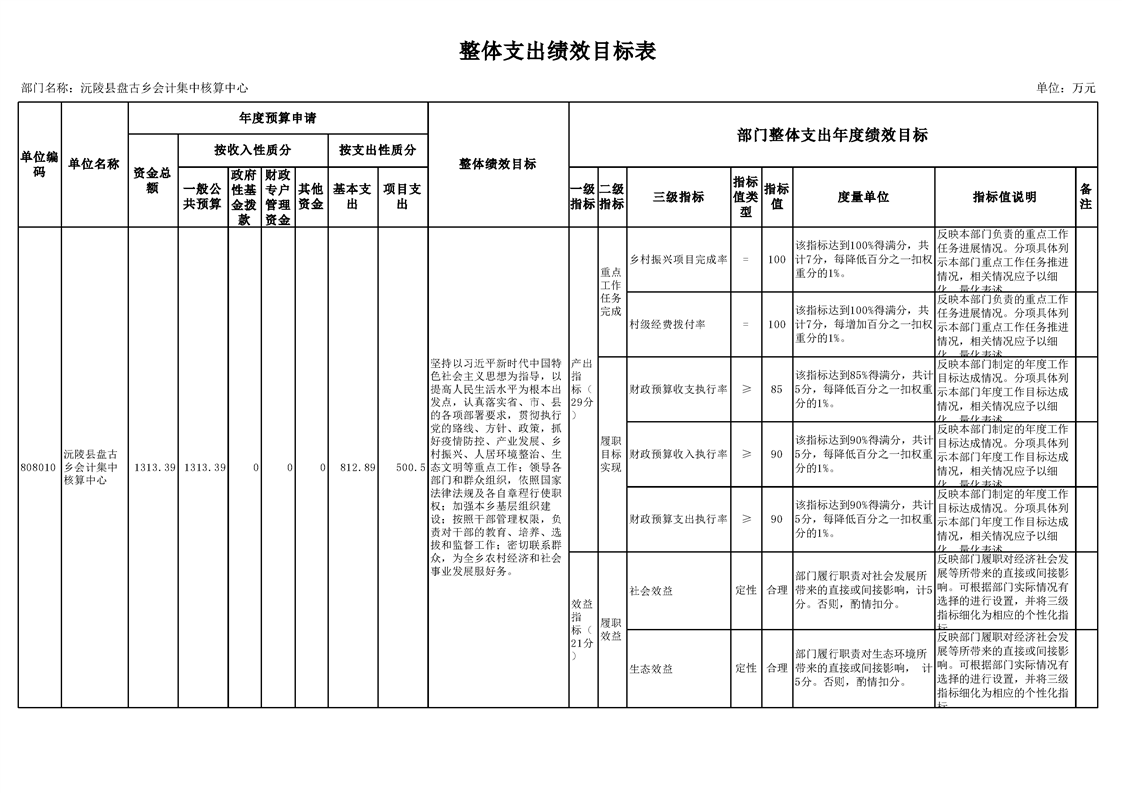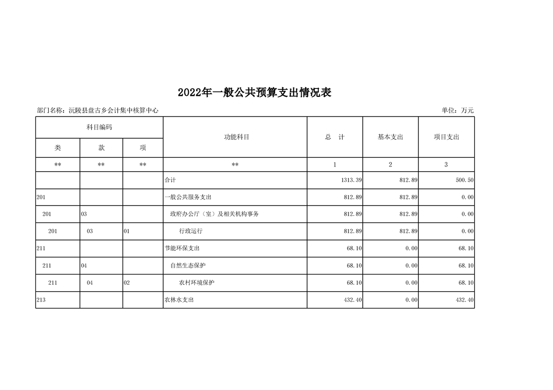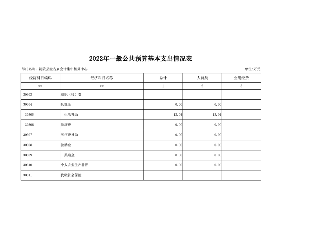 2022年沅陵县盘古乡会计集中核算中心预算公开