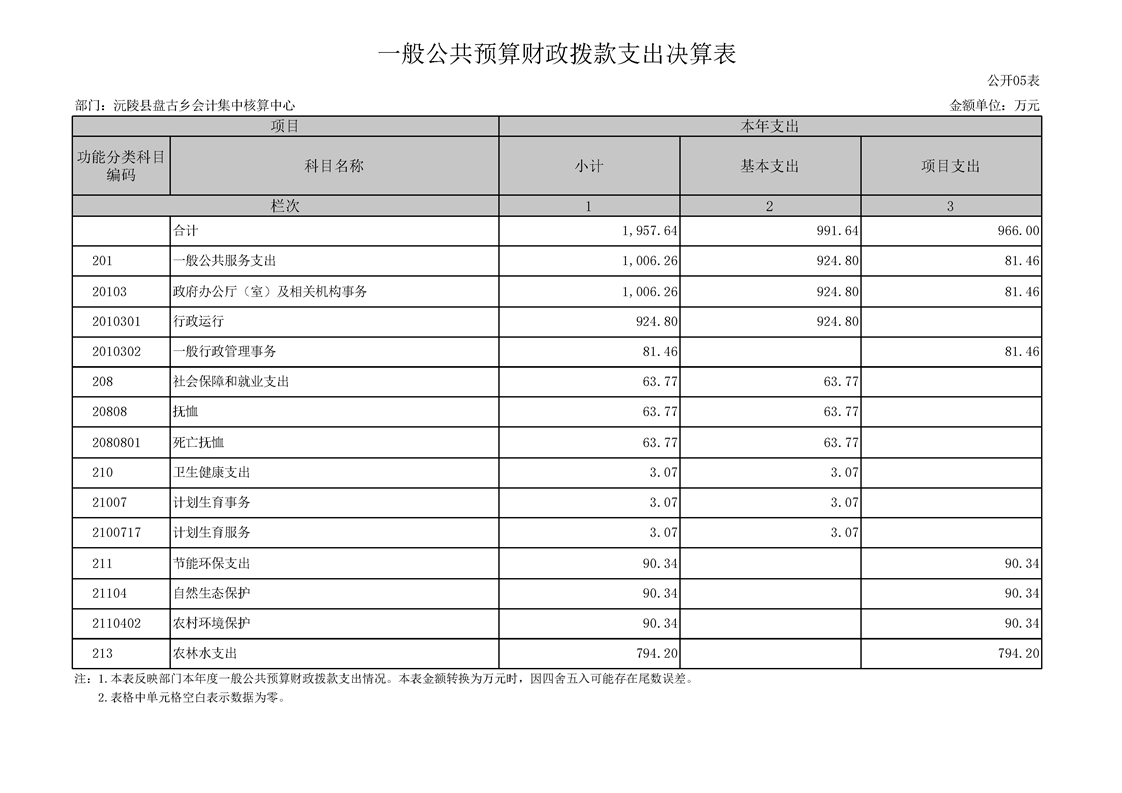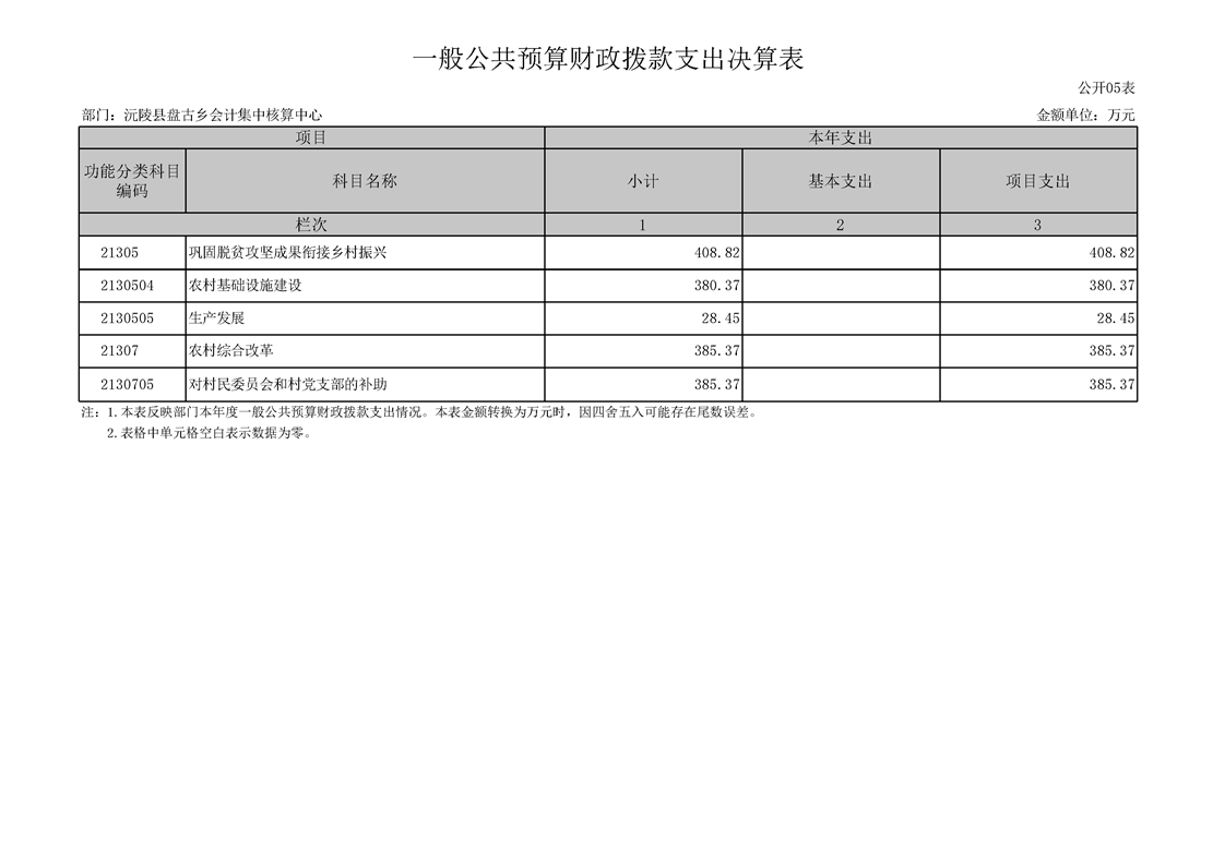 2023年度沅陵县盘古乡会计集中核算中心部门决算