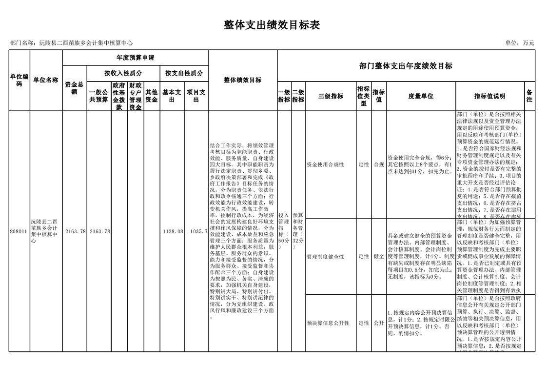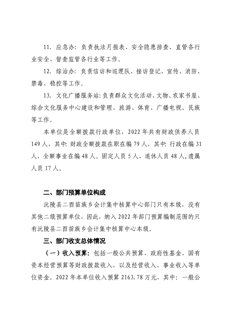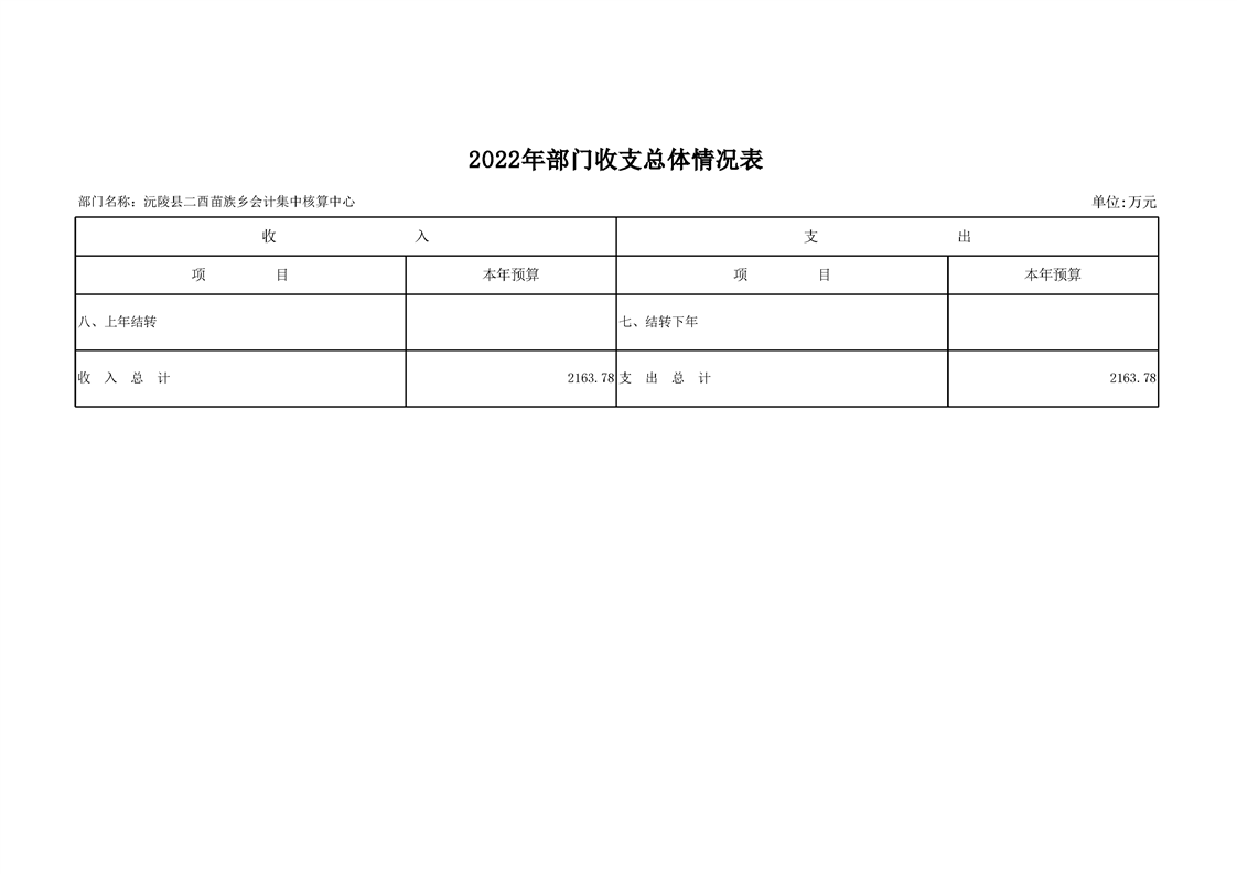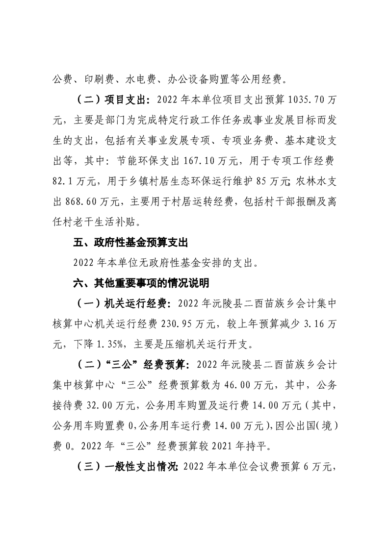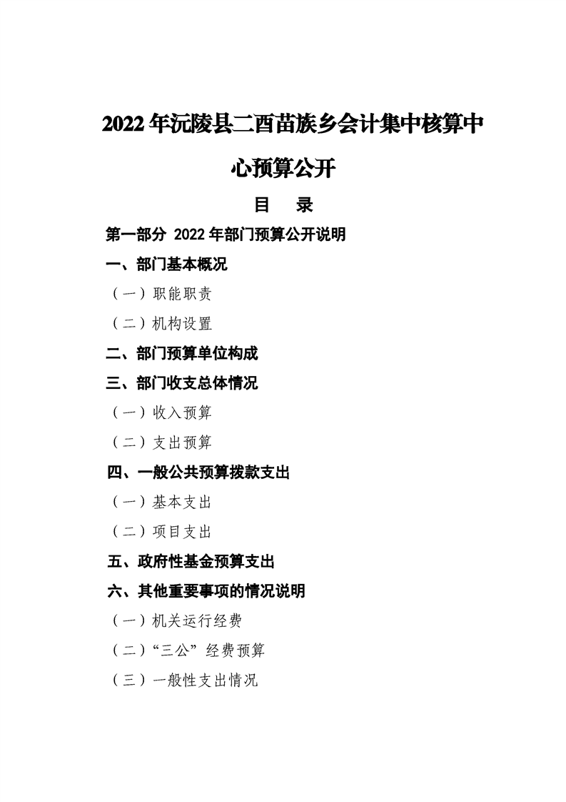 2022年沅陵县二酉苗族乡会计集中核算中心预算公开