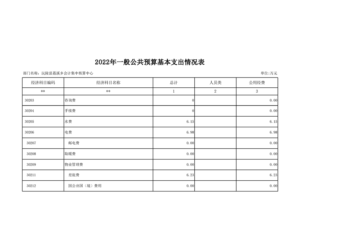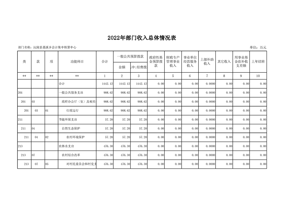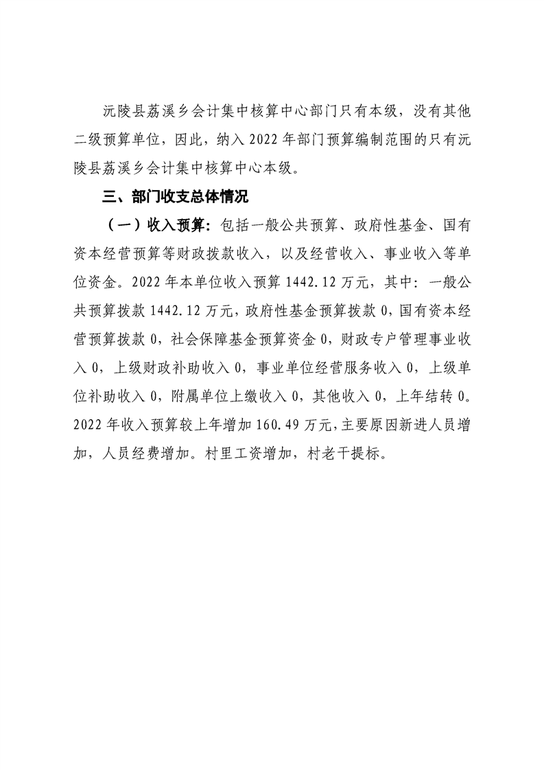 2022年沅陵县荔溪乡会计集中核算中心预算公开