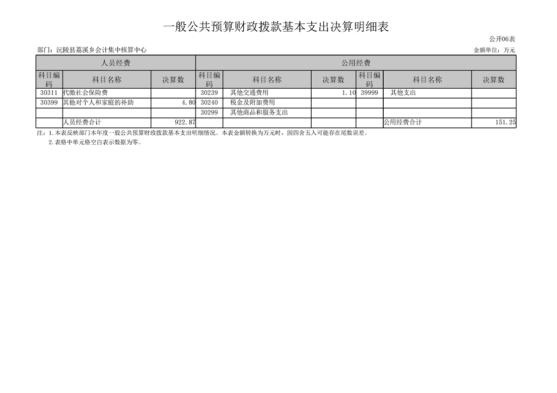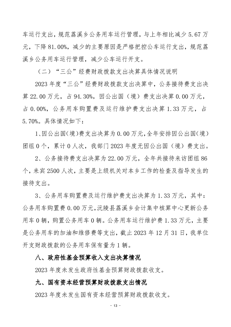 2023年度沅陵县荔溪乡会计集中核算中心部门决算