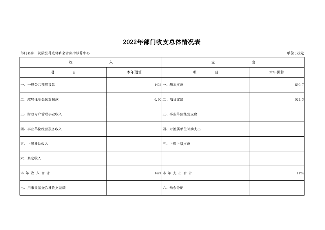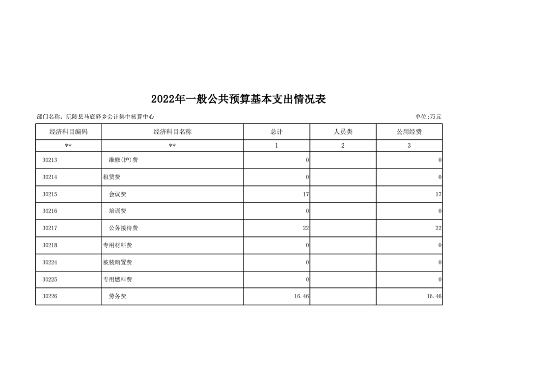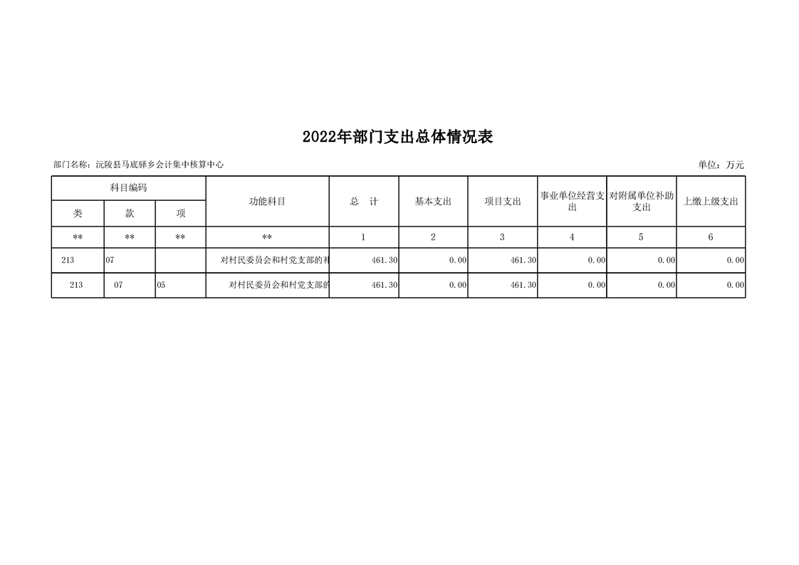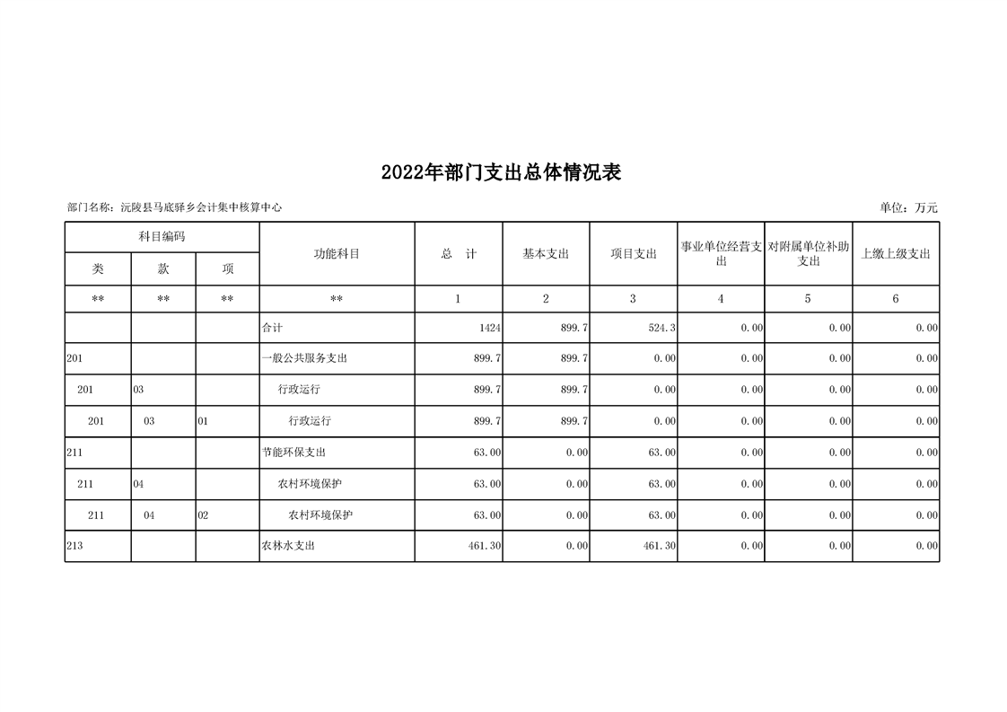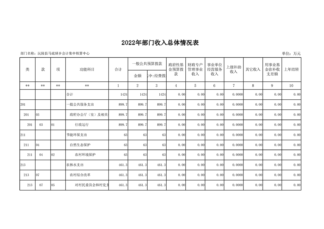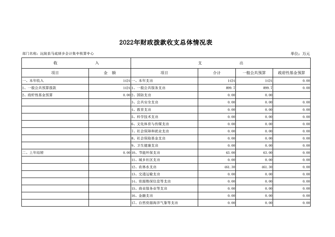 2022年沅陵县马底驿乡会计集中核算中心预算公开