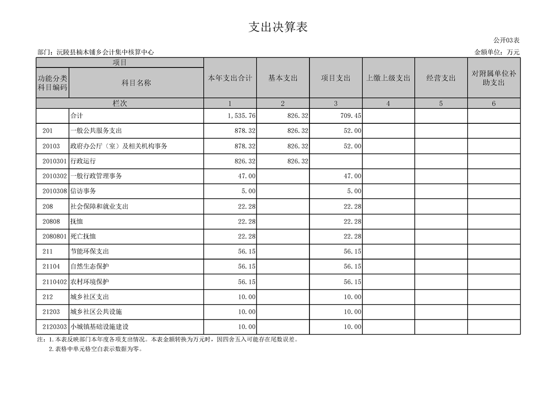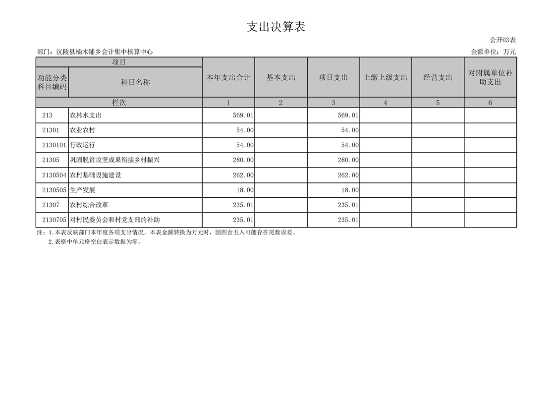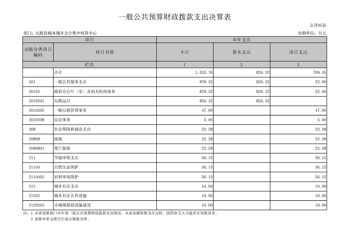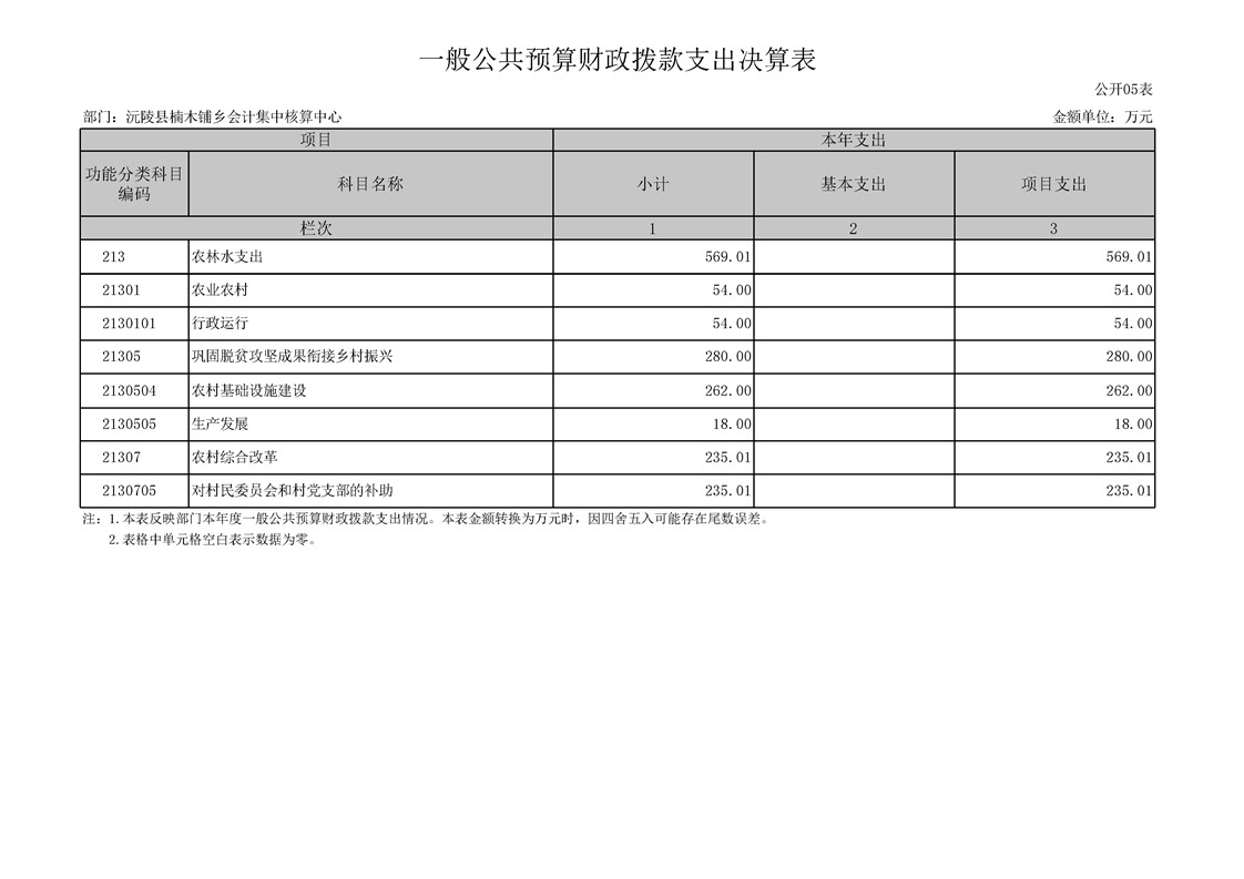 2023年度沅陵县楠木铺乡会计集中核算中心部门决算