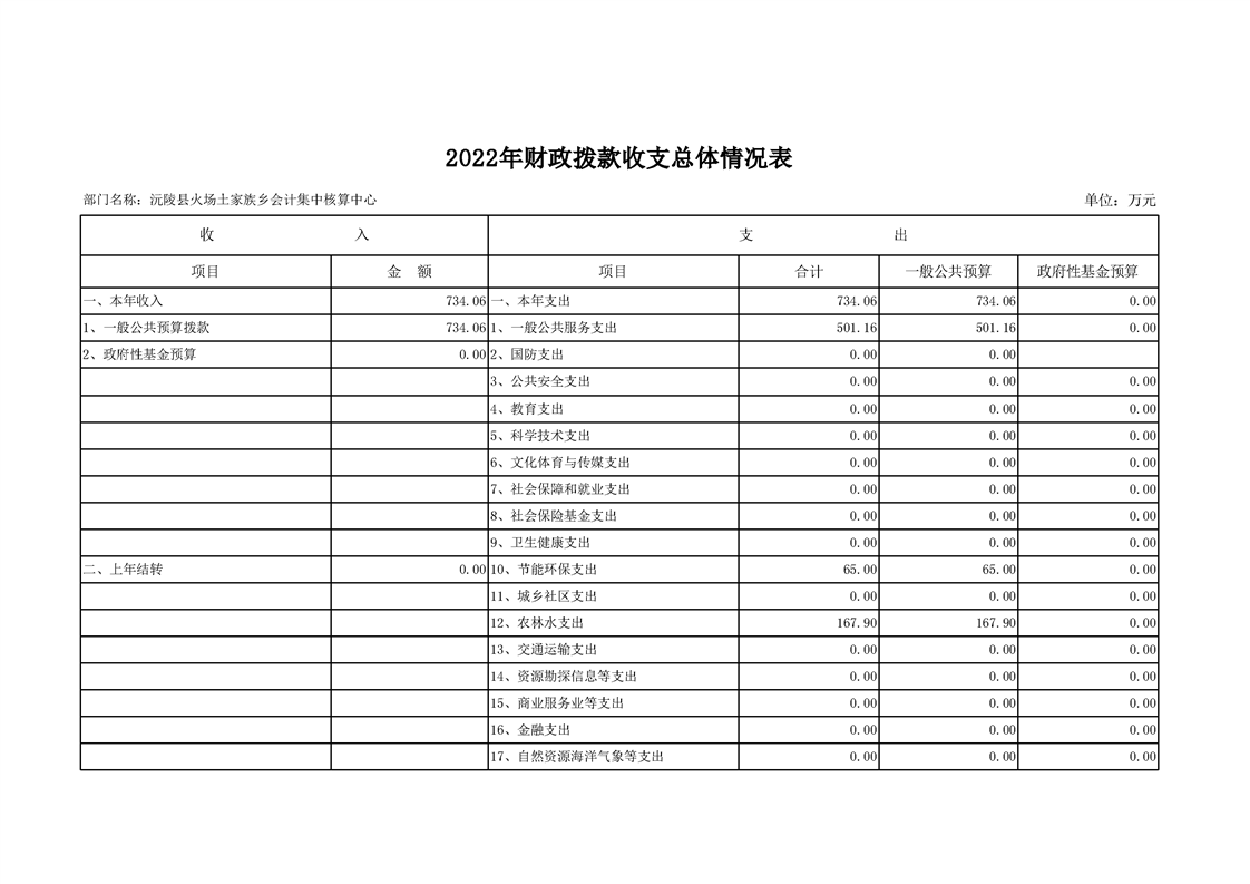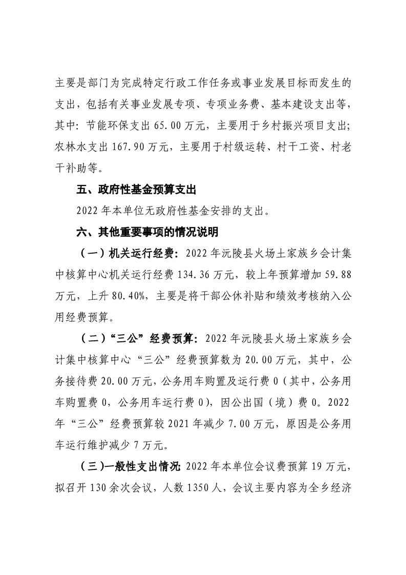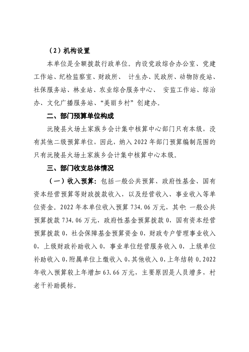 2022年沅陵县火场土家族乡会计集中核算中心预算公开