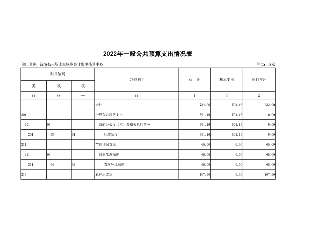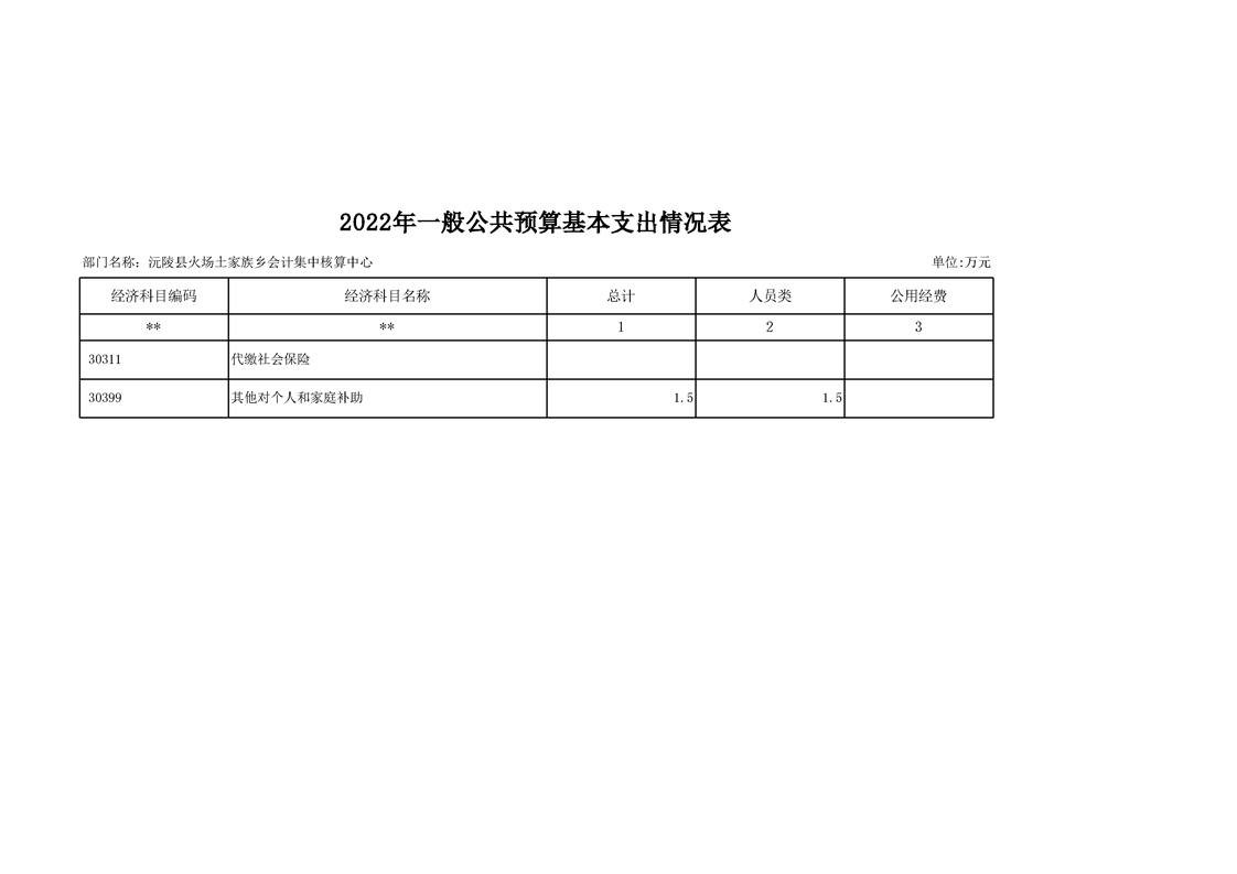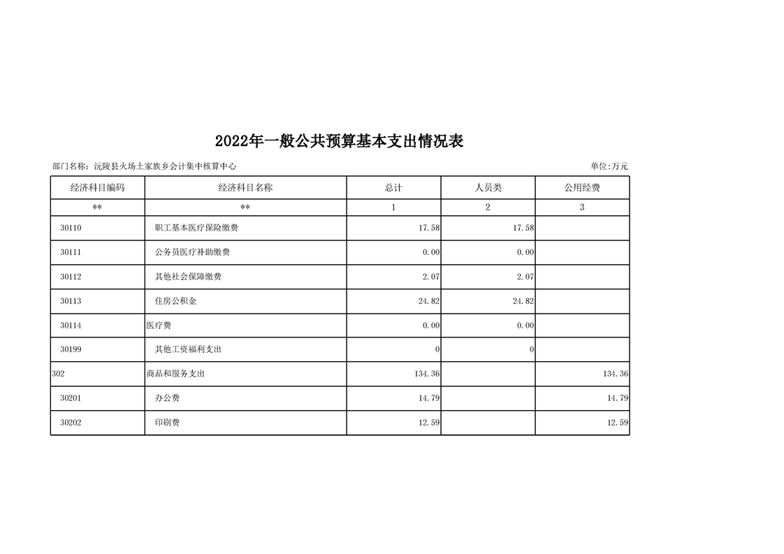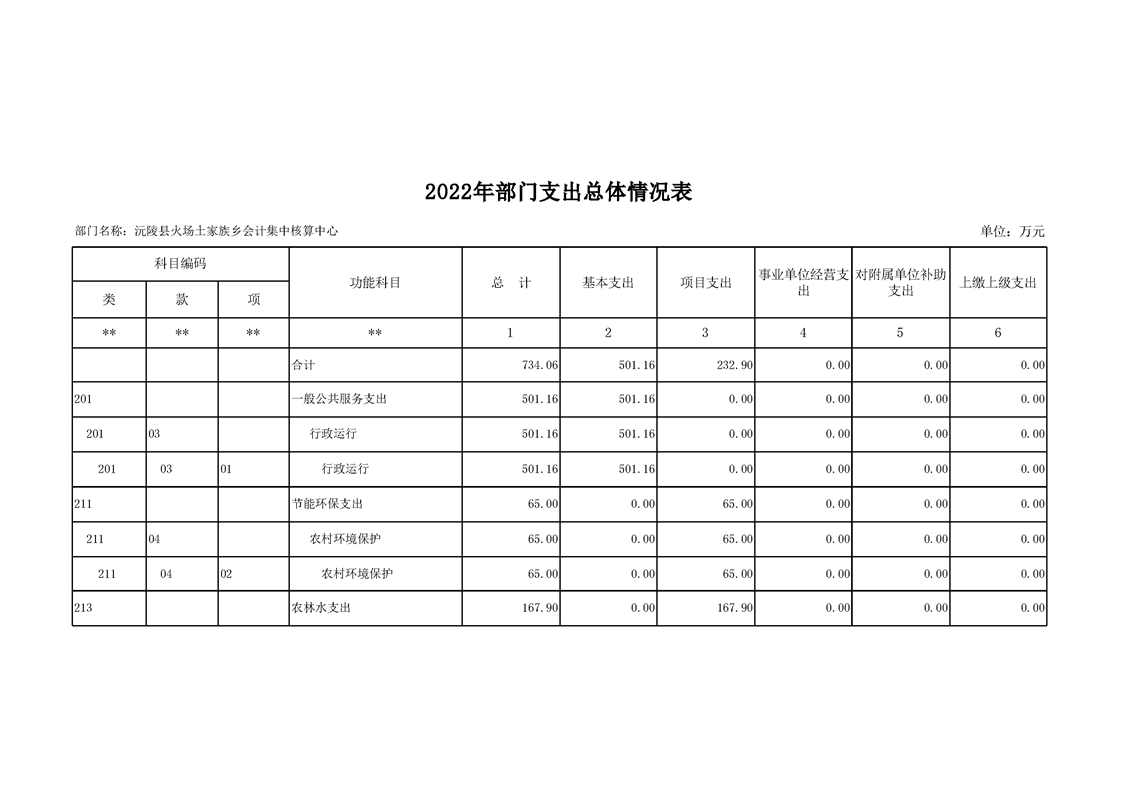 2022年沅陵县火场土家族乡会计集中核算中心预算公开