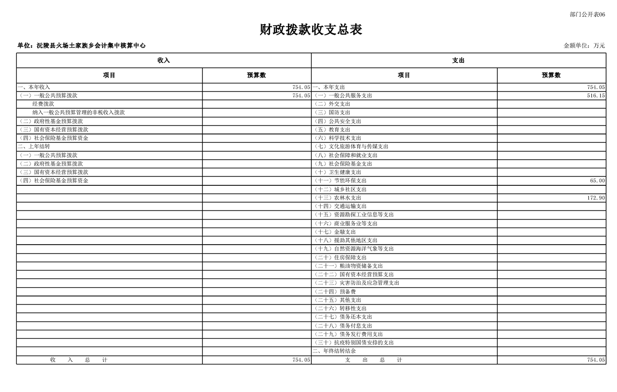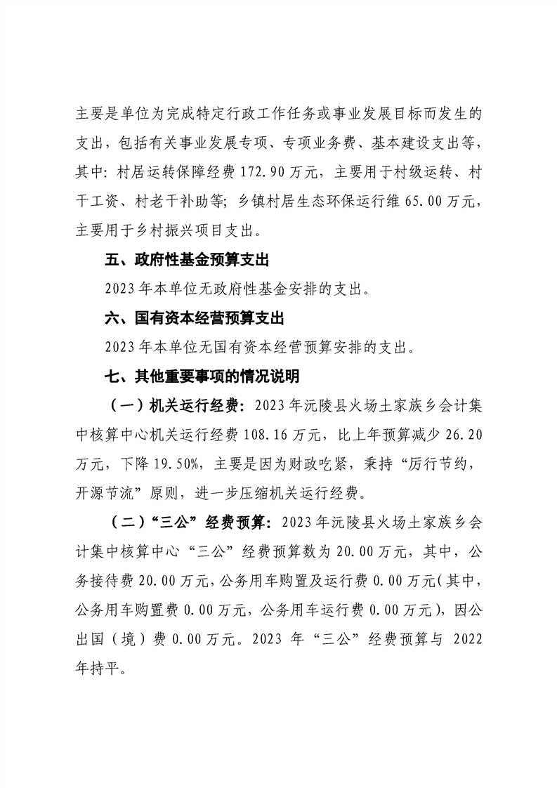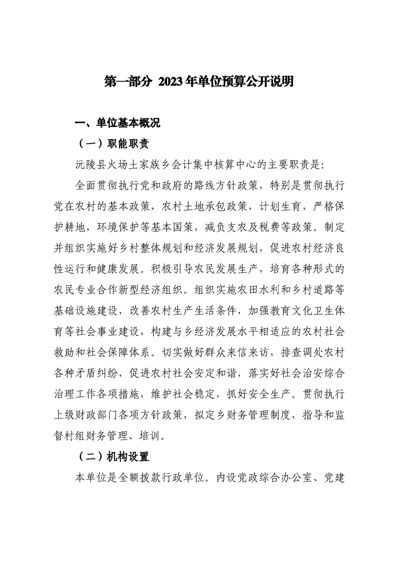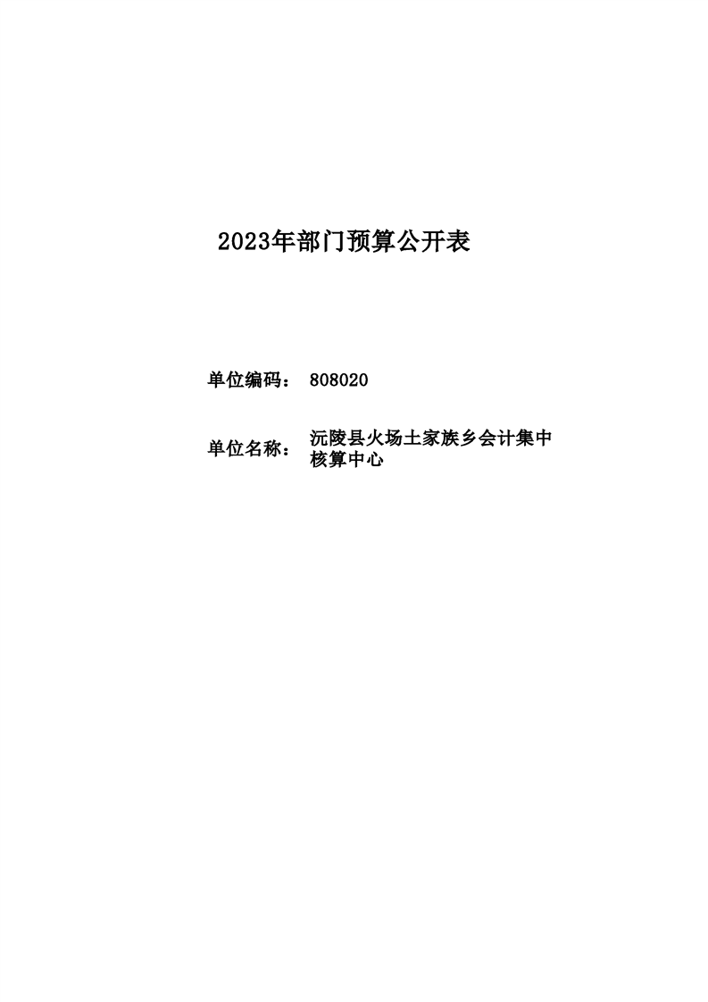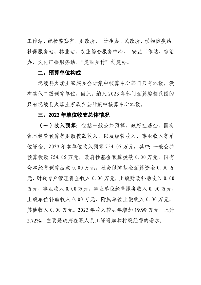2023年沅陵县火场土家族乡会计集中核算中心预算公开