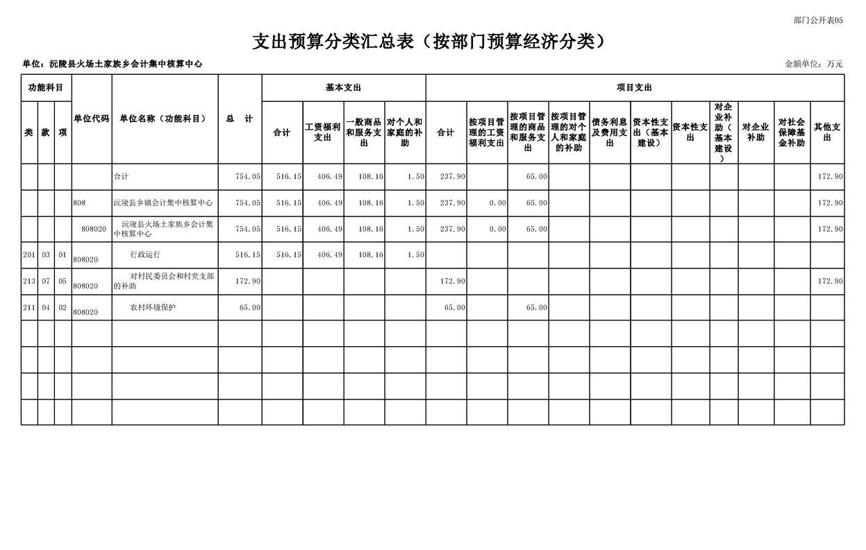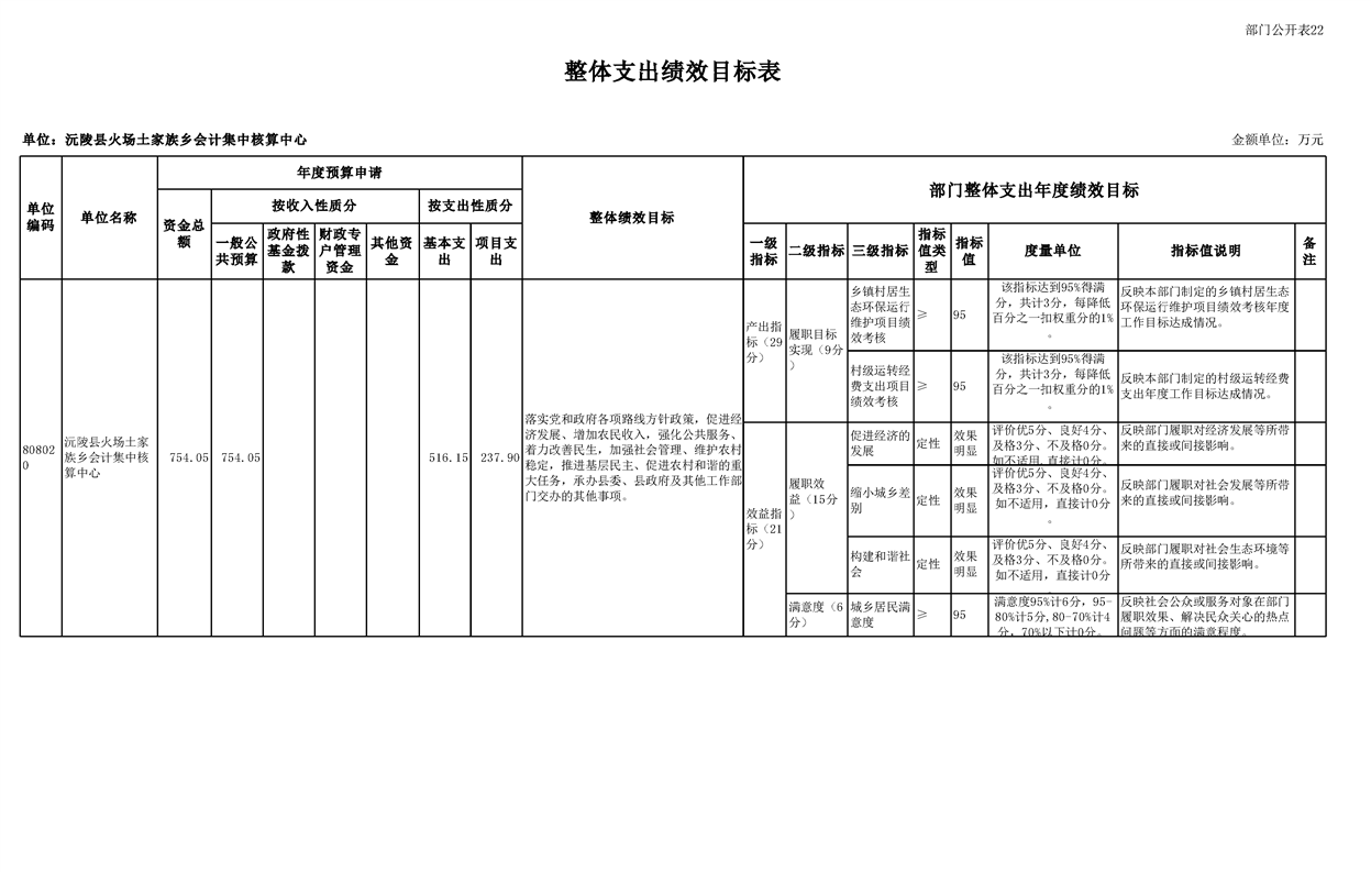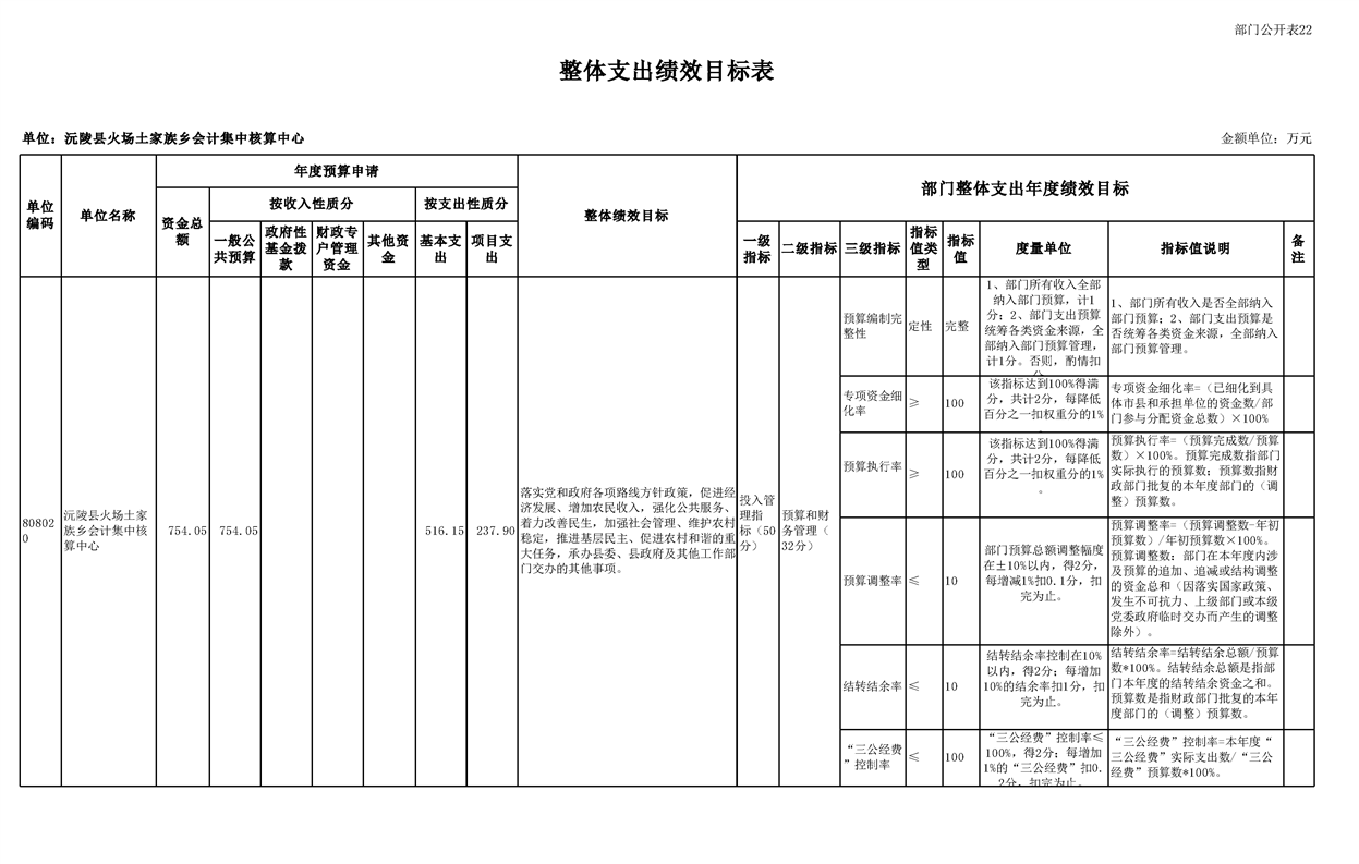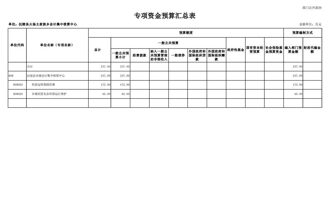 2023年沅陵县火场土家族乡会计集中核算中心预算公开