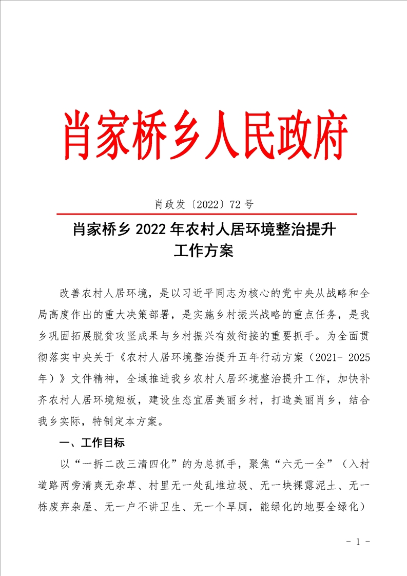 肖家桥乡2022年农村人居环境整治提升工作方案