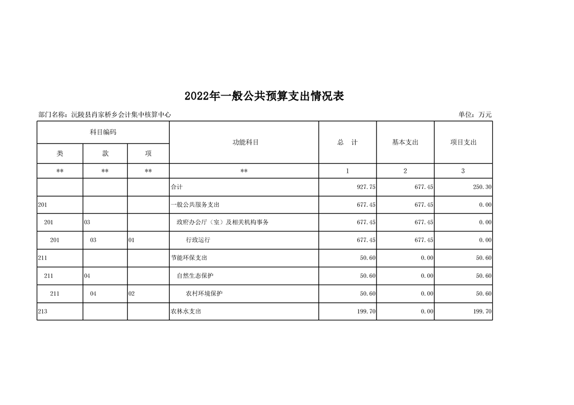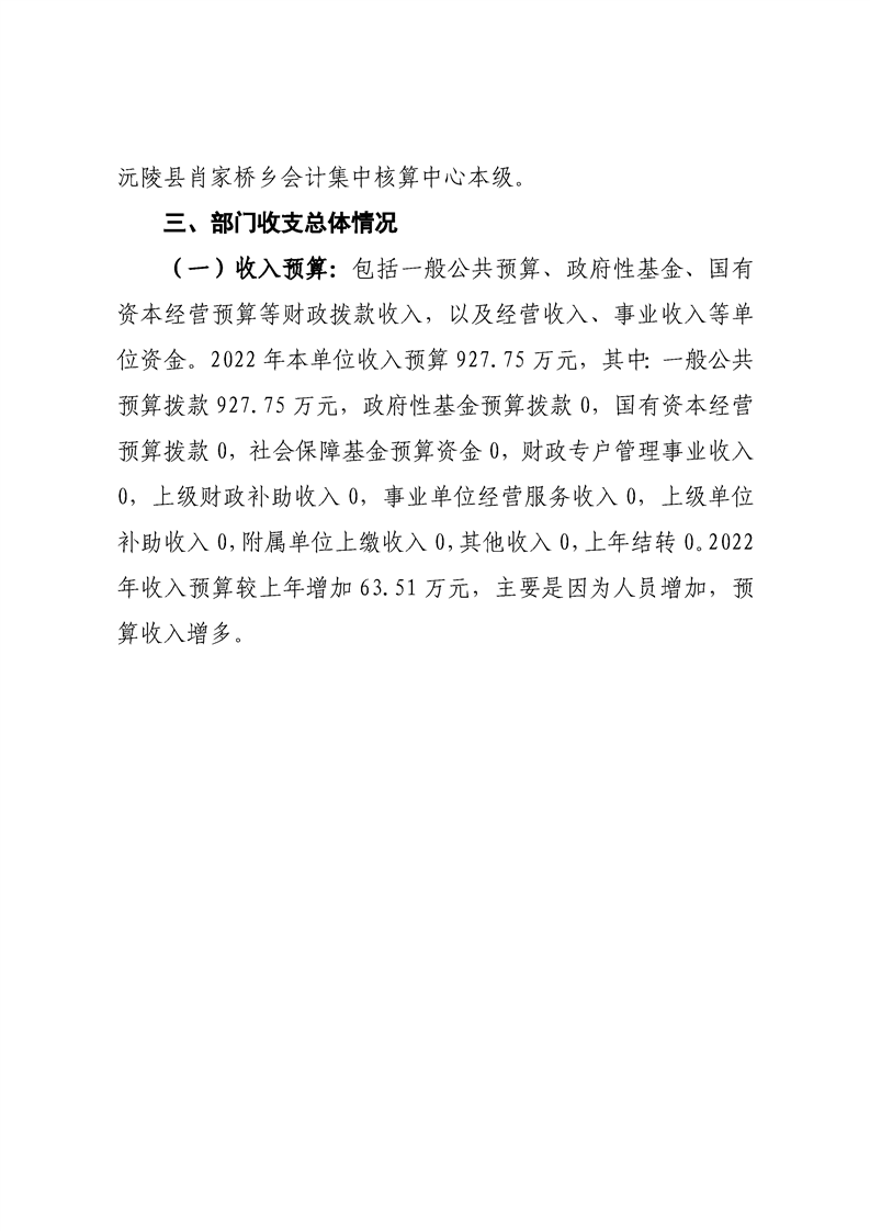 2022年沅陵县肖家桥乡会计集中核算中心预算公开