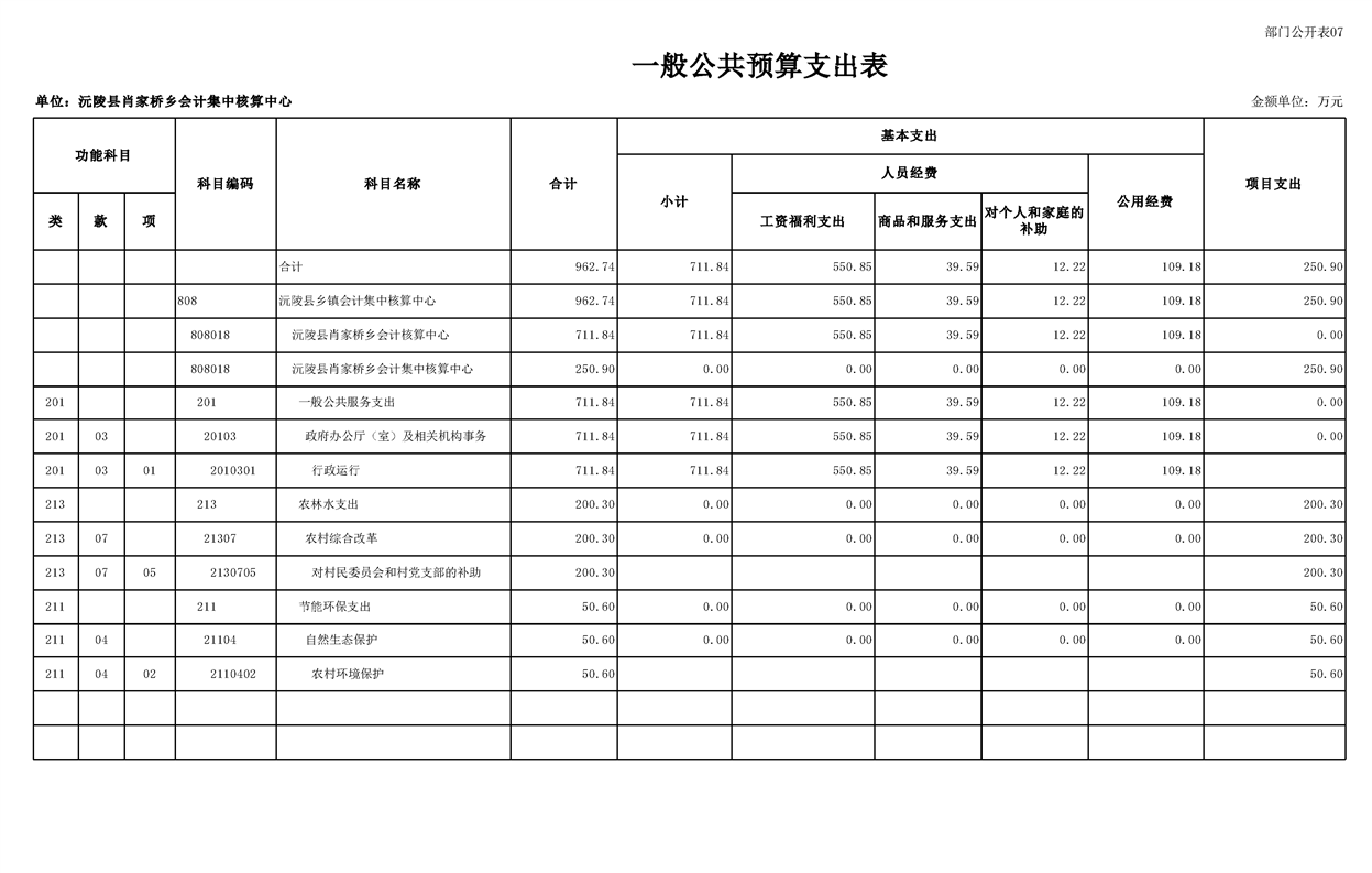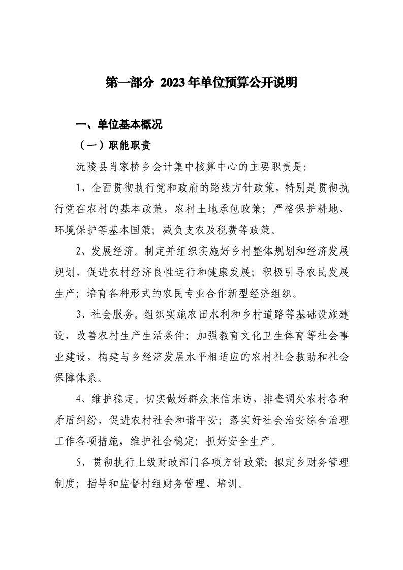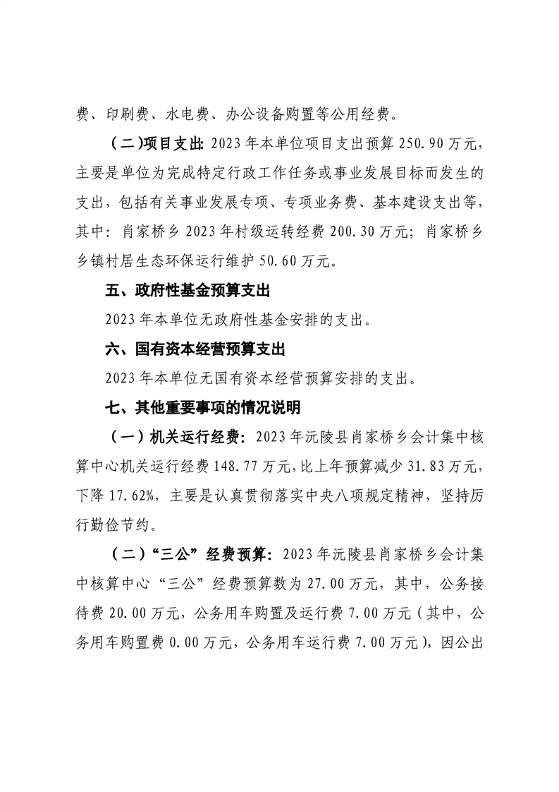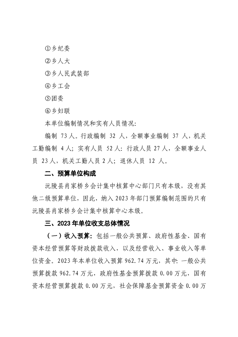 2023年沅陵县肖家桥乡会计集中核算中心预算公开