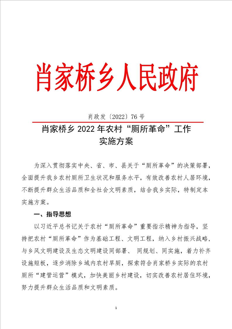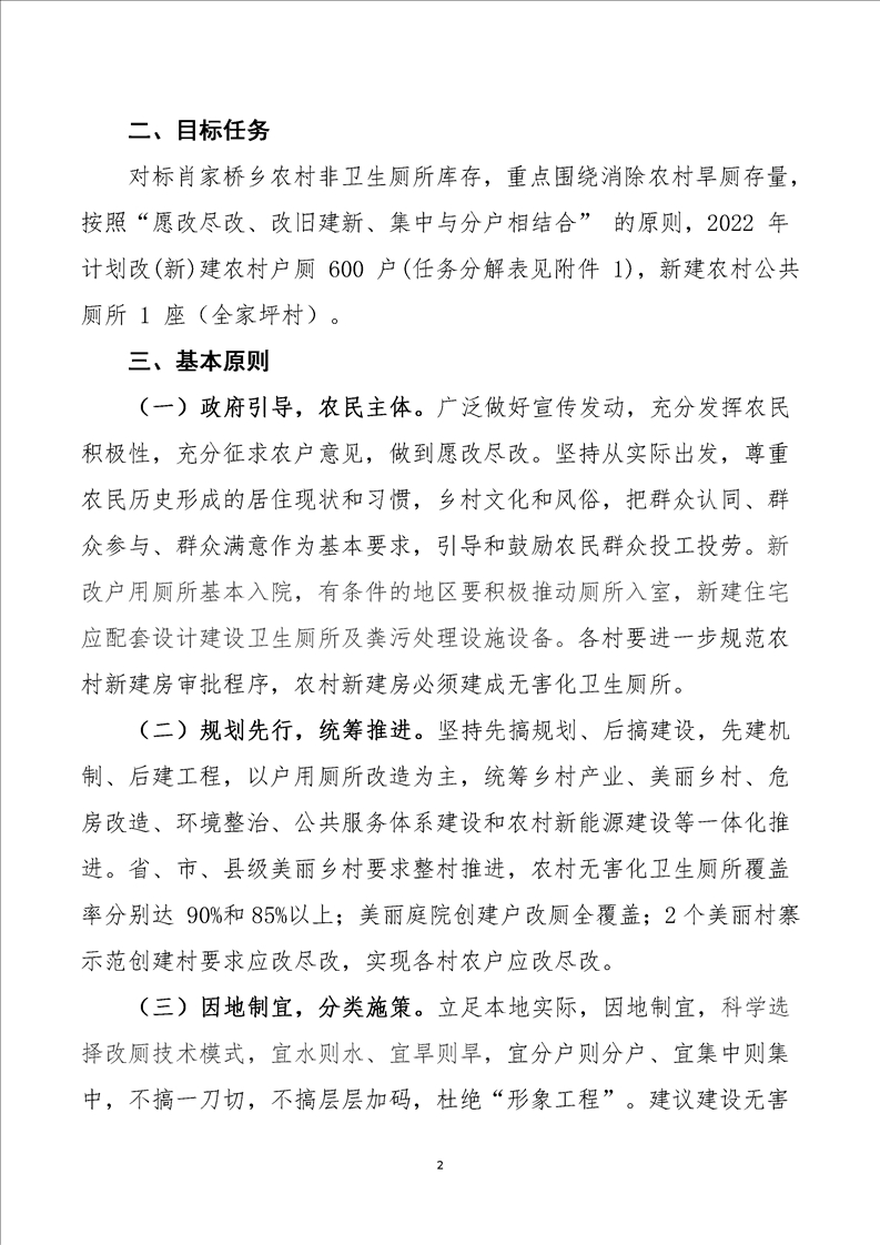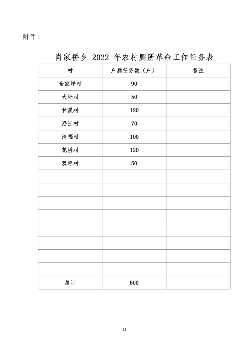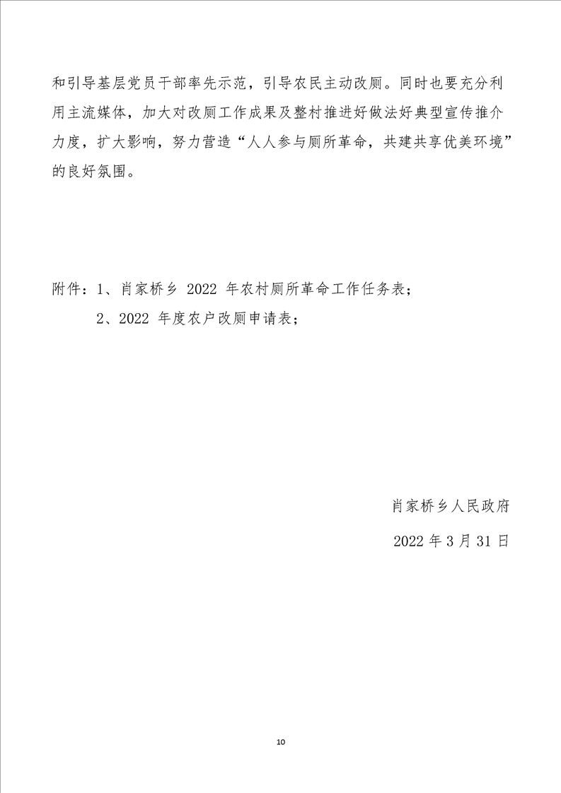 肖家桥乡2022年农村“厕所革命”工作实施方案