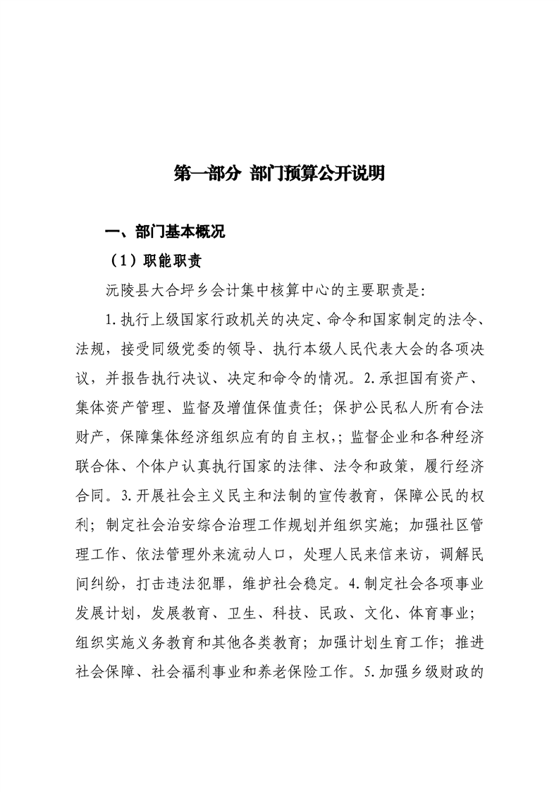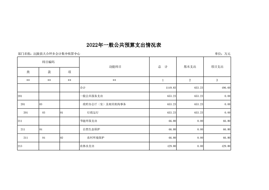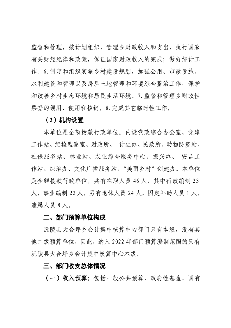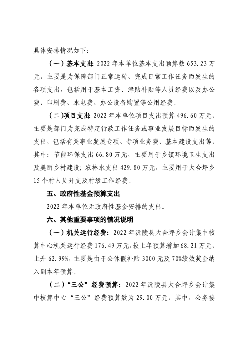 2022年沅陵县大合坪乡会计集中核算中心预算公开