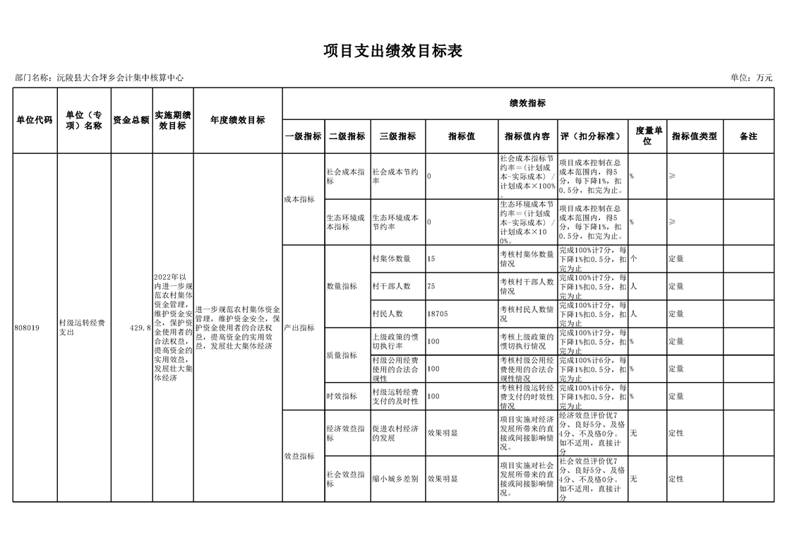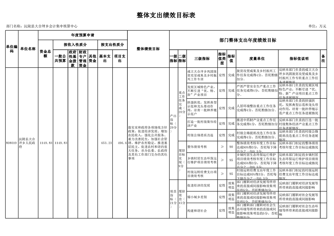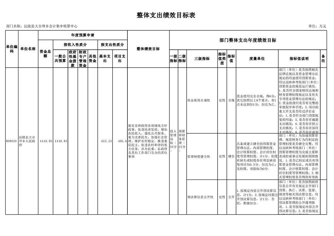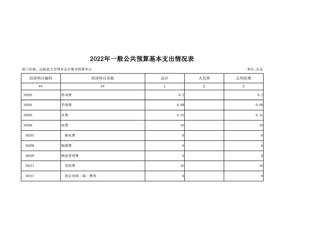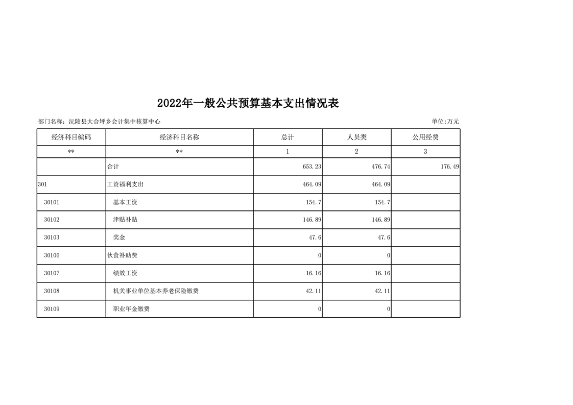 2022年沅陵县大合坪乡会计集中核算中心预算公开