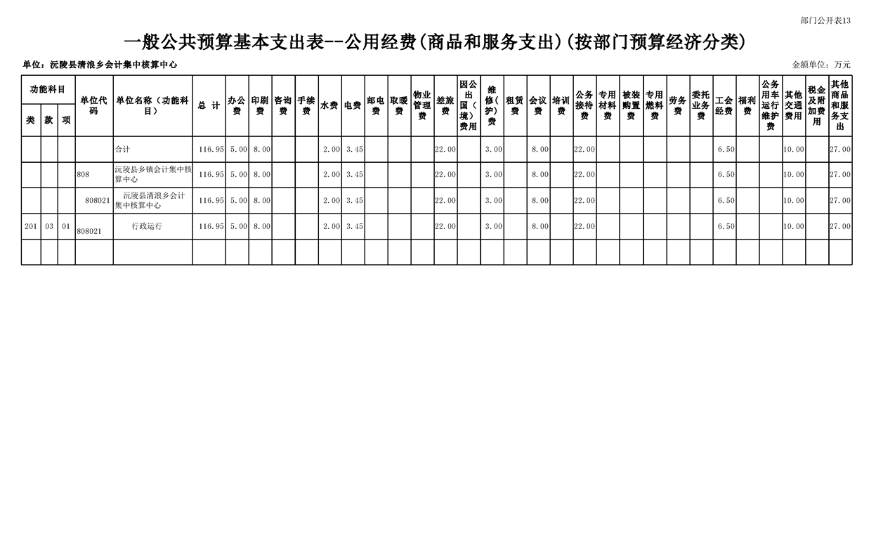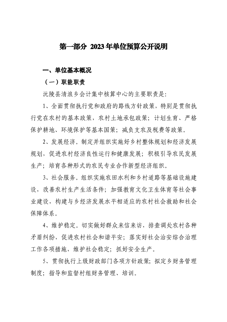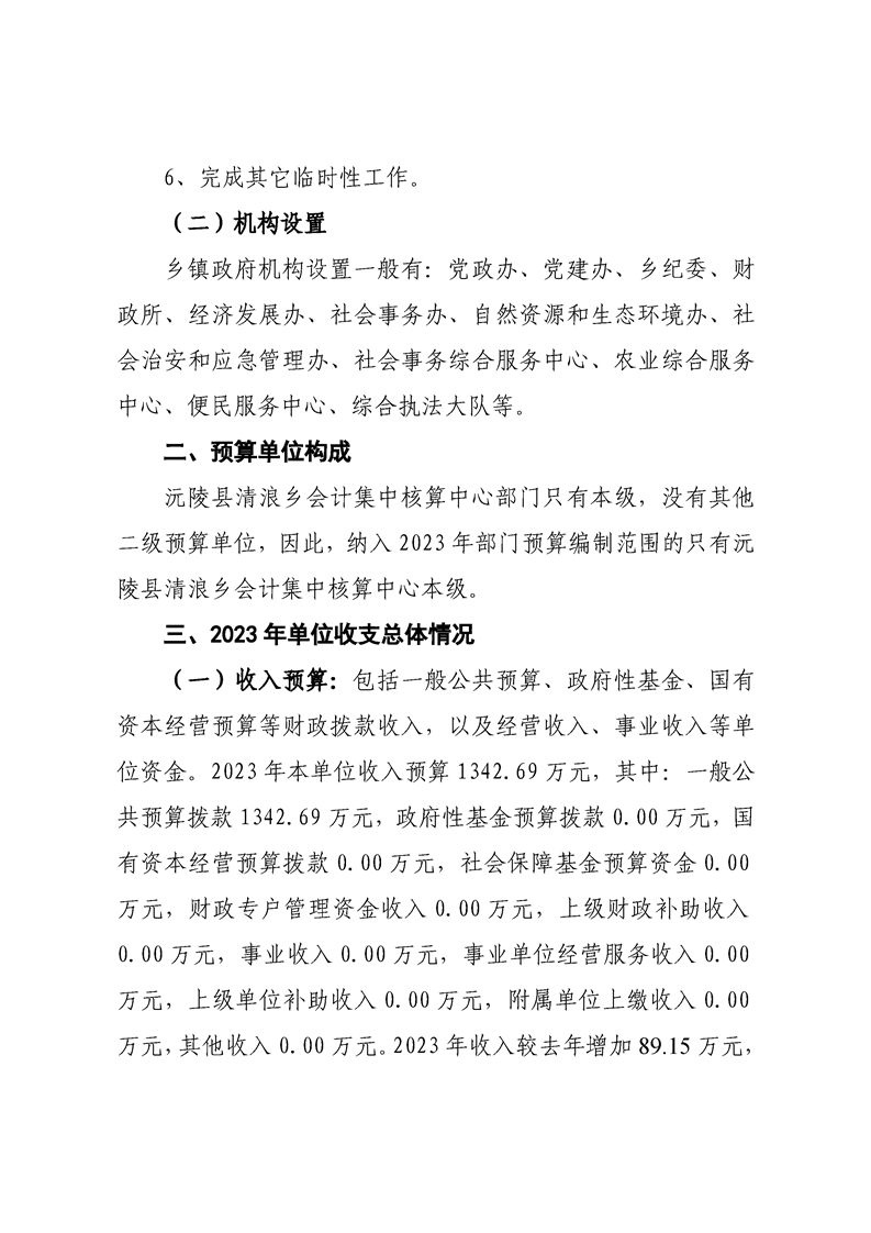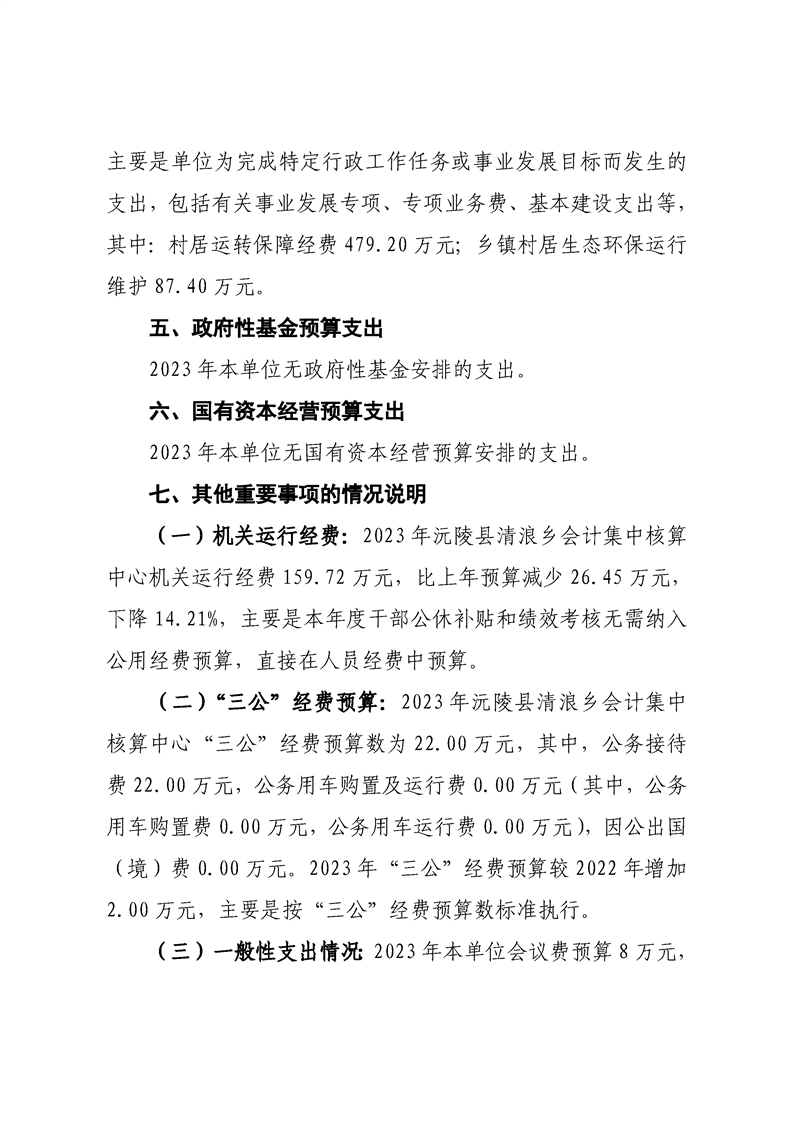2023年沅陵县清浪乡会计集中核算中心预算公开