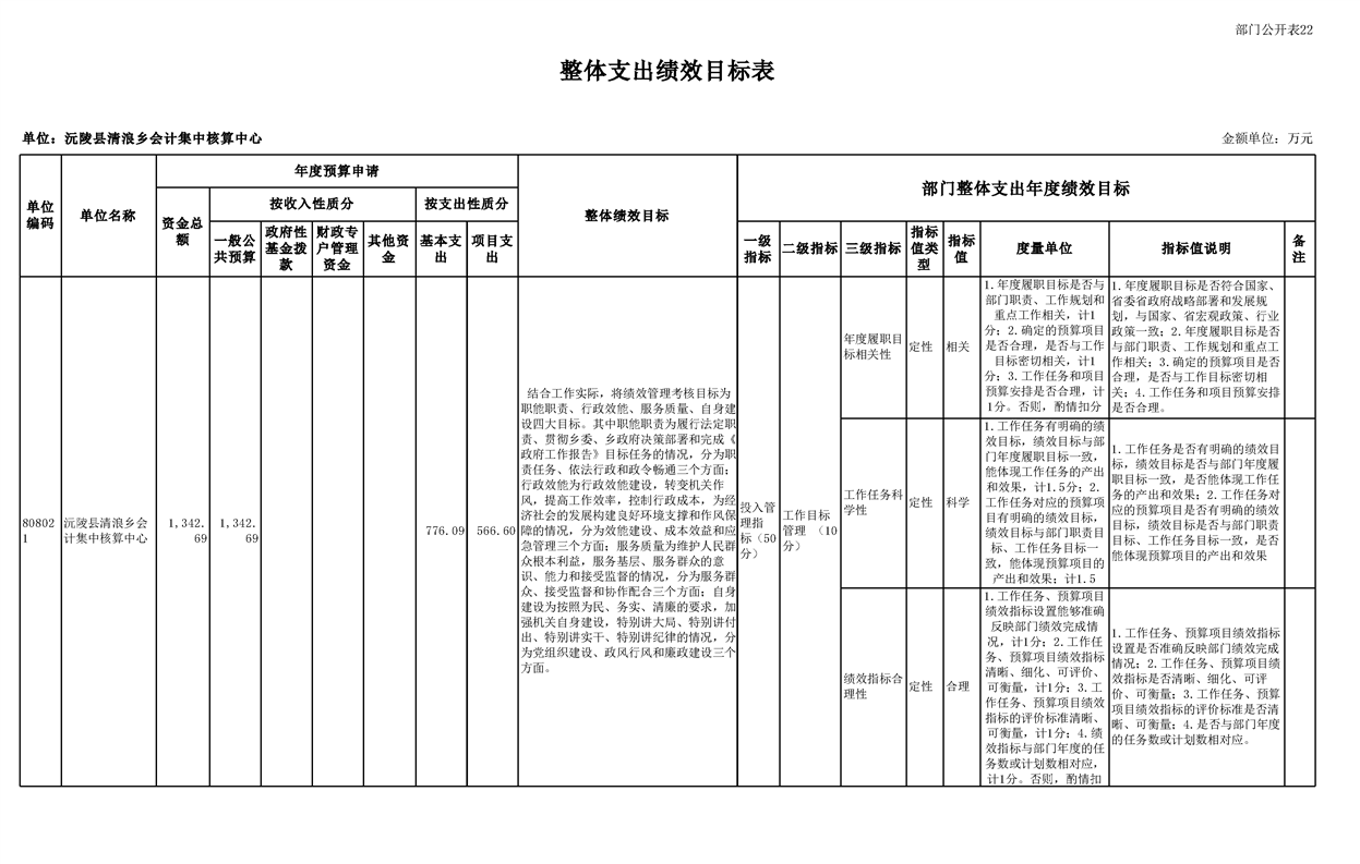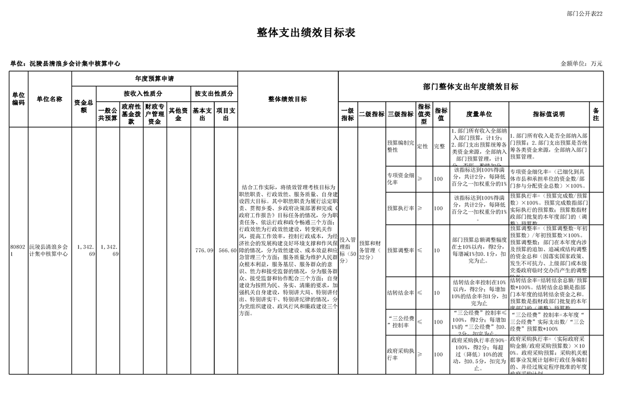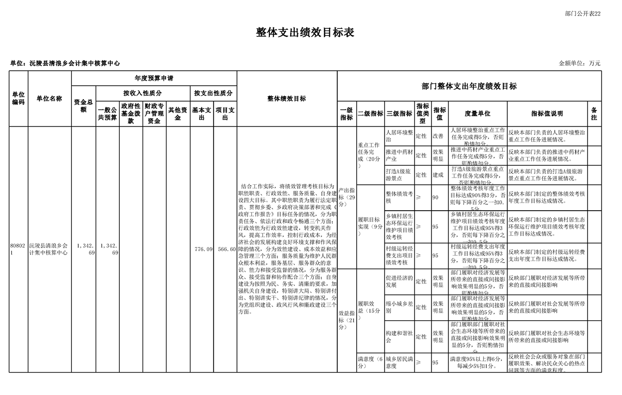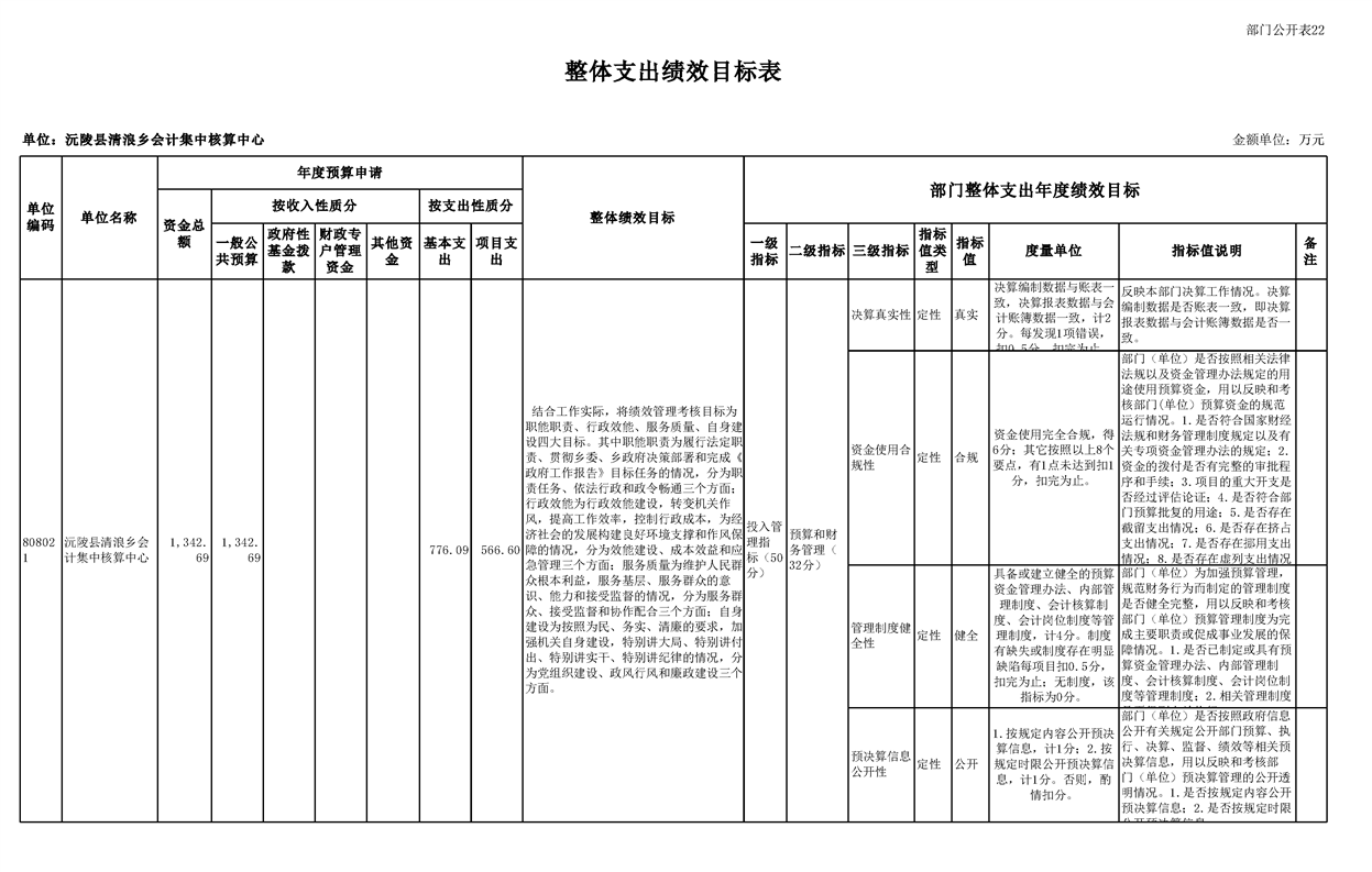 2023年沅陵县清浪乡会计集中核算中心预算公开
