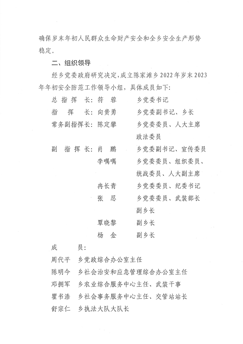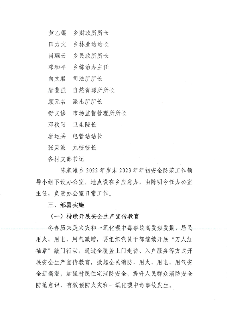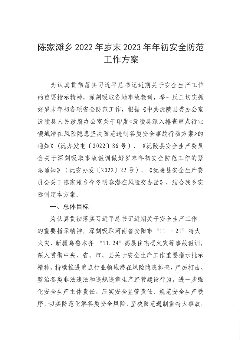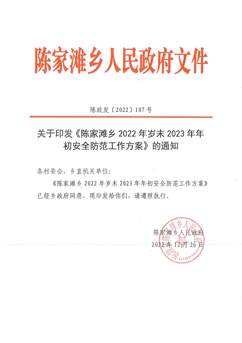 关于印发《陈家滩乡2022年岁末2023年年初安全防范工作方案》的通知