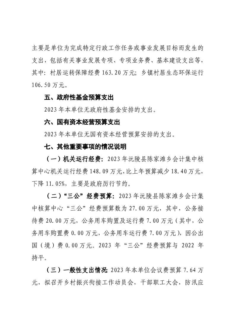 2023年沅陵县陈家滩乡会计集中核算中心预算公开