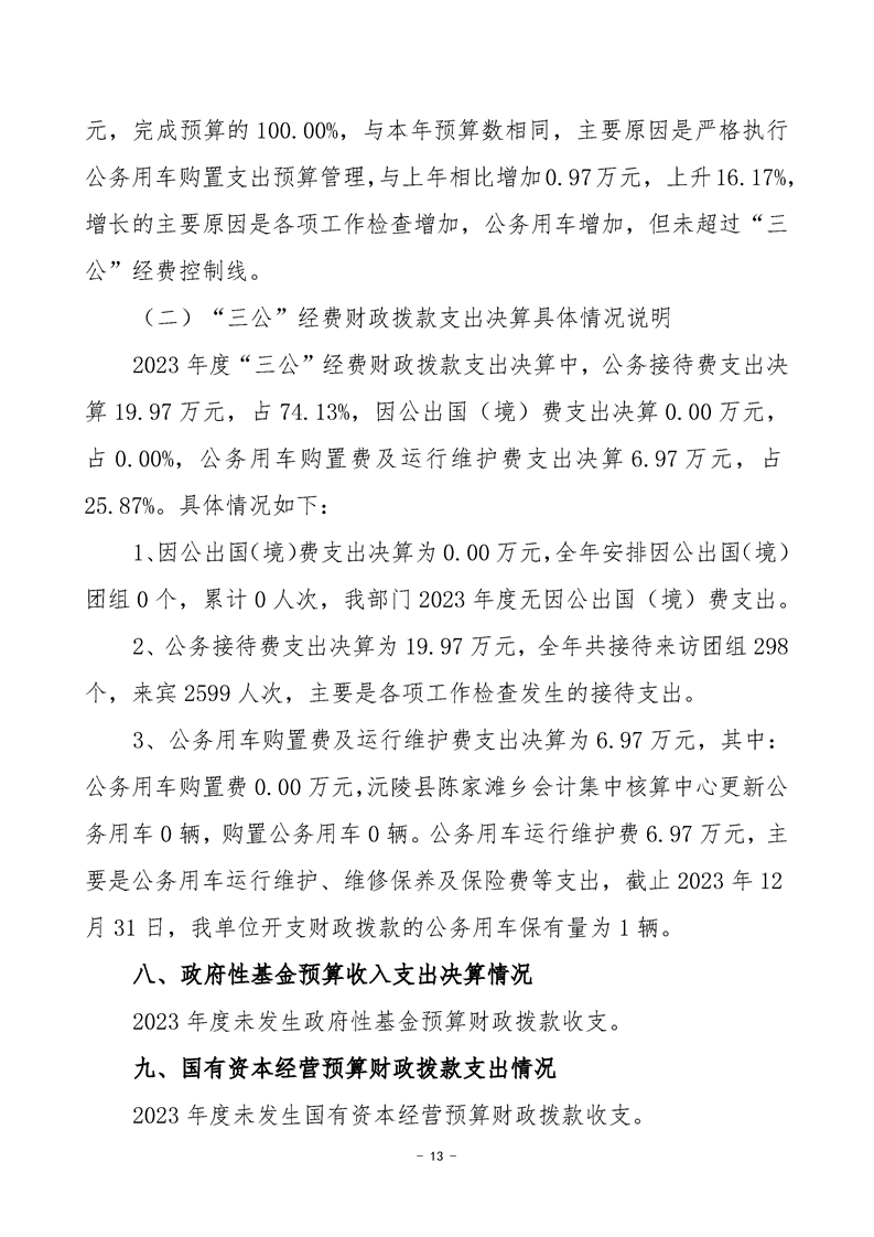 2023年度沅陵县陈家滩乡会计集中核算中心部门决算