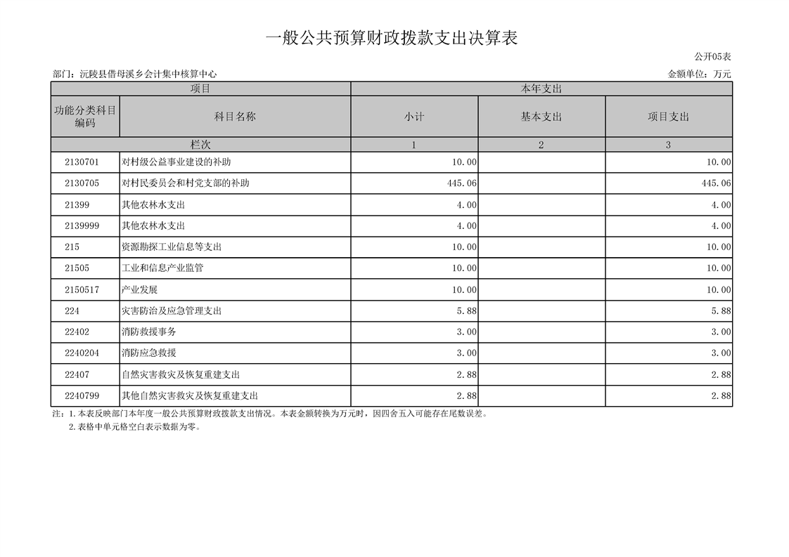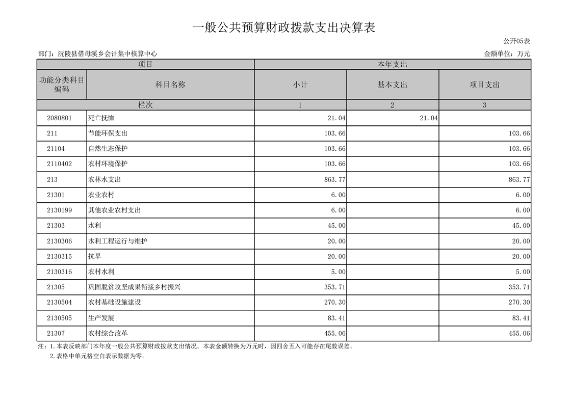 2023年度沅陵县借母溪乡会计集中核算中心部门决算