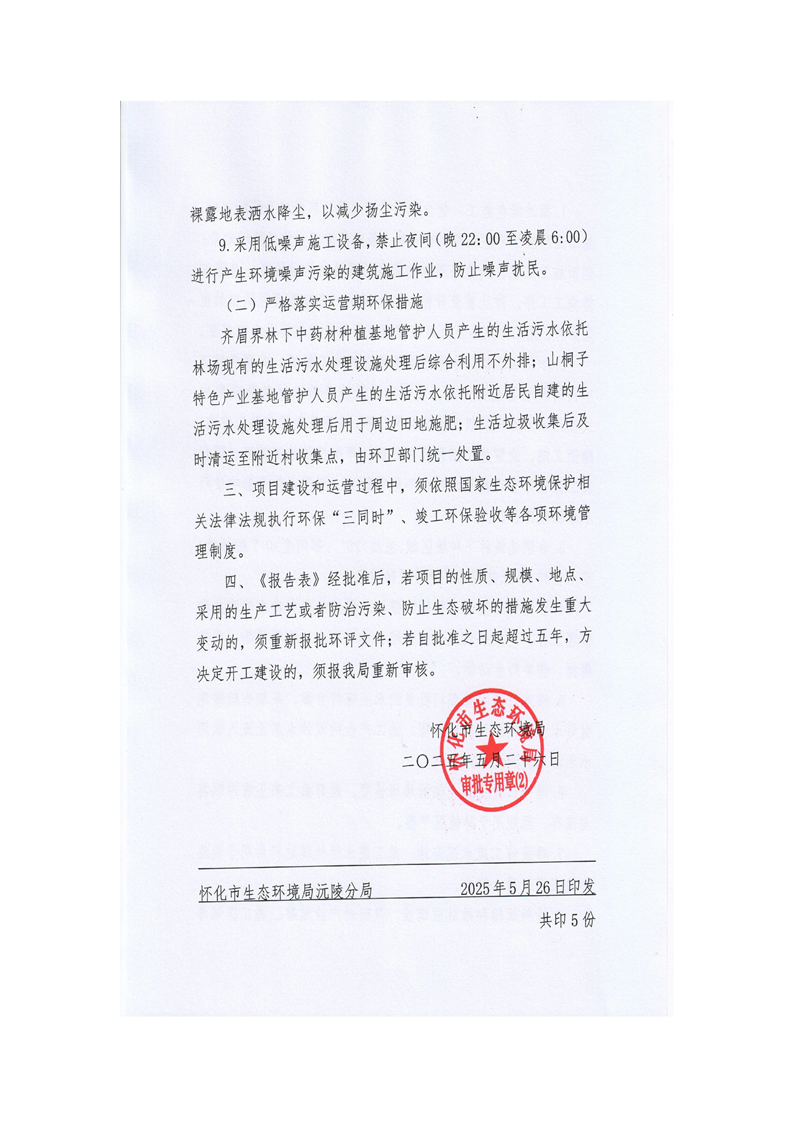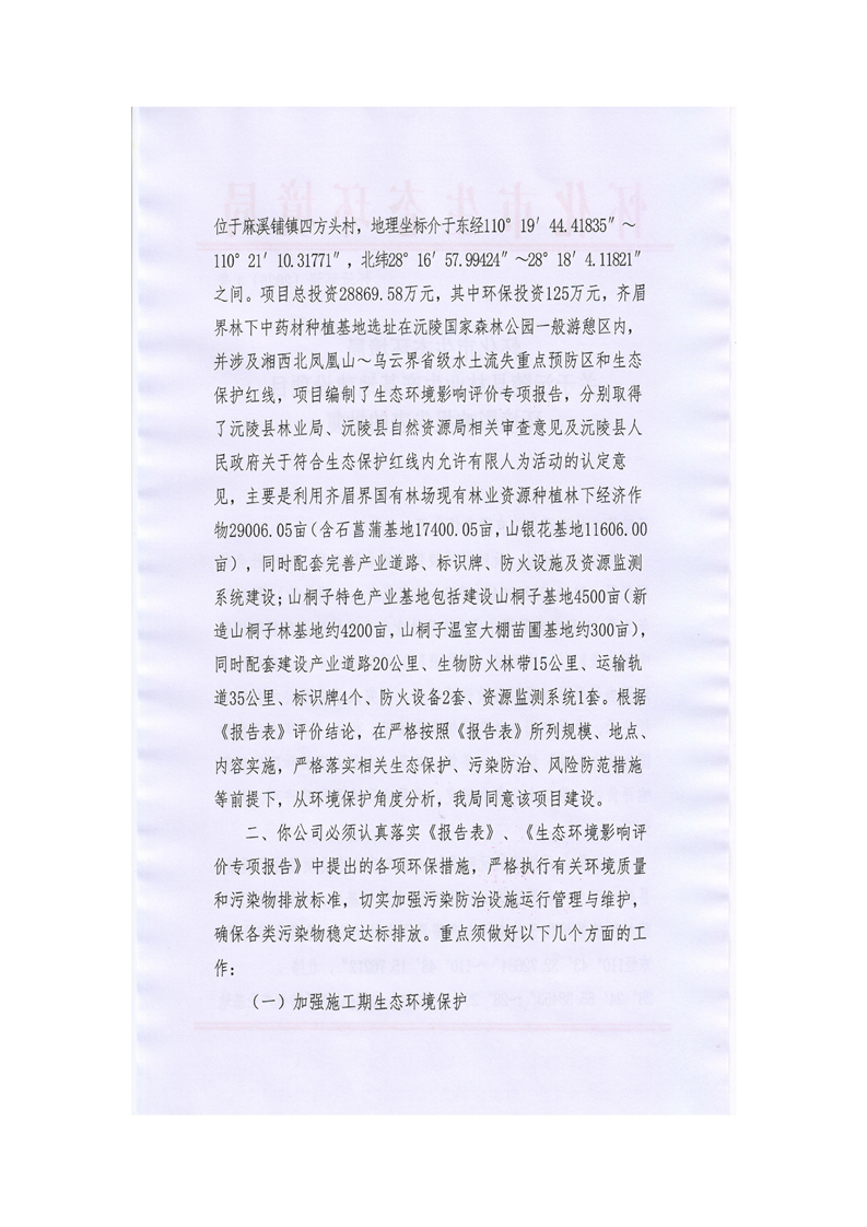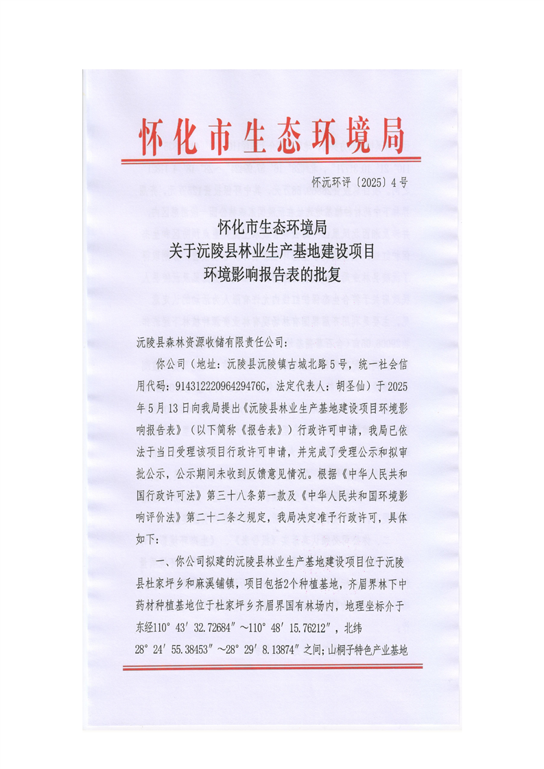 怀化市生态环境局关于沅陵县林业生产基地建设项目环境影响报告表的批复