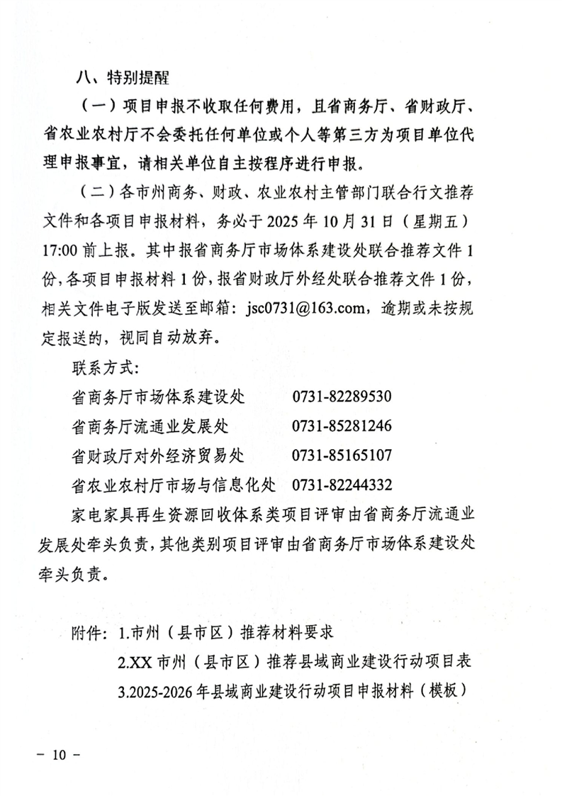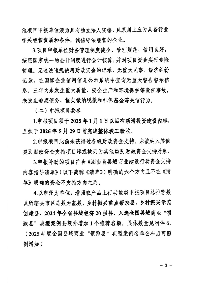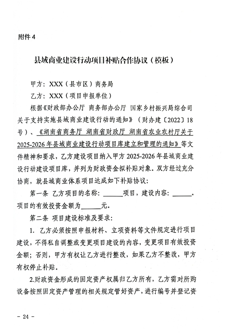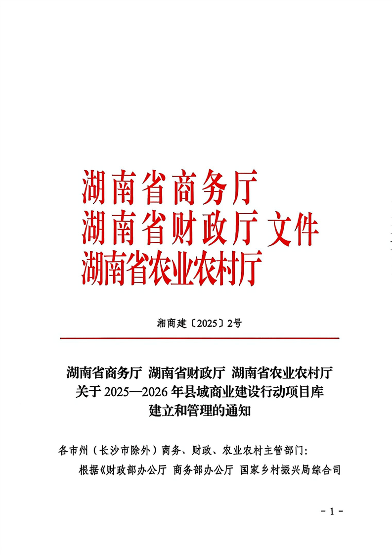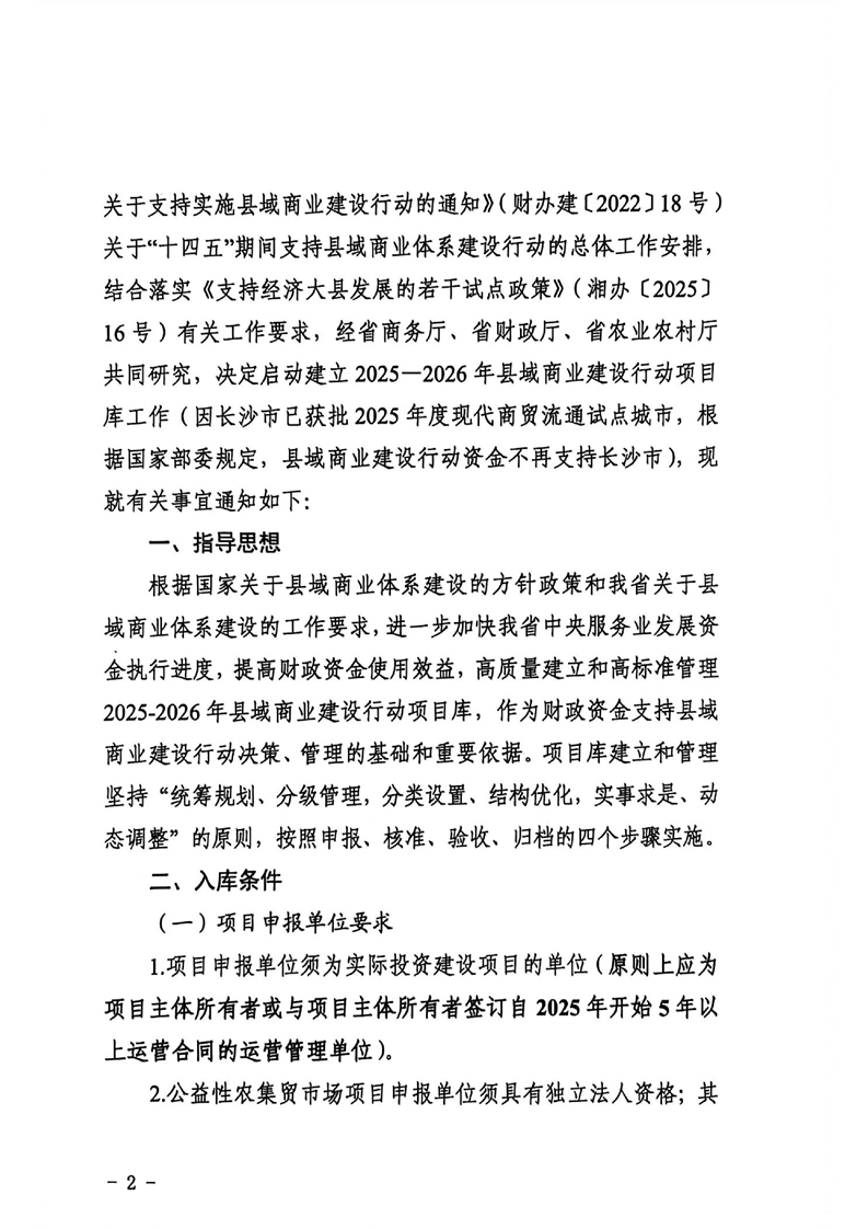 湖南省商务厅 湖南省财政厅 湖南省农业农村厅 关于2025—2026年县域商业建设行动项目库建立和管理的通知