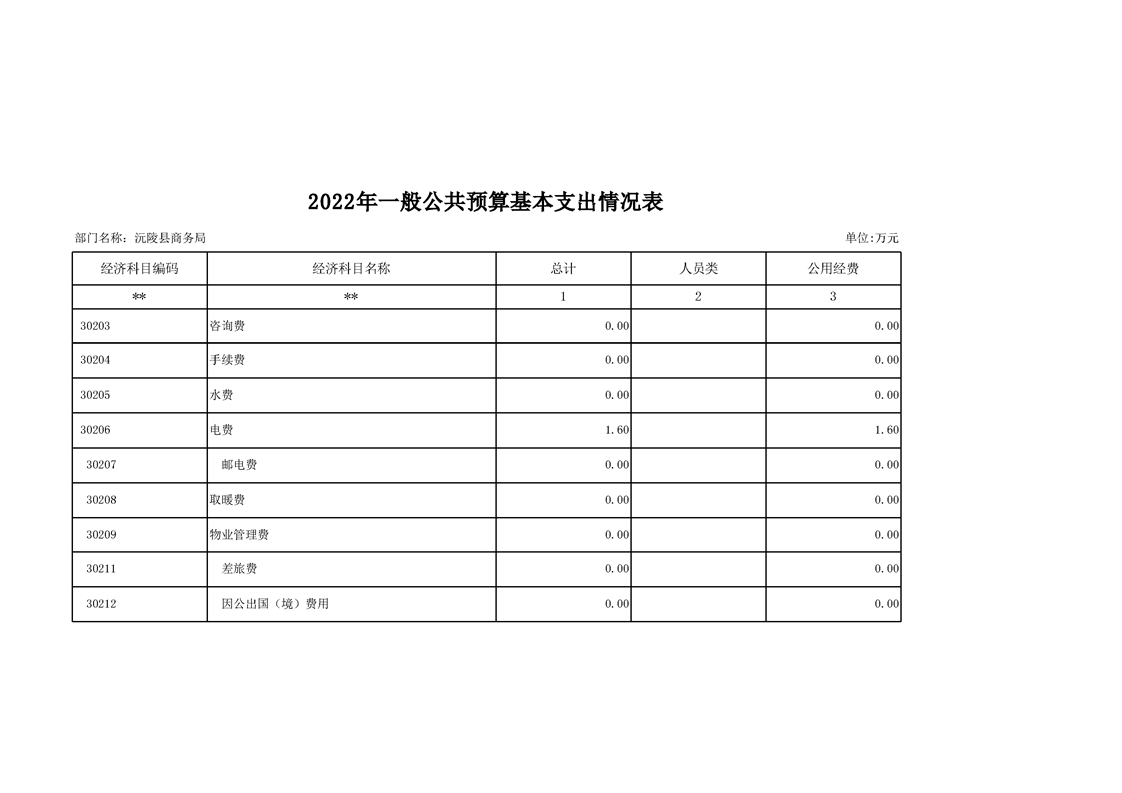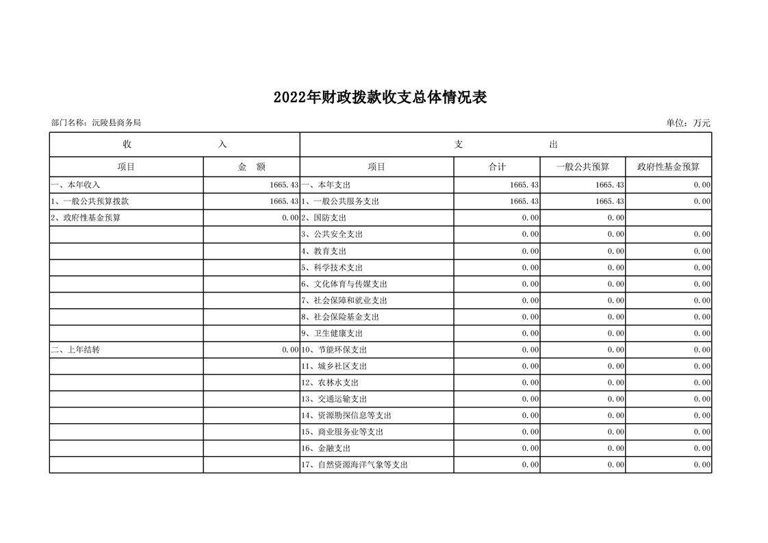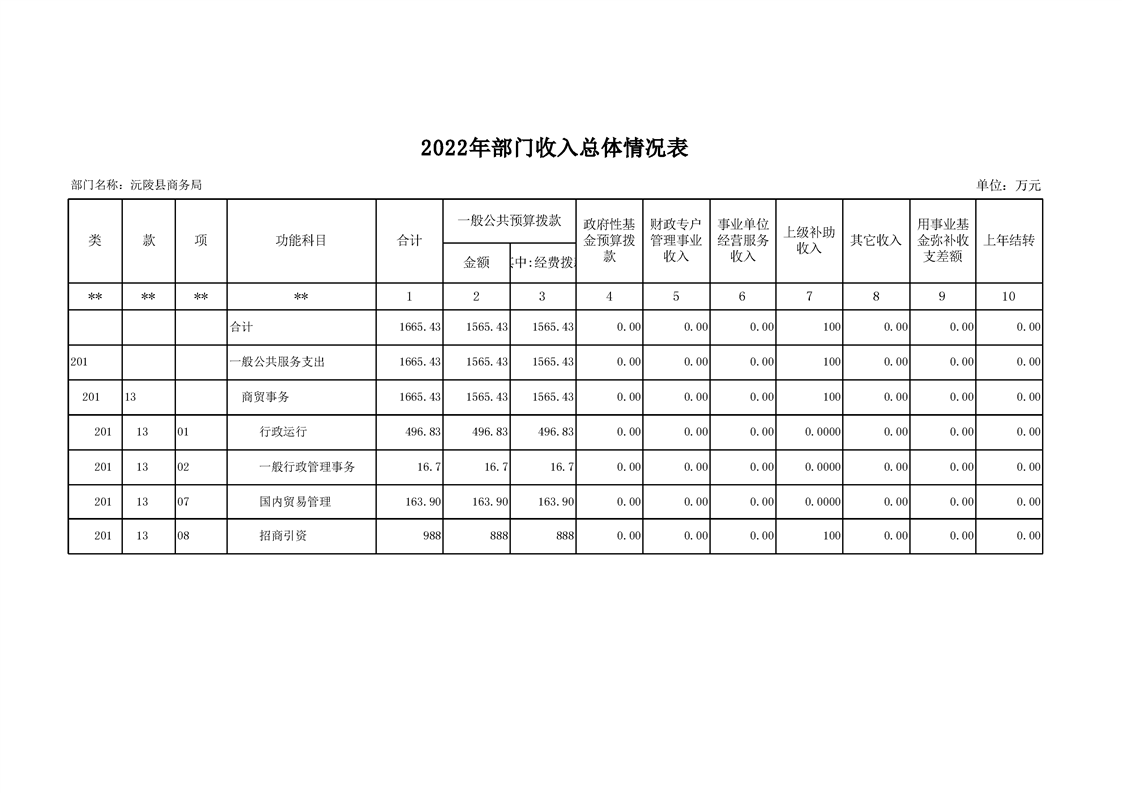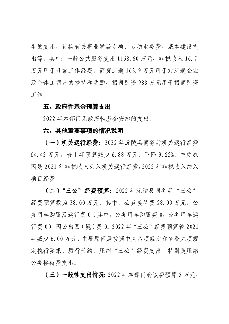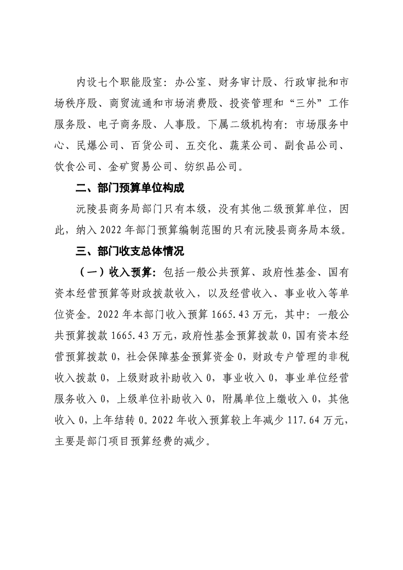 2022年沅陵县商务局预算公开