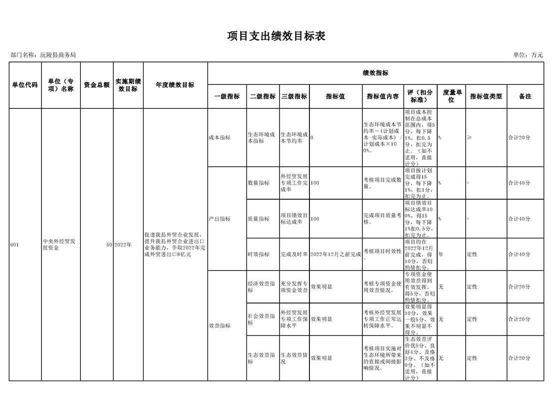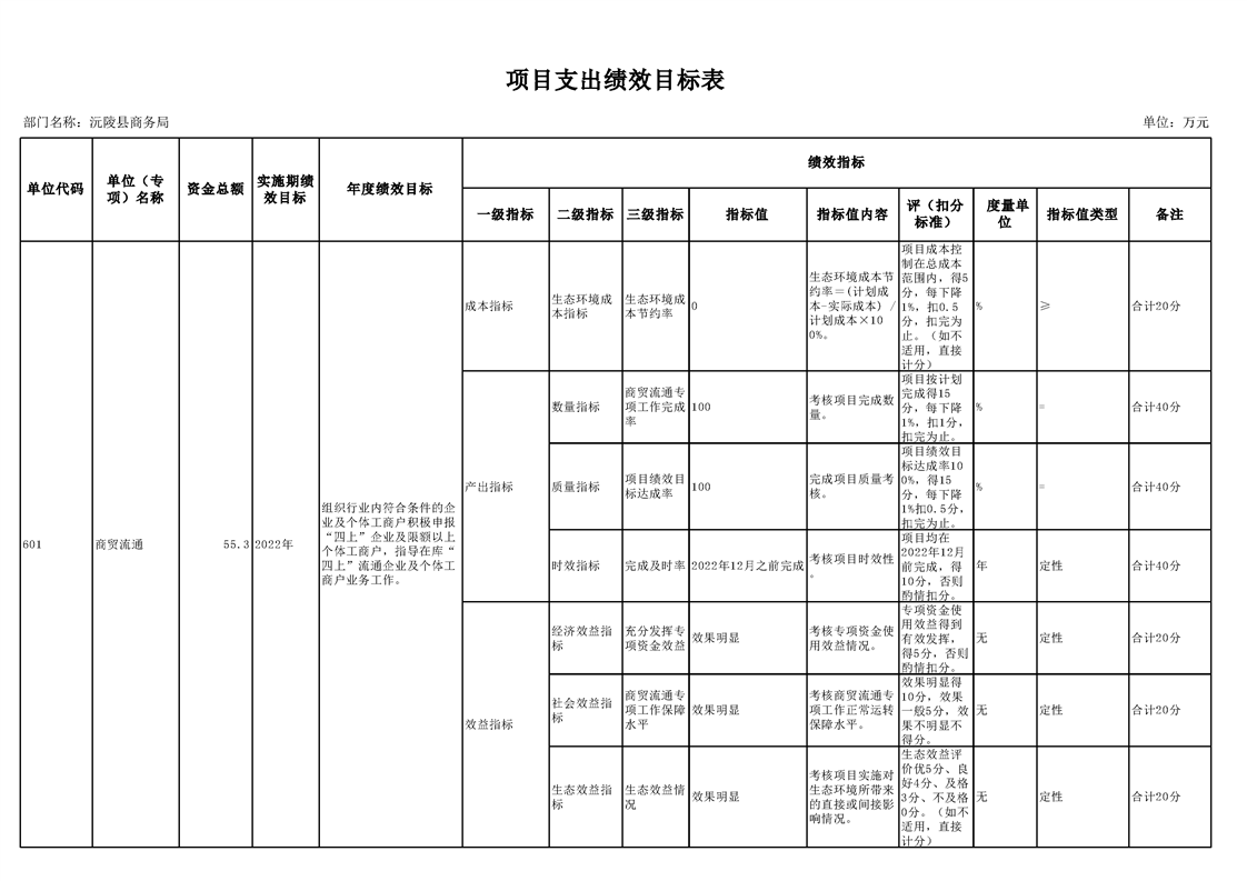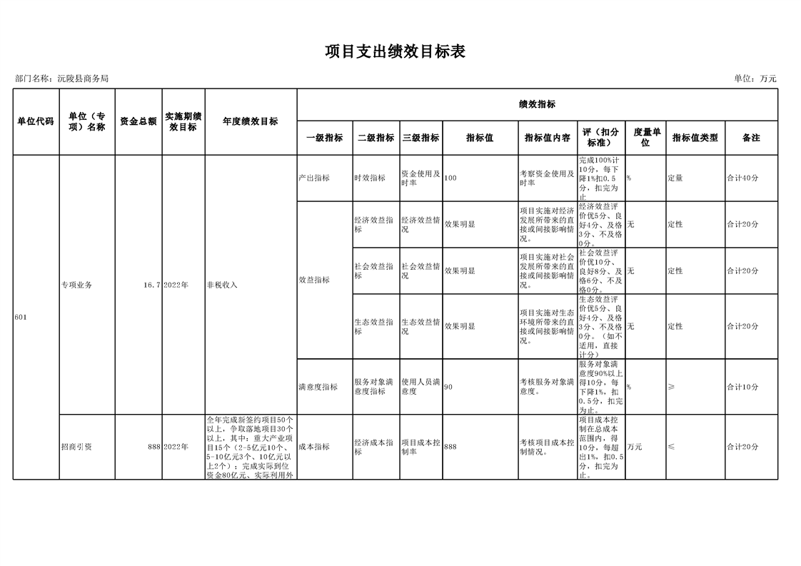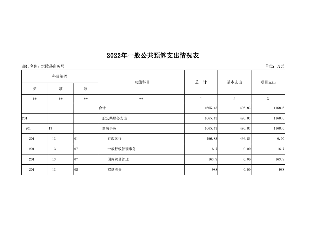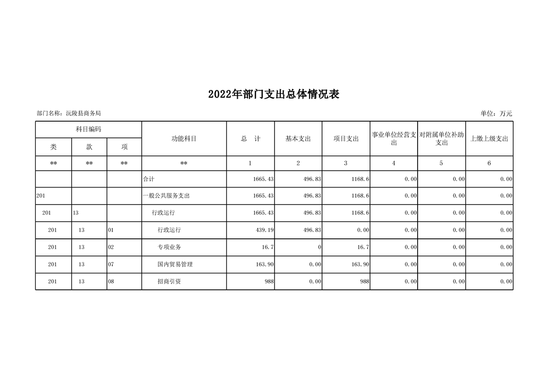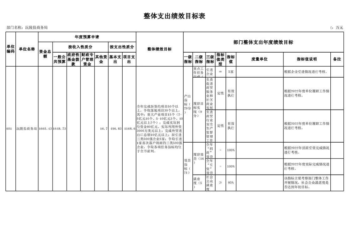 2022年沅陵县商务局预算公开
