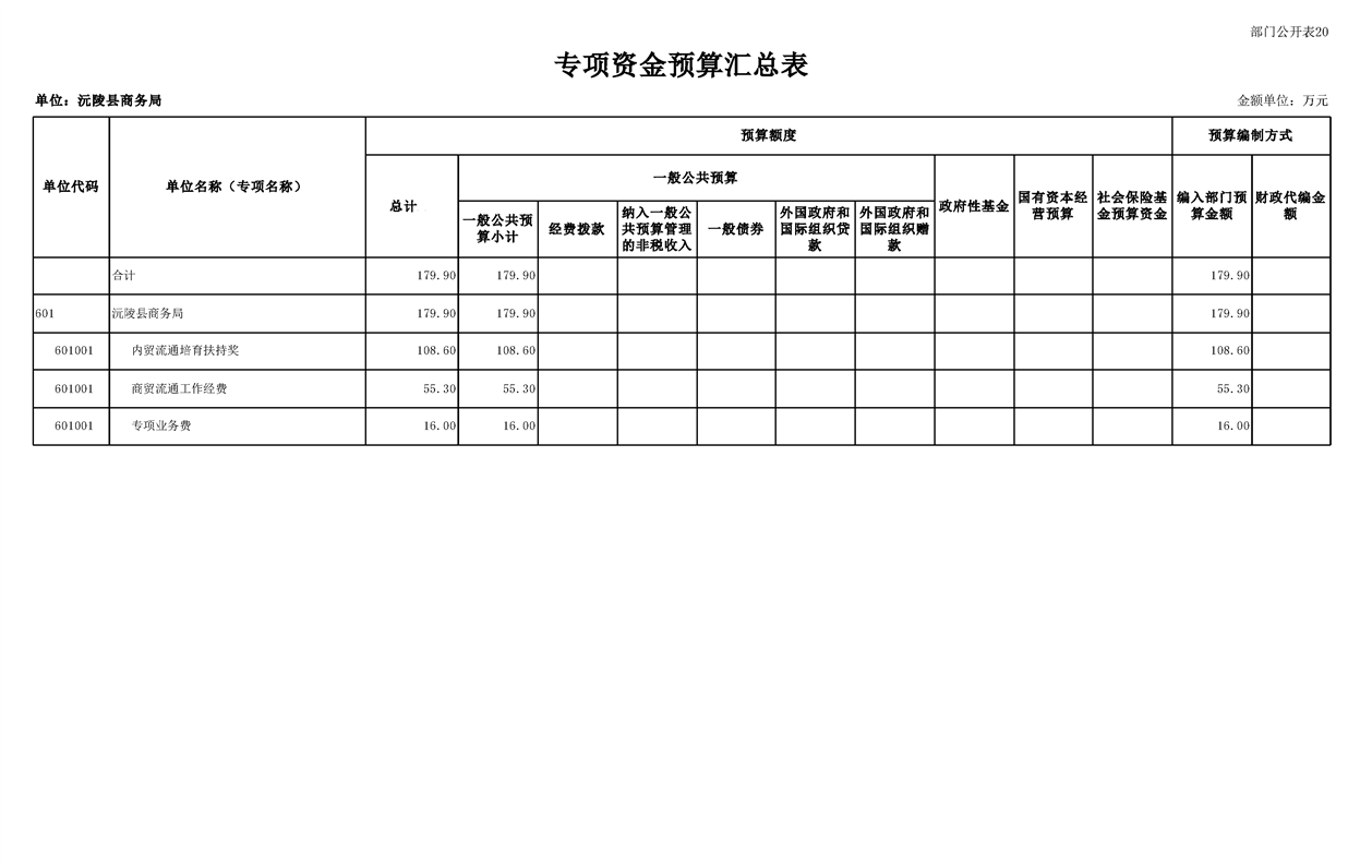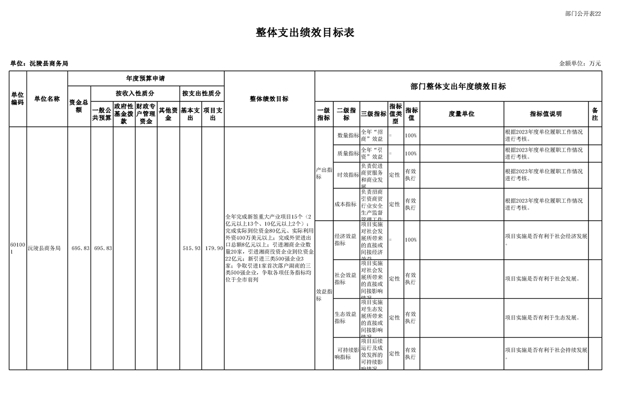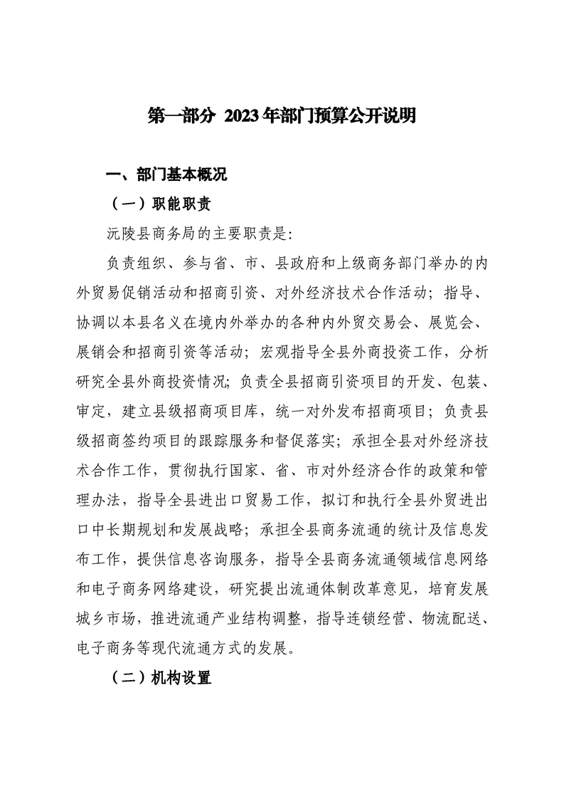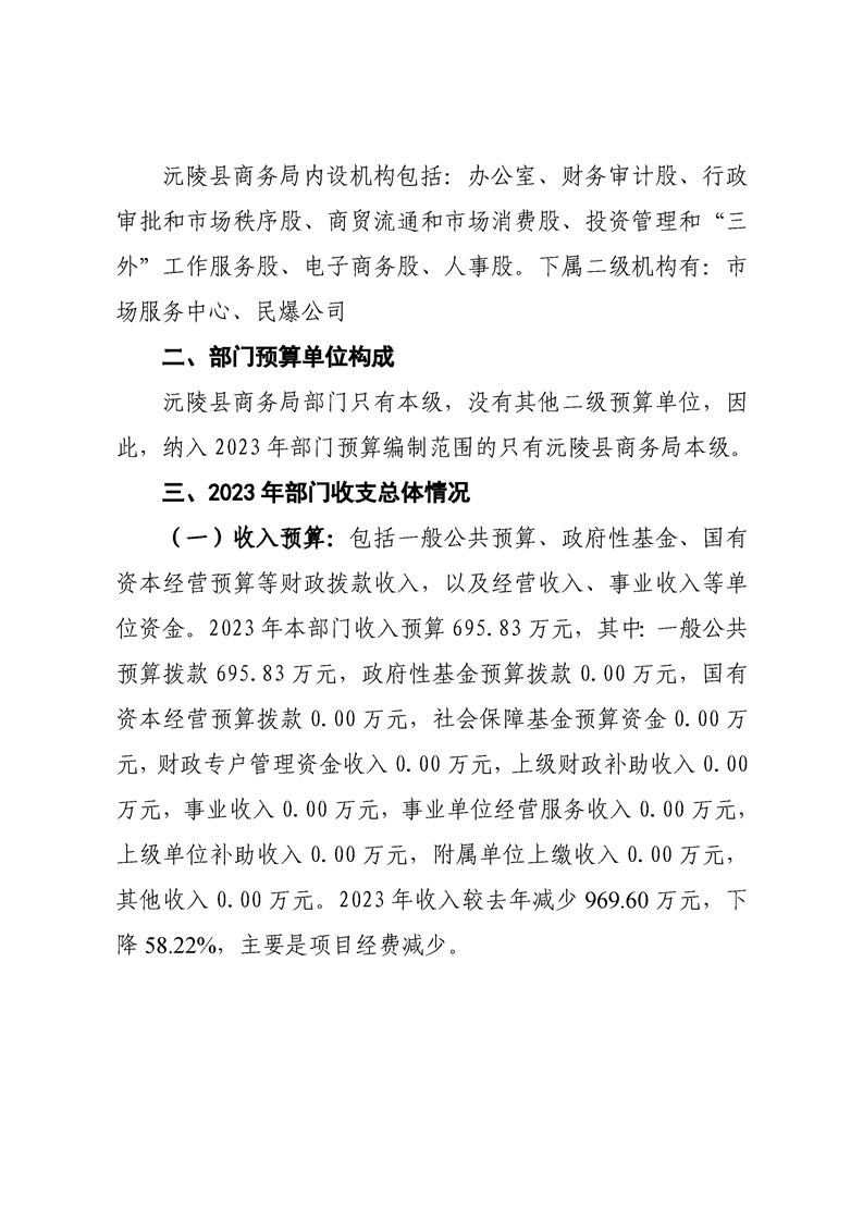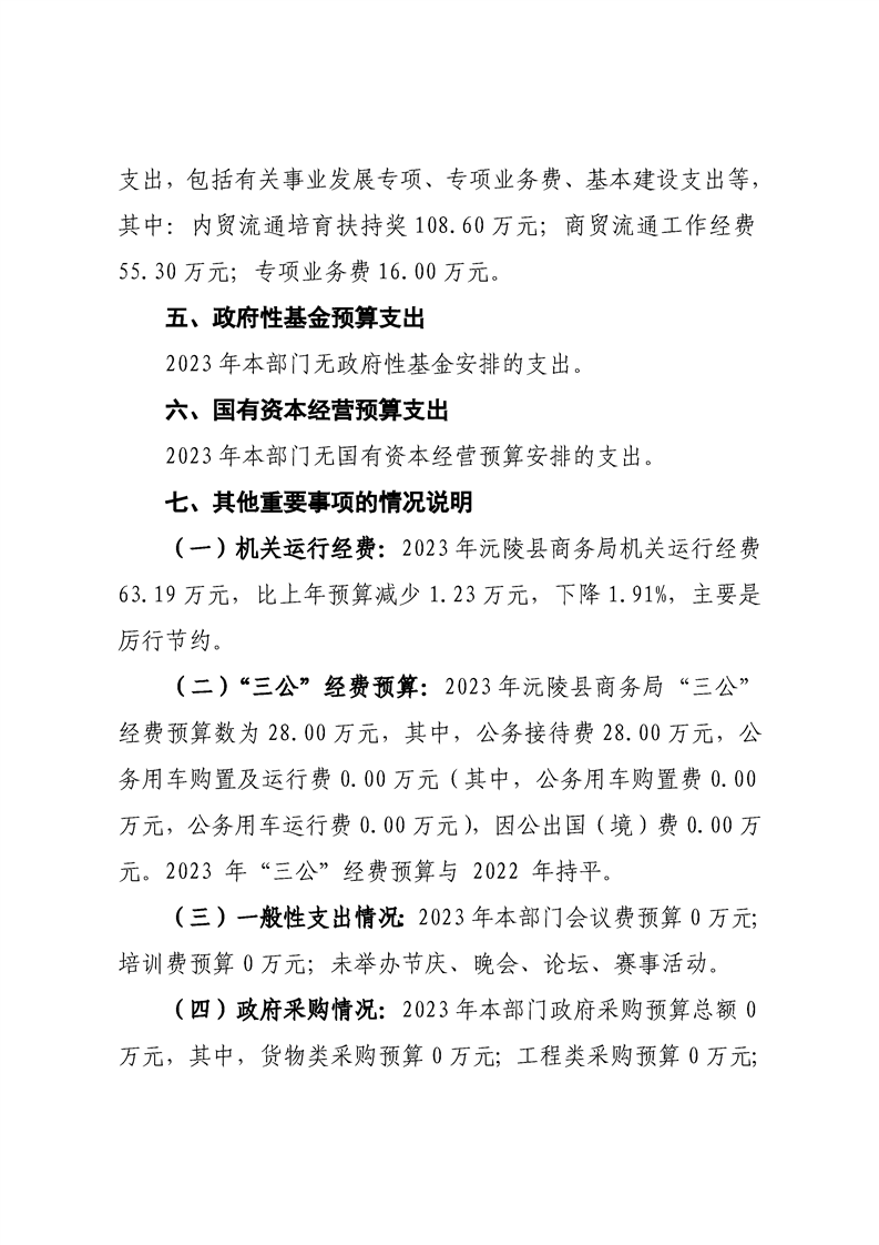 2023年沅陵县商务局预算公开