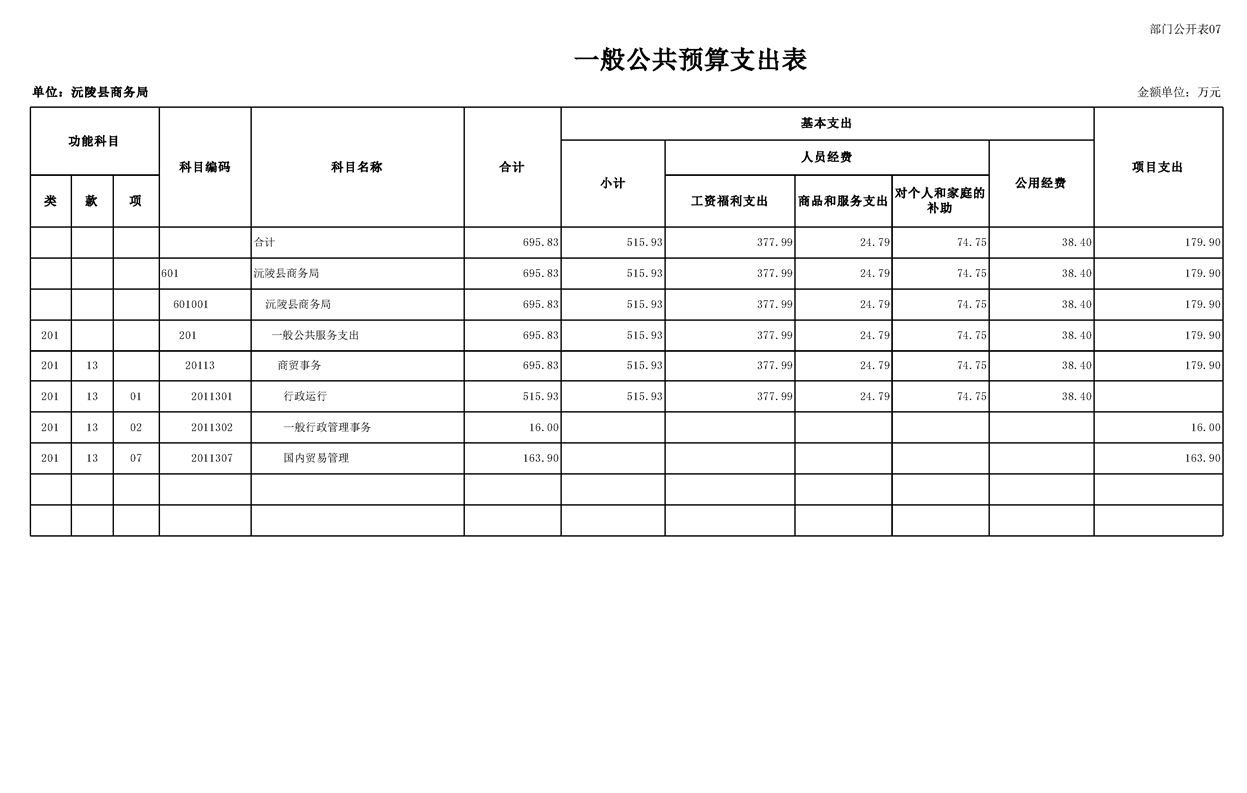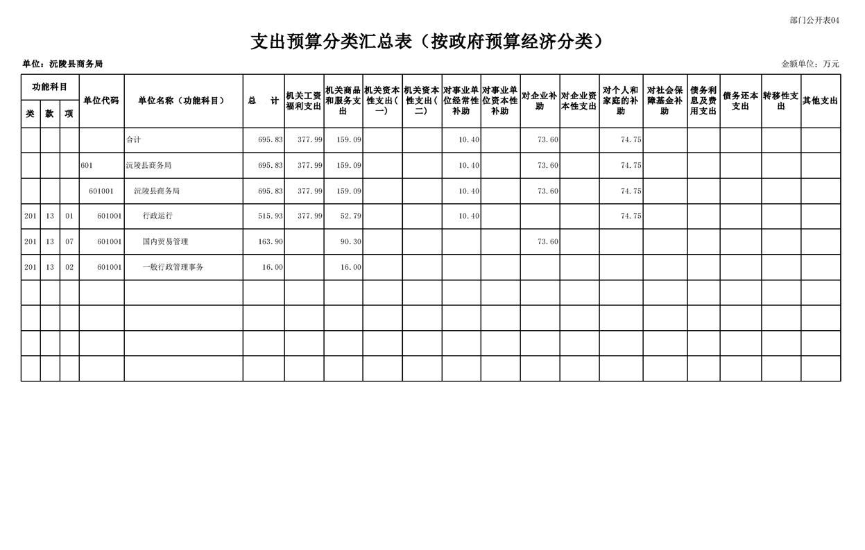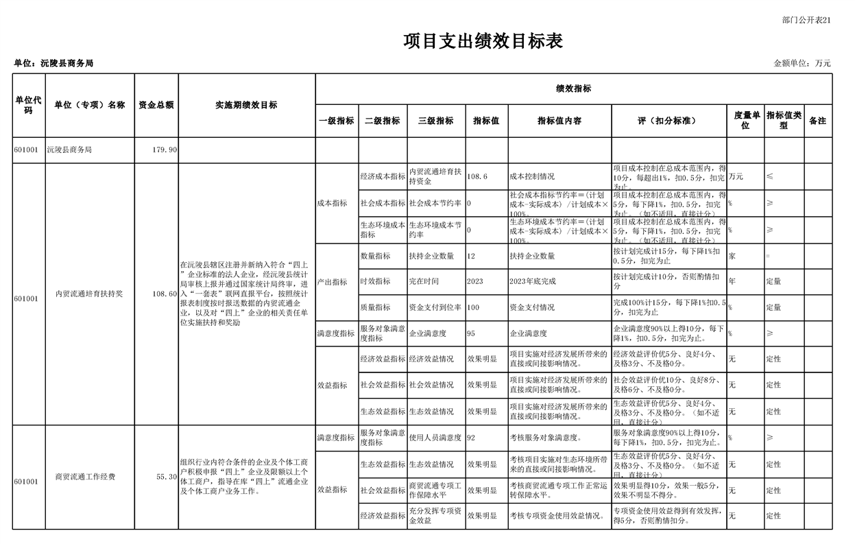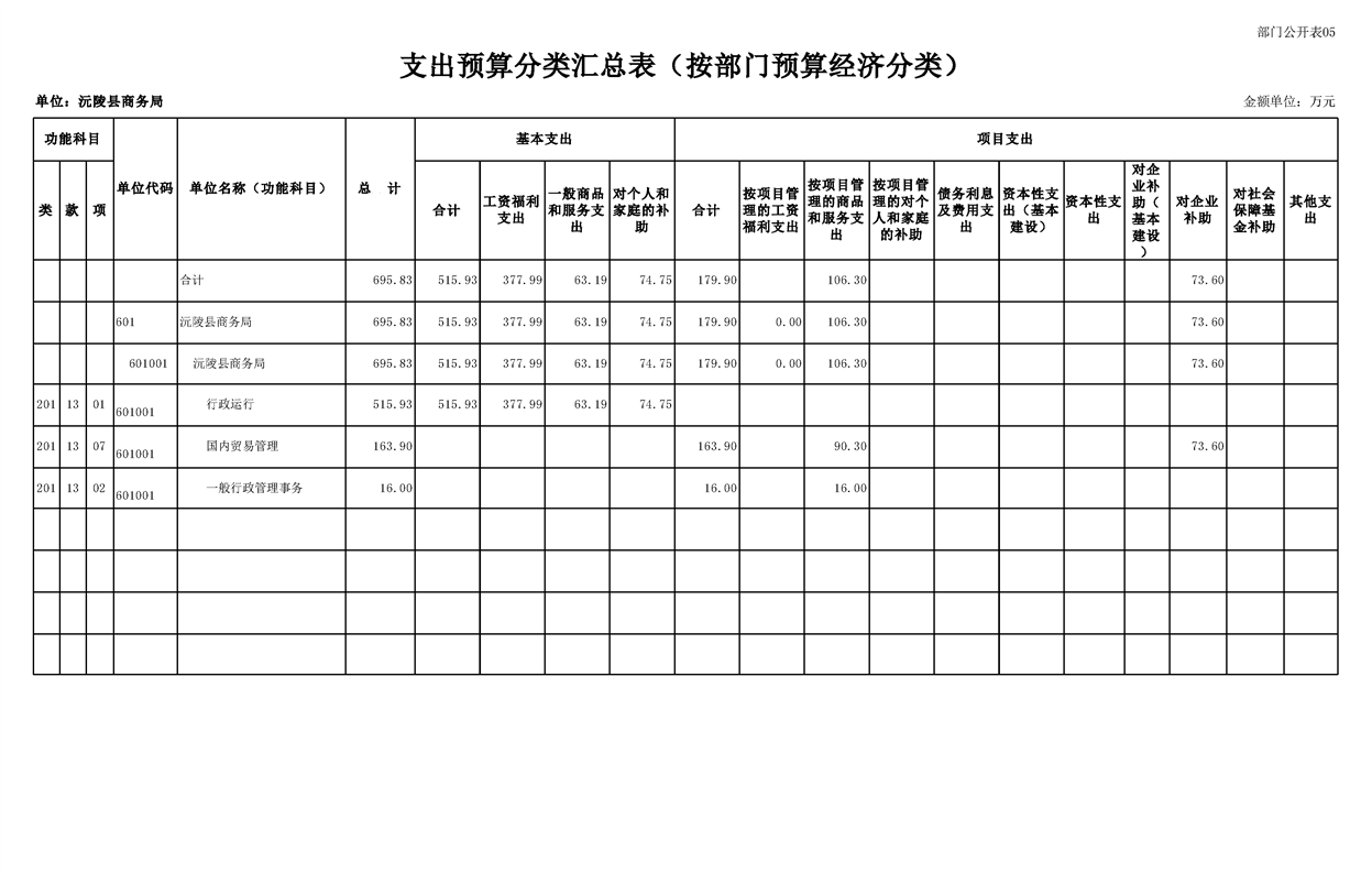 2023年沅陵县商务局预算公开