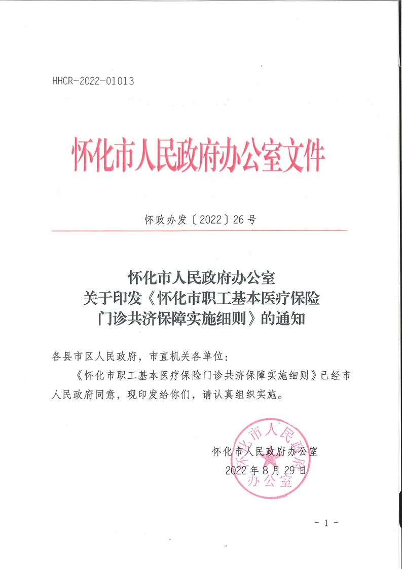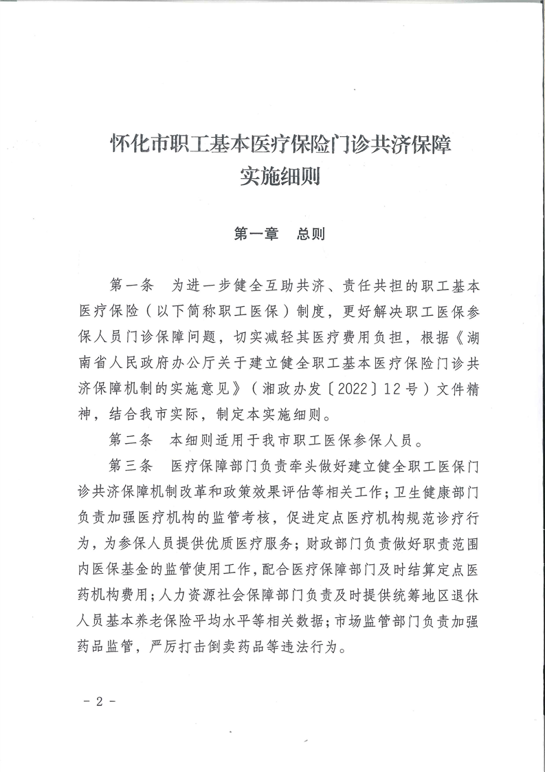 怀化市人民政府办公室关于印发《怀化市职工基本医疗保险门诊共济保障实施细则》的通知