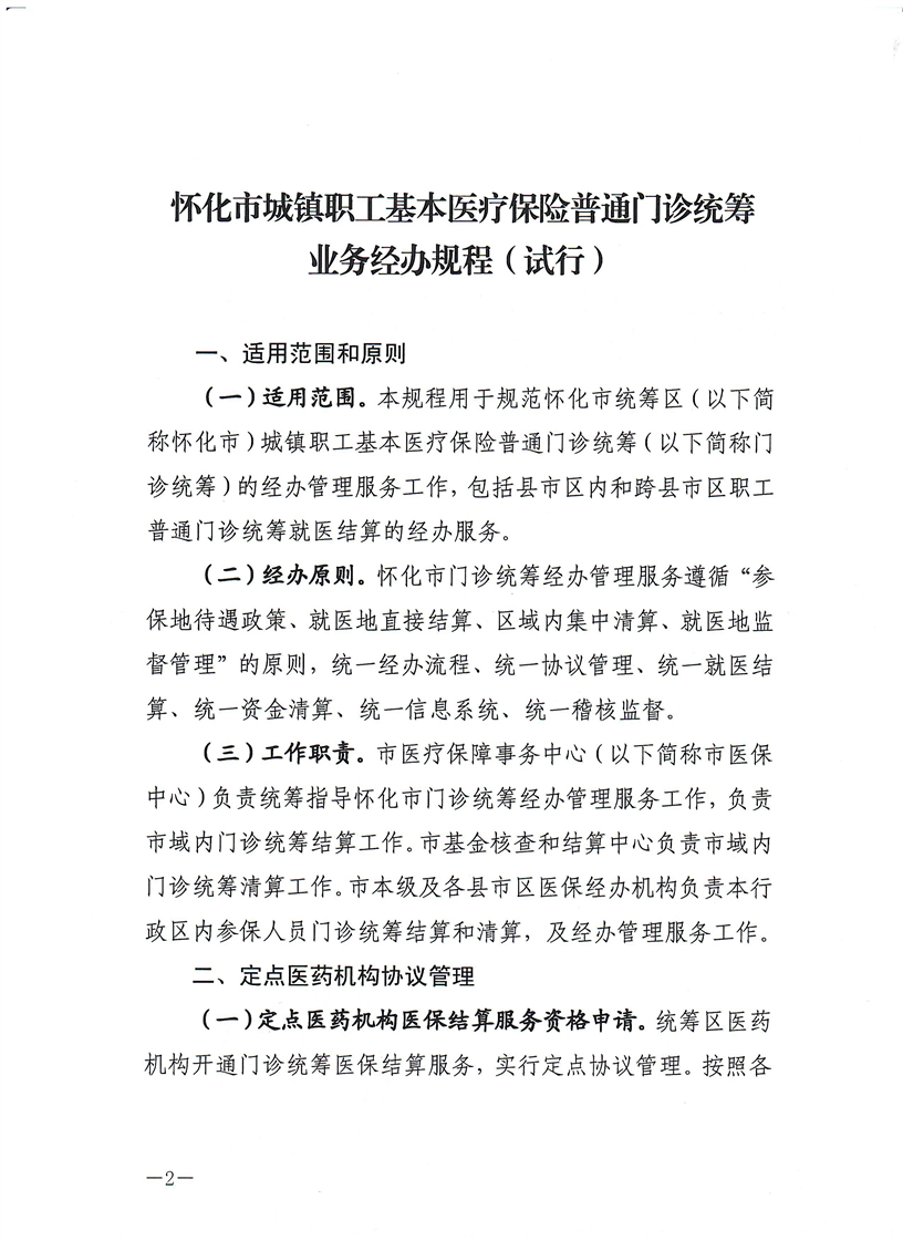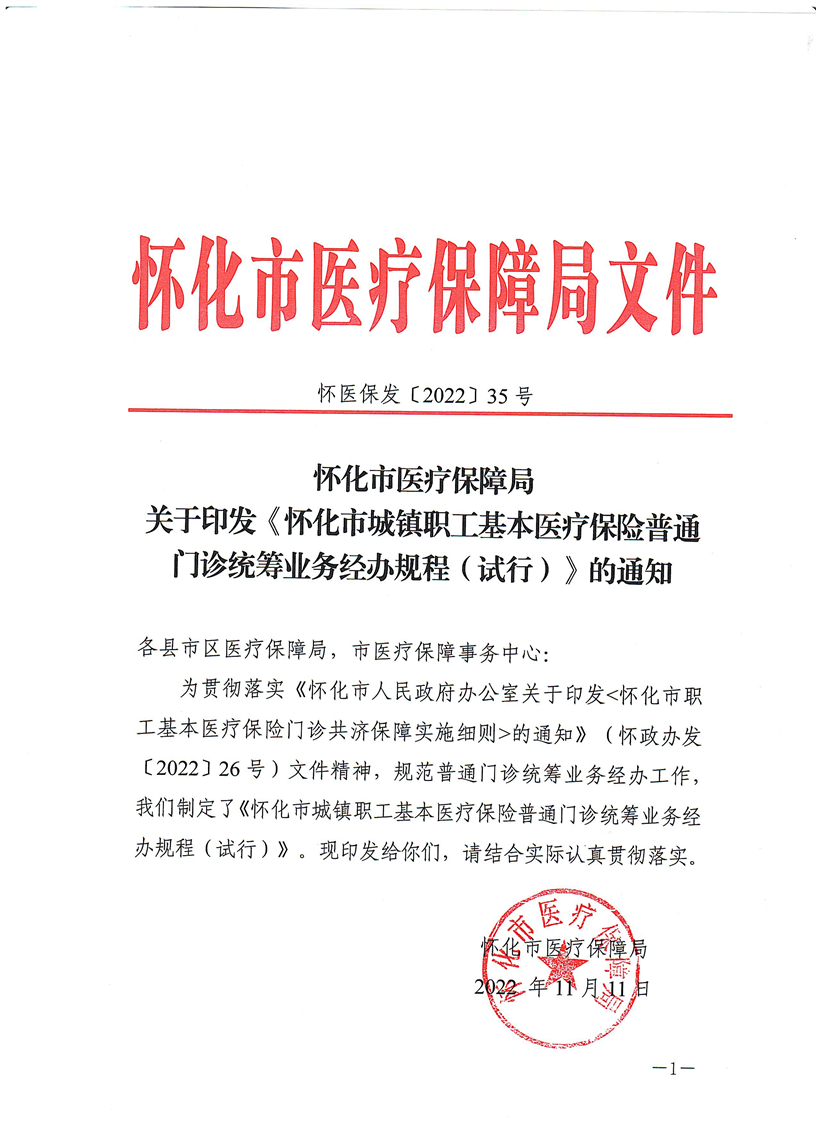 怀化市医疗保障局关于印发《怀化市城镇职工基本医疗保险普通门诊统筹业务经办规程(试行)》的通知