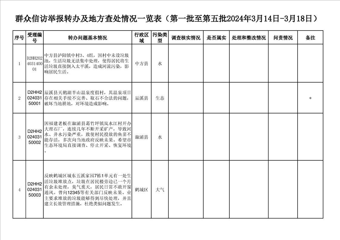 群众信访举报转办及地方查处情况一览表(第一批至第五批2024年3月14日-3月18日)