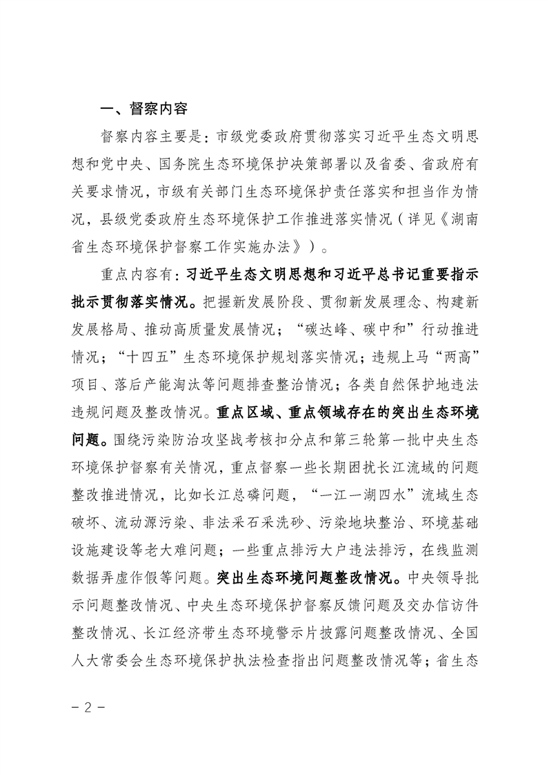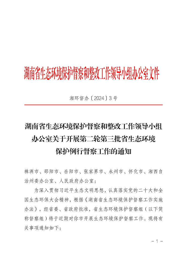 湖南省生态环境保护督察和整改工作领导小组办公室关于开展第二轮第三批省生态环境保护例行督察工作的通知